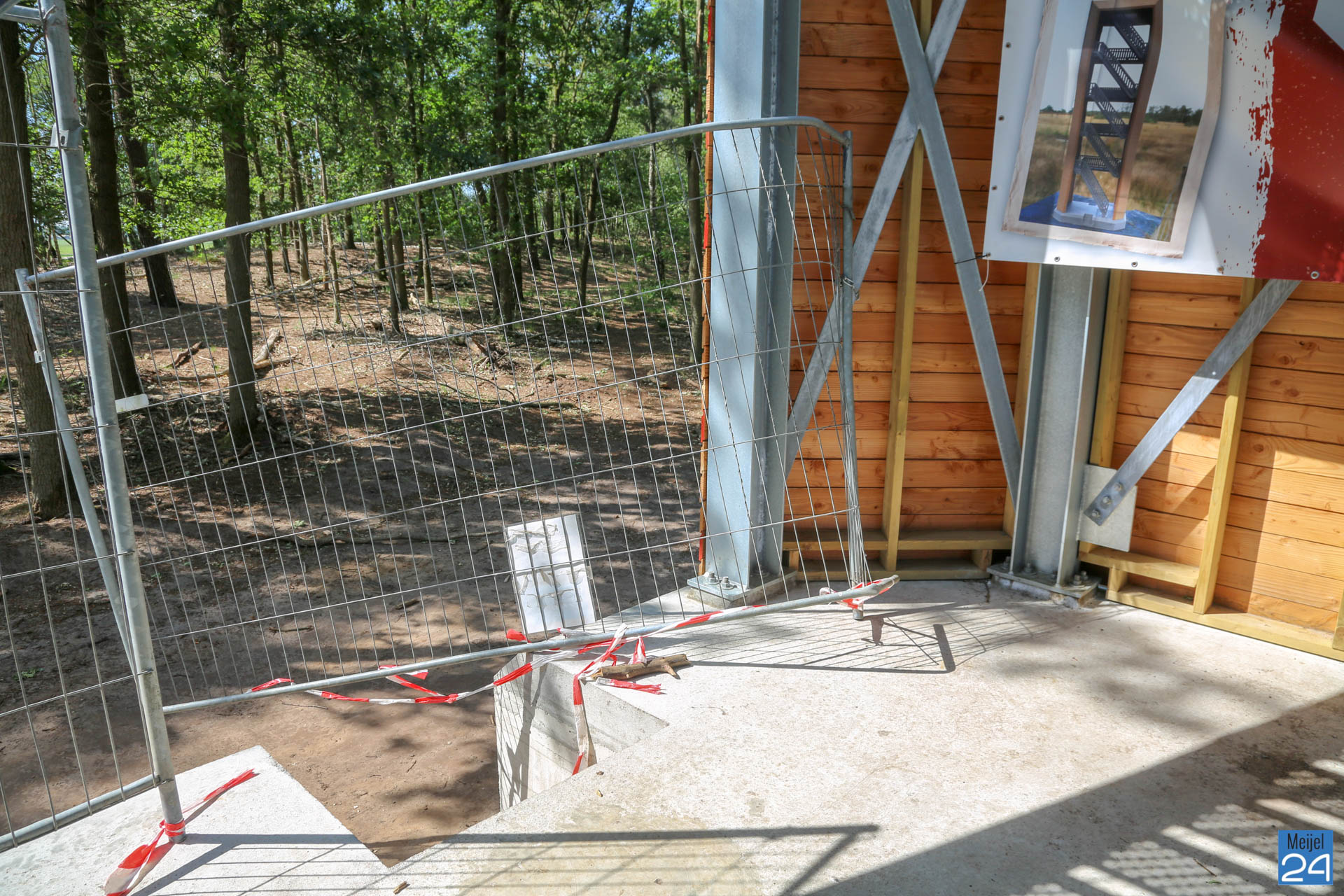 Opnieuw is een dranghek kromgebogen. De vandalen hebben op grote hoogte waarschijnlijk hard tegen het belfort geschopt waardoor het houten frame flink beschadigd is geraakt. En dat is niet alles. Bovenop de 21 meter hoge uitkijktoren werden voor de tweede keer enkele planken hardhandig van het belfort getrokken. Deze zijn naar beneden zijn gegooid. Waarom? Jo Manders kan hierop geen antwoord geven.