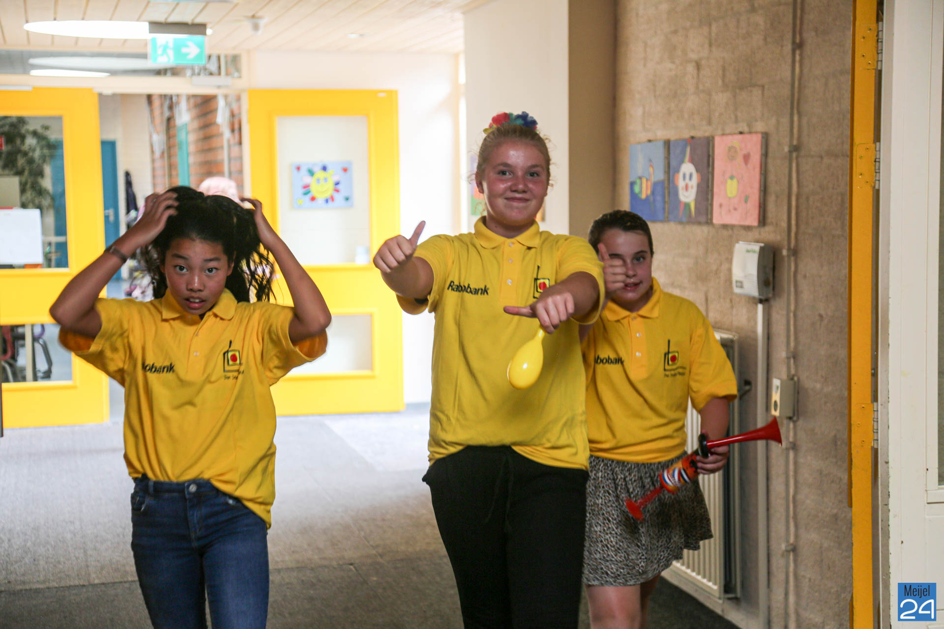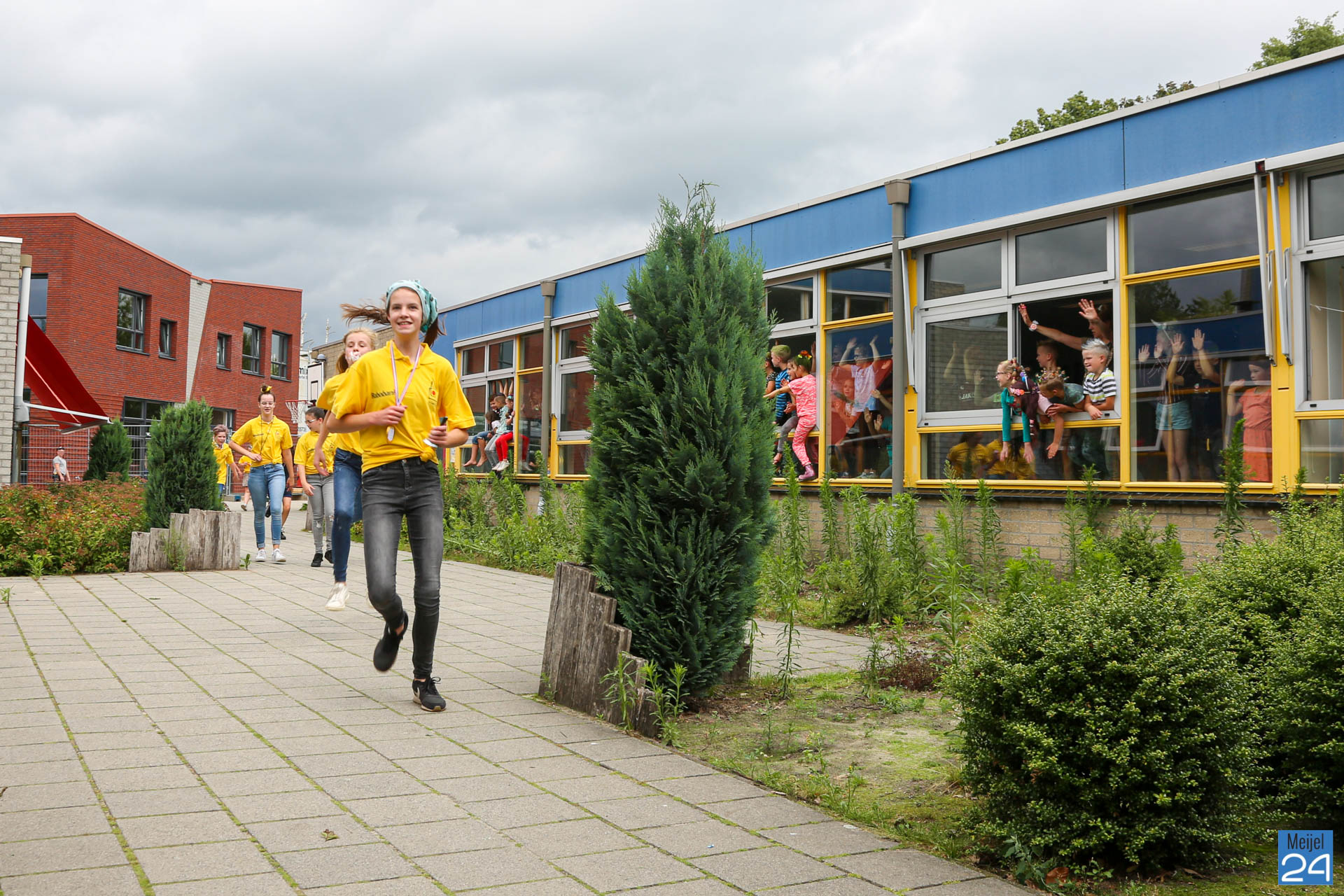 Om 13.00 uur gingen de schoolverlaters traditioneel rondjes rennen in én om het schoolgebouw met fluitjes, toeters en bellen. Onder luid applaus en gejoel van ouders en leerlingen werd het schooljaar afgesloten feestelijk afgesloten. Ook ‘gekke haardag’ was dit jaar weer een groot succes.