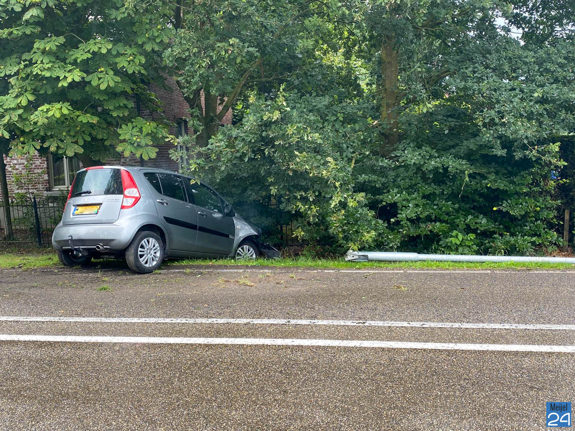 De auto reed vanuit Meijel richting Beringe. Door nog onbekende oorzaak moest de auto plotseling remmen. De bestuurder verloor, waarschijnlijk door het natte wegdek, de macht over het stuur en botste tegen een lantaarnpaal. Vervolgens belandde hij in de berm van de weg. De bestuurder raakte niet gewond.