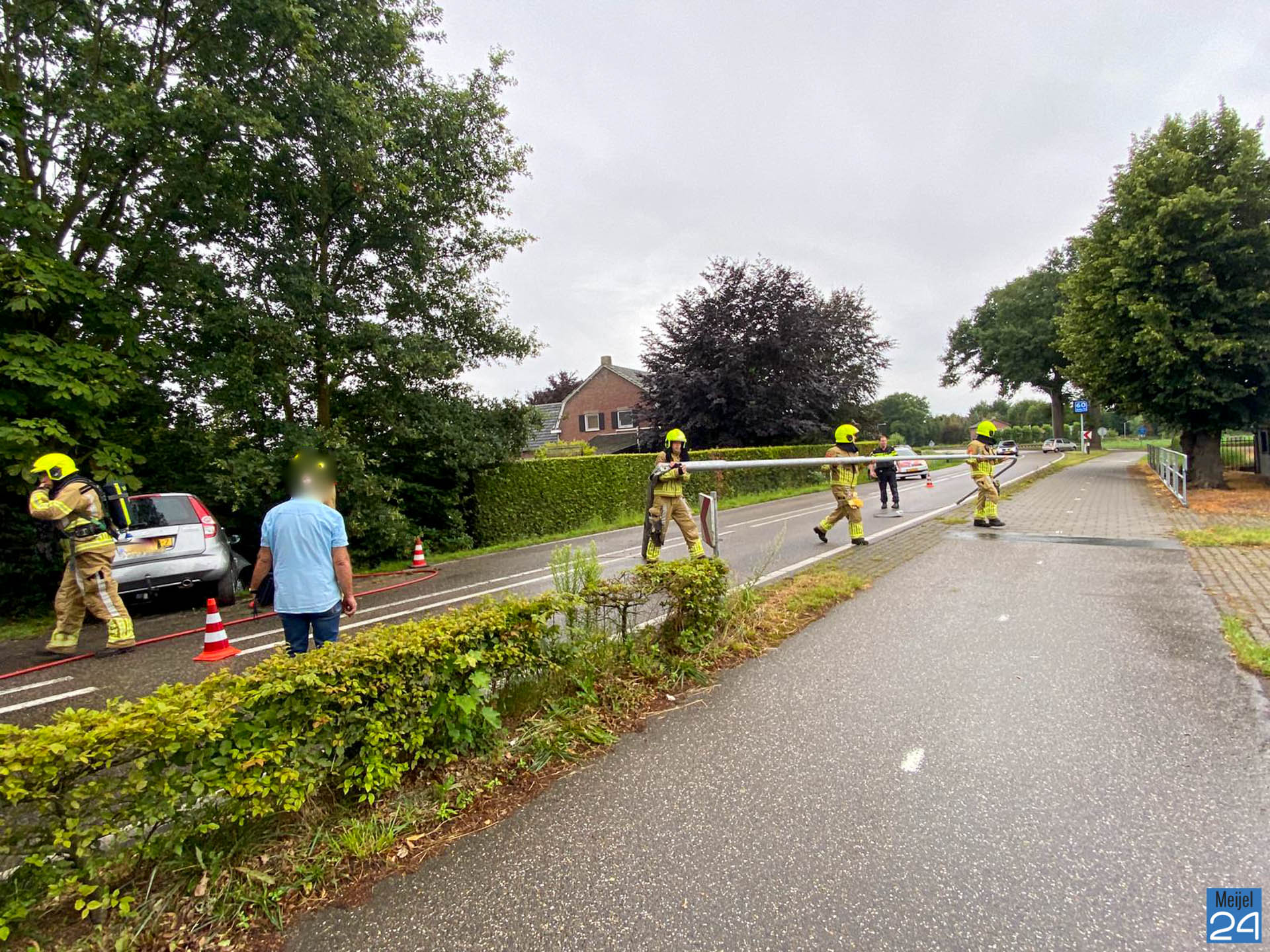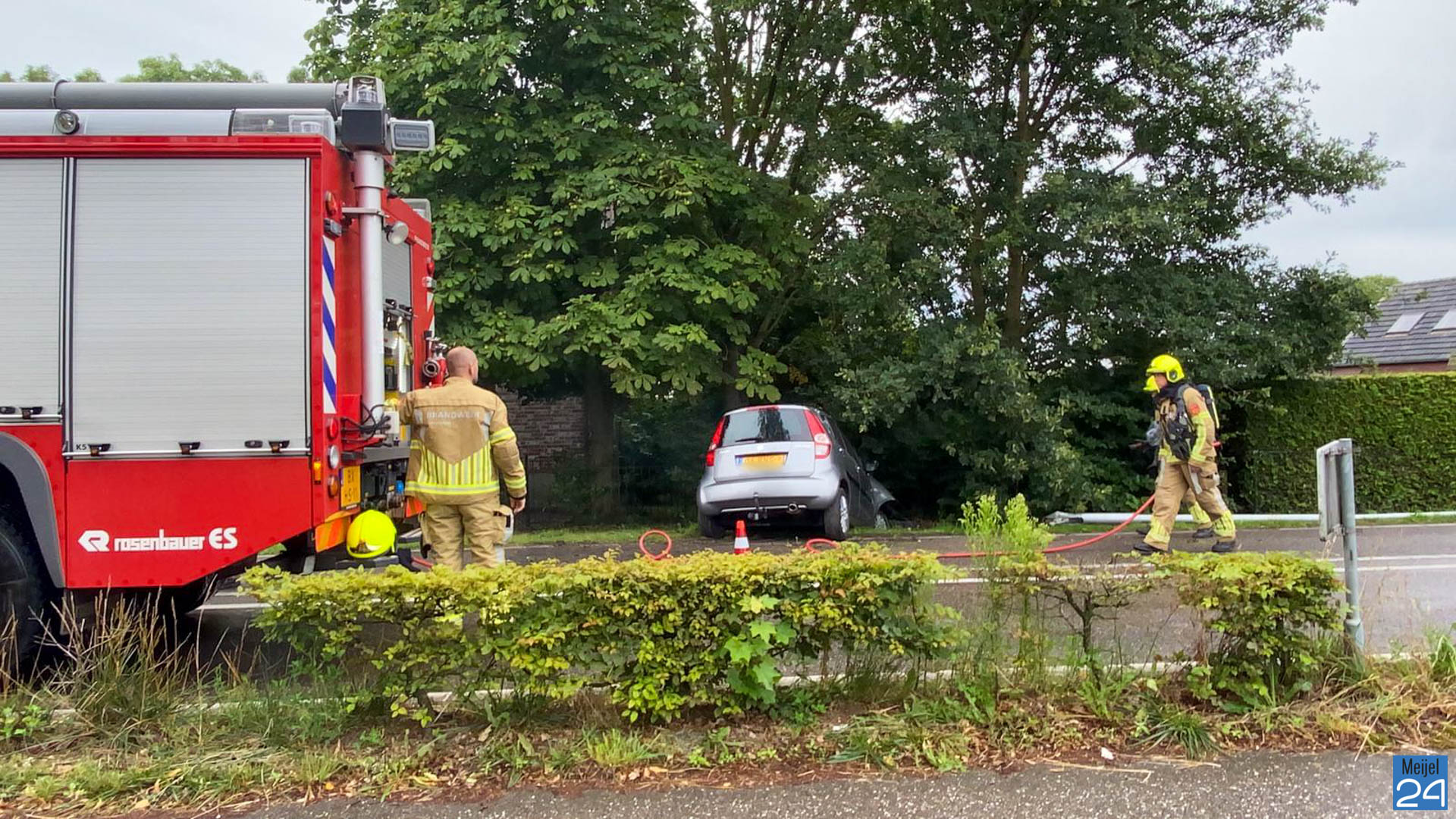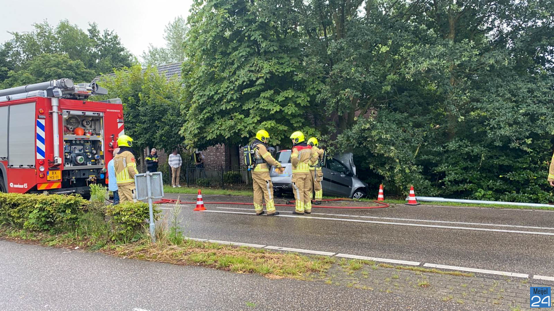 De brandweer werd opgeroepen omdat er in eerste instantie rook zichtbaar was. Dit is waarschijnlijk van de airbag geweest. De brandweervrijwilligers hebben enkele takken gesnoeid en de lantaarnpaal verwijderd.
