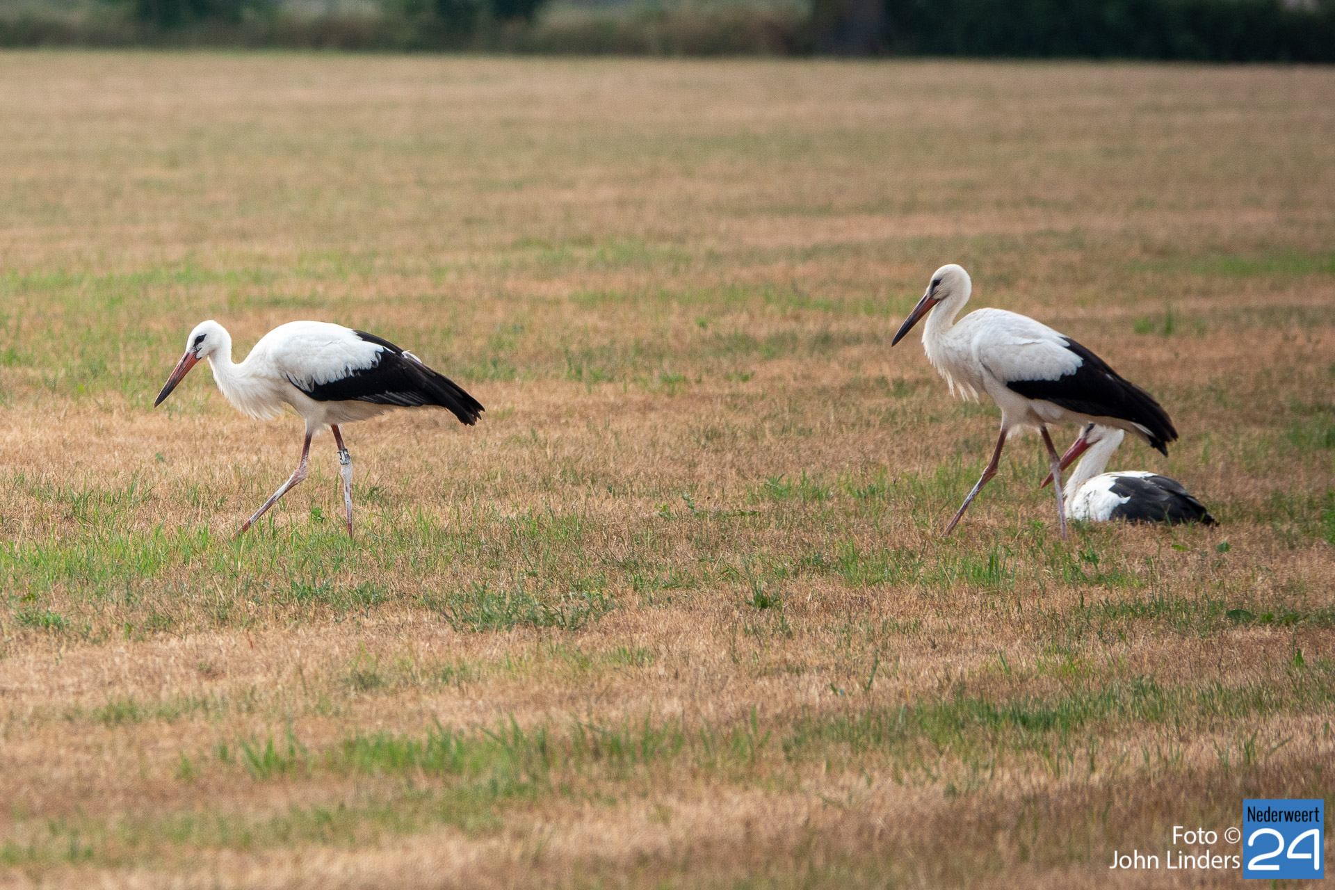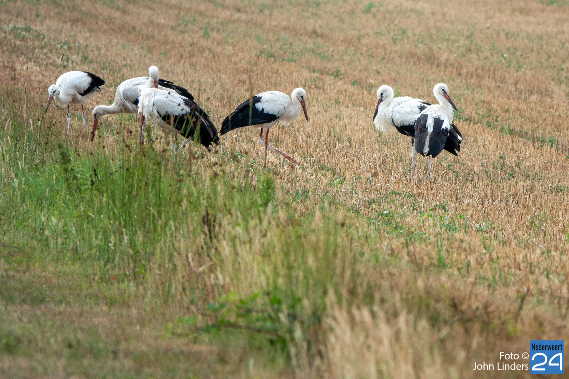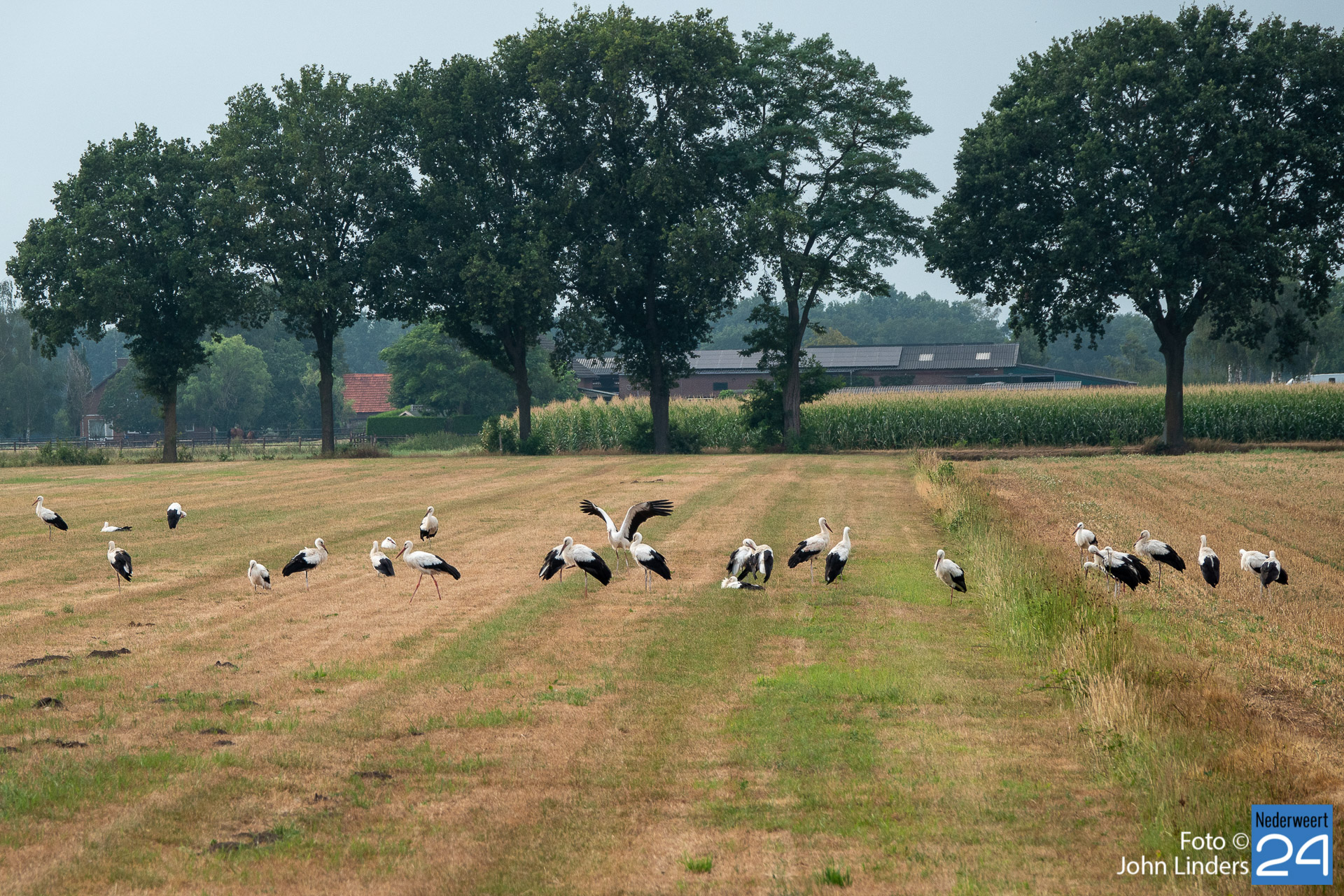 In een weiland aan de Kruisvennendijk in Ospeldijk zijn zaterdagavond ongeveer dertig ooievaars neergestreken. Een bijzonder gezicht wat zorgde voor het nodige bekijks.