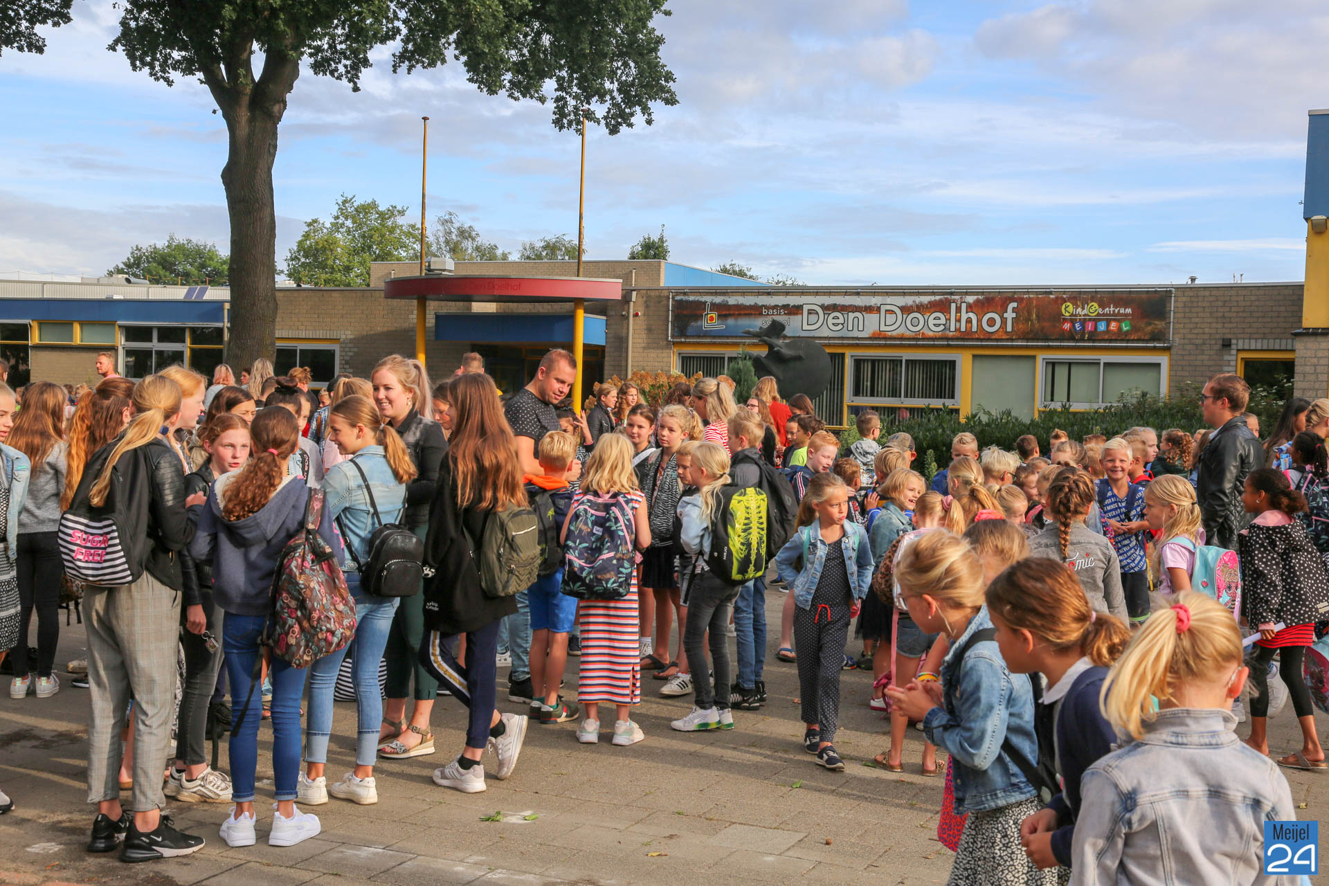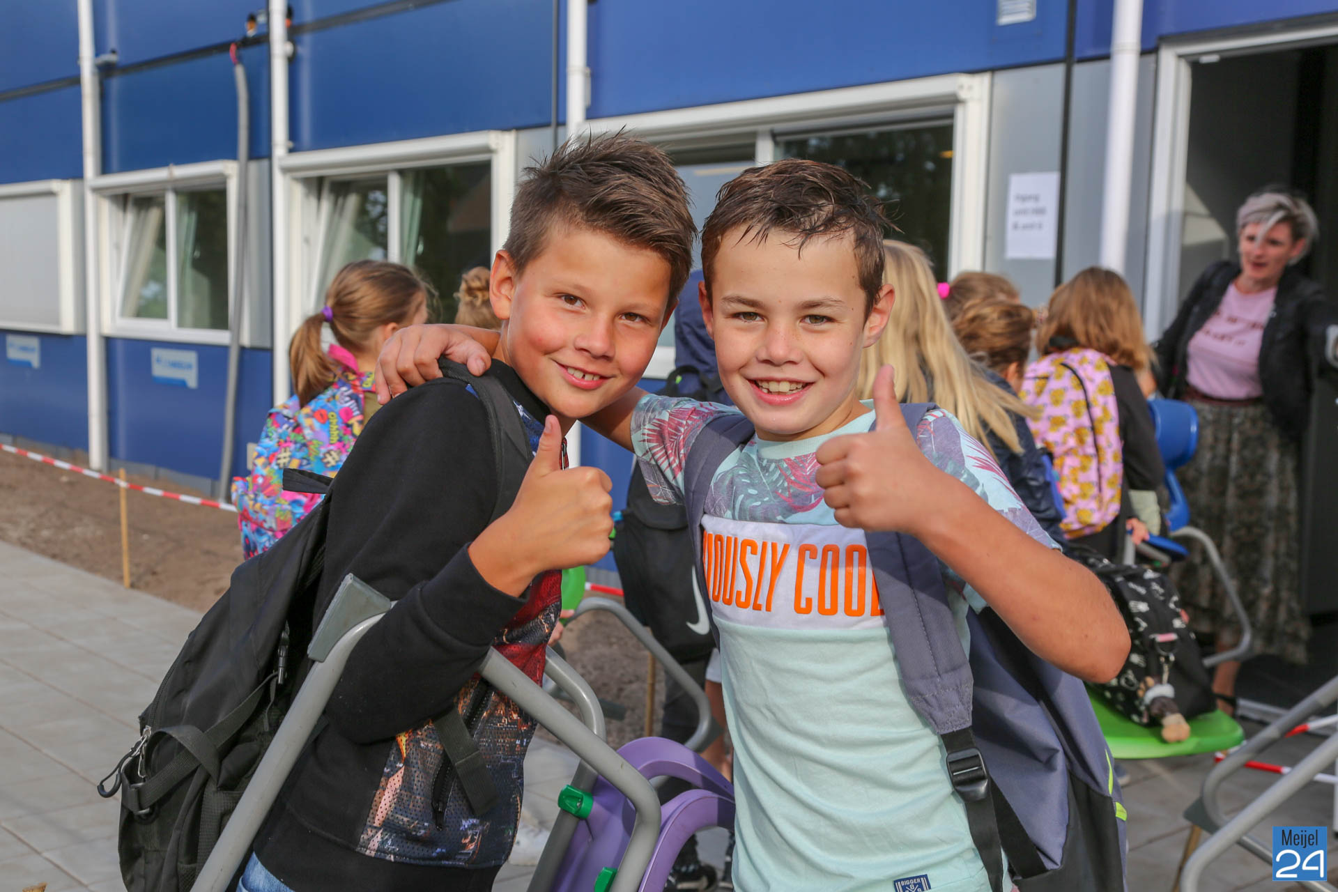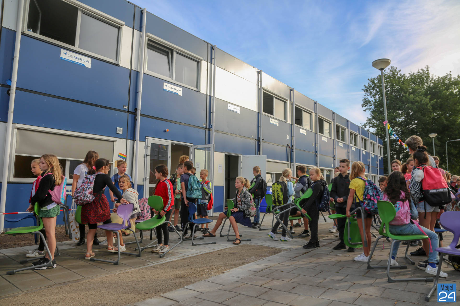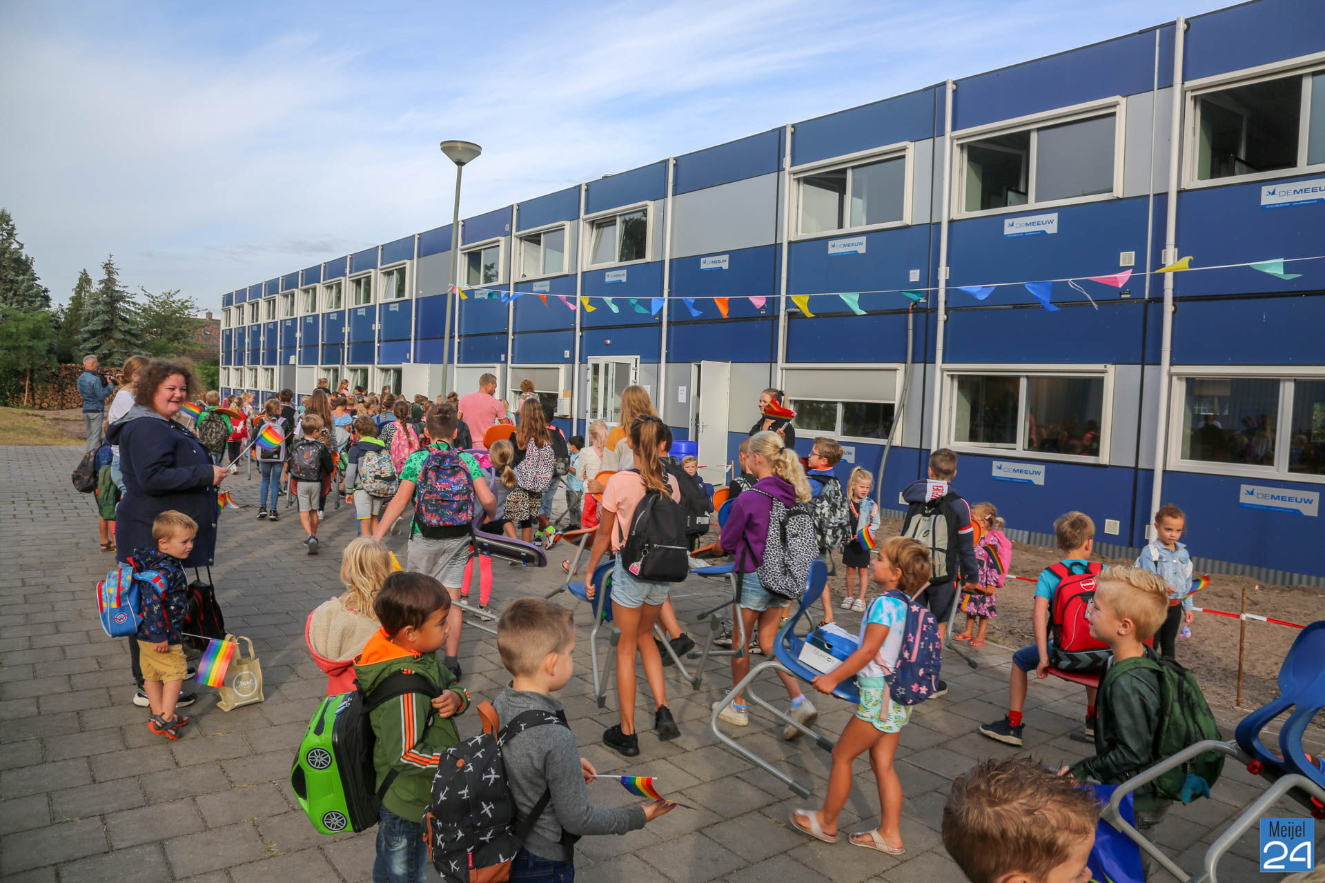 Leerlingen van BS Den Doelhof in Meijel zijn maandagmorgen op hun eerste schooldag verhuisd naar het tijdelijk schoolgebouw.
