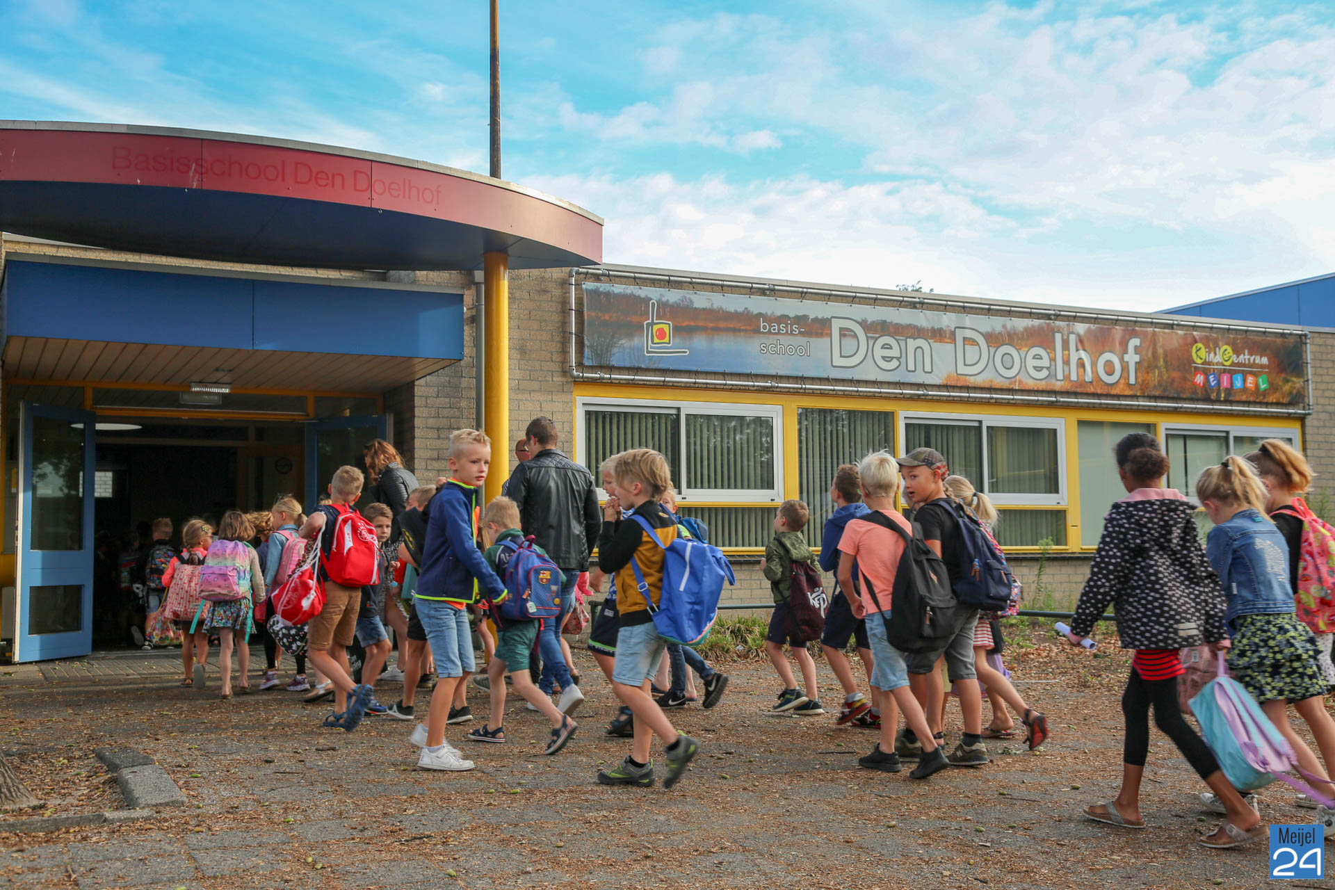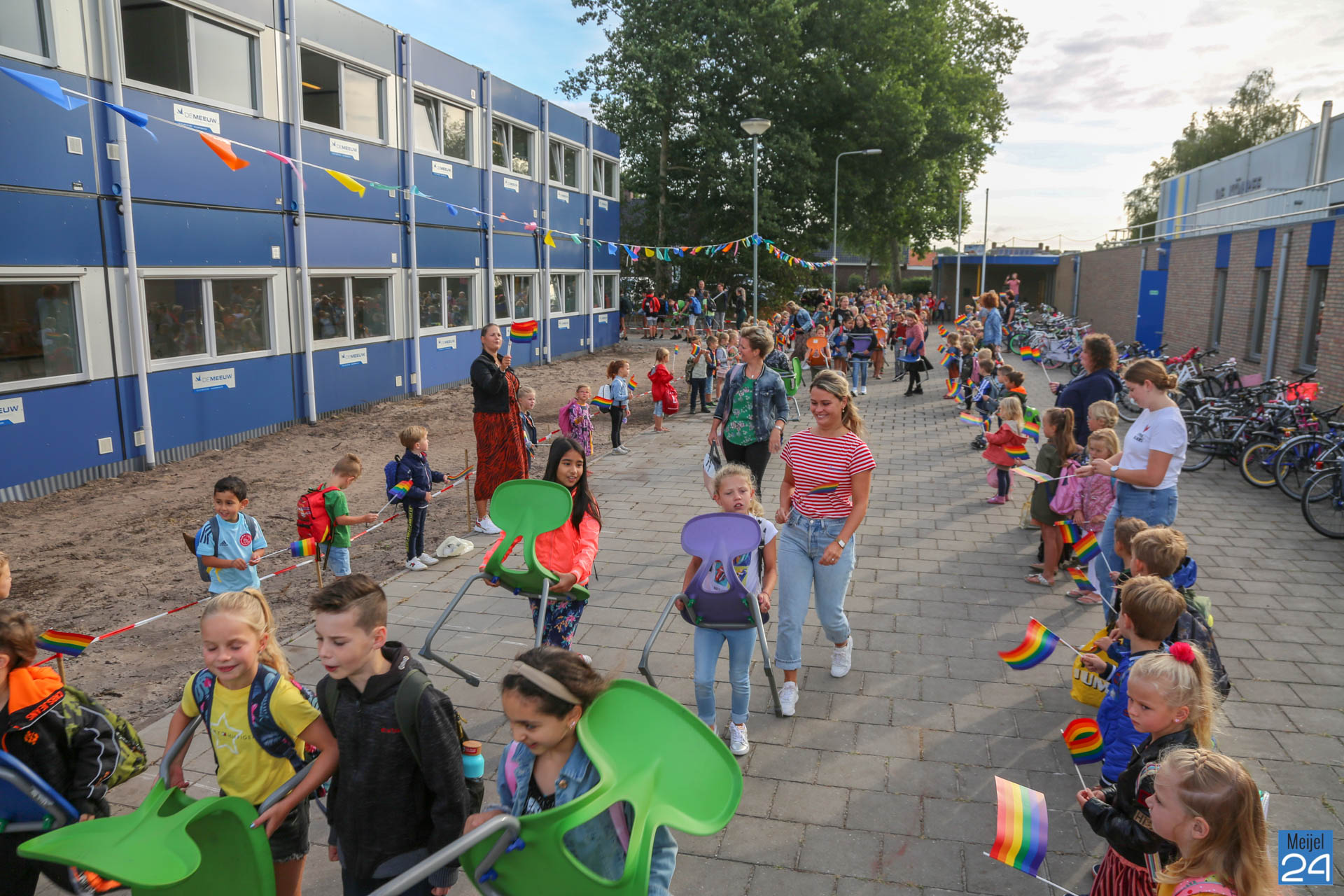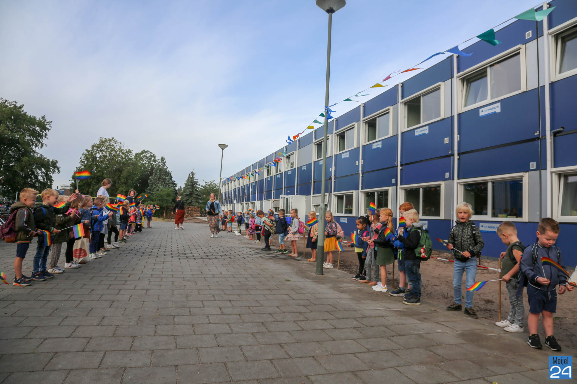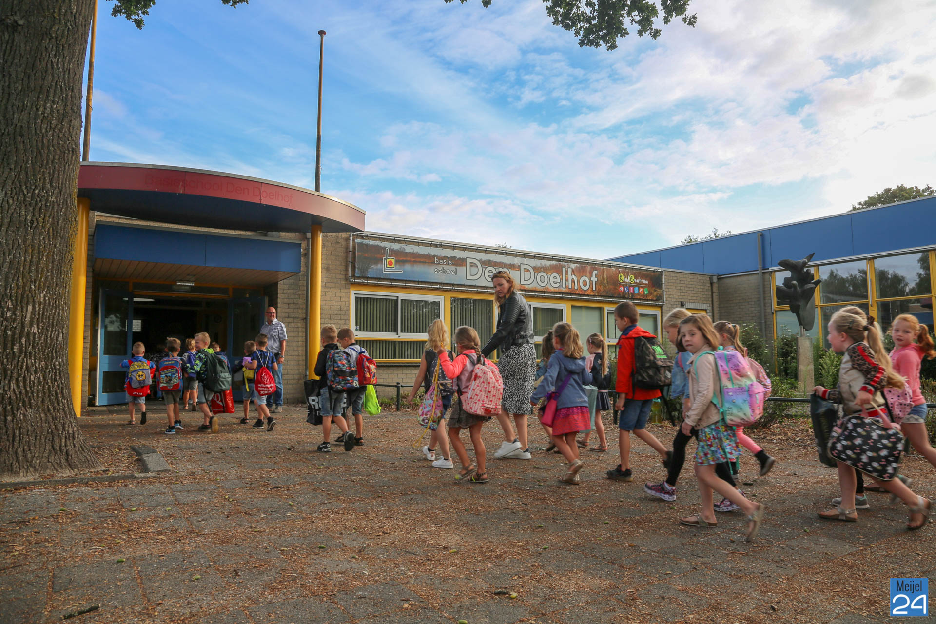 Leerlingen van BS Den Doelhof in Meijel zijn maandagmorgen op hun eerste schooldag verhuisd naar het tijdelijk schoolgebouw.