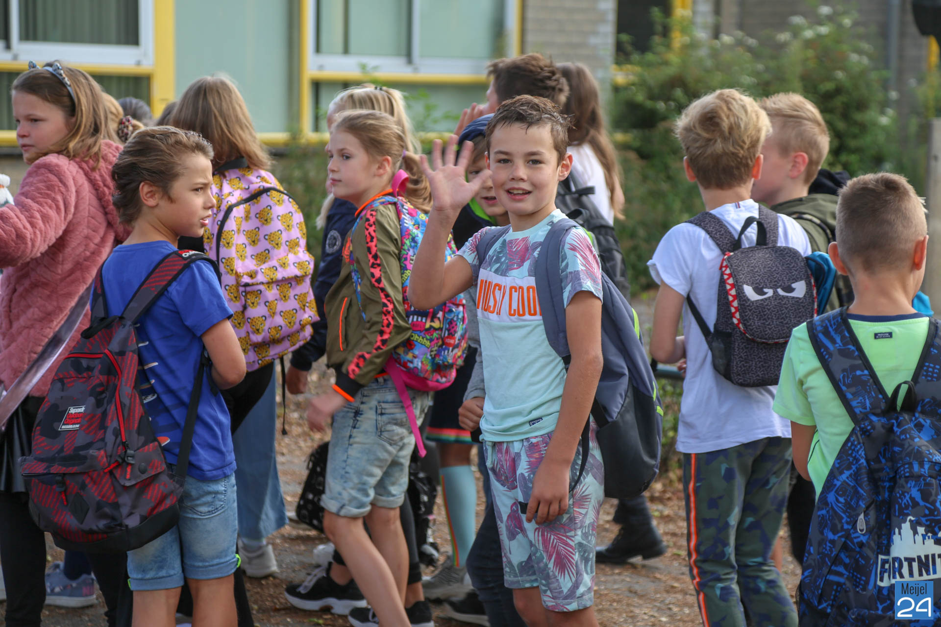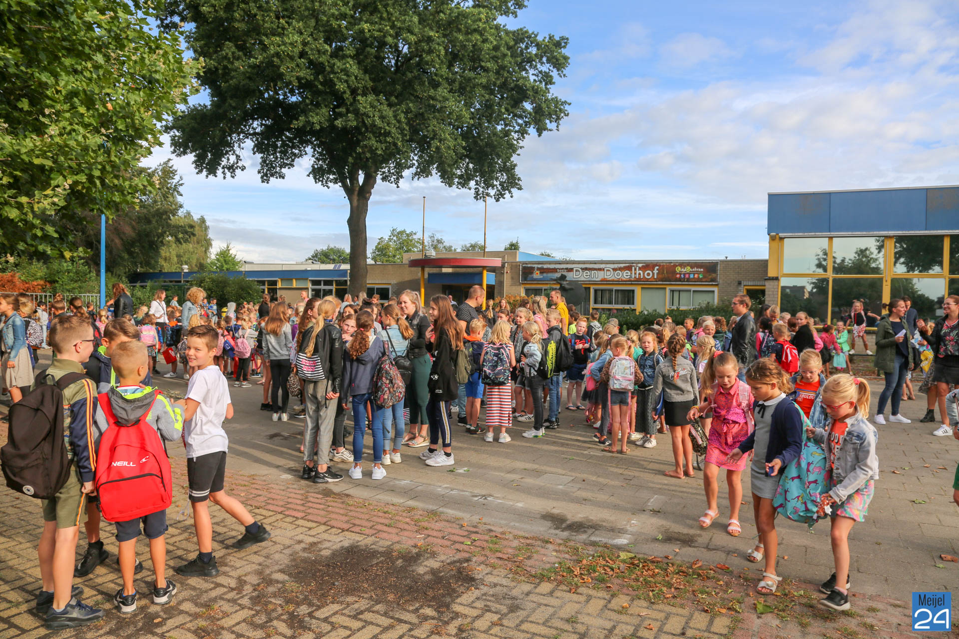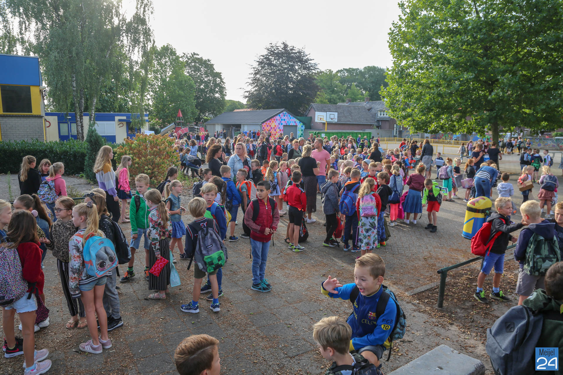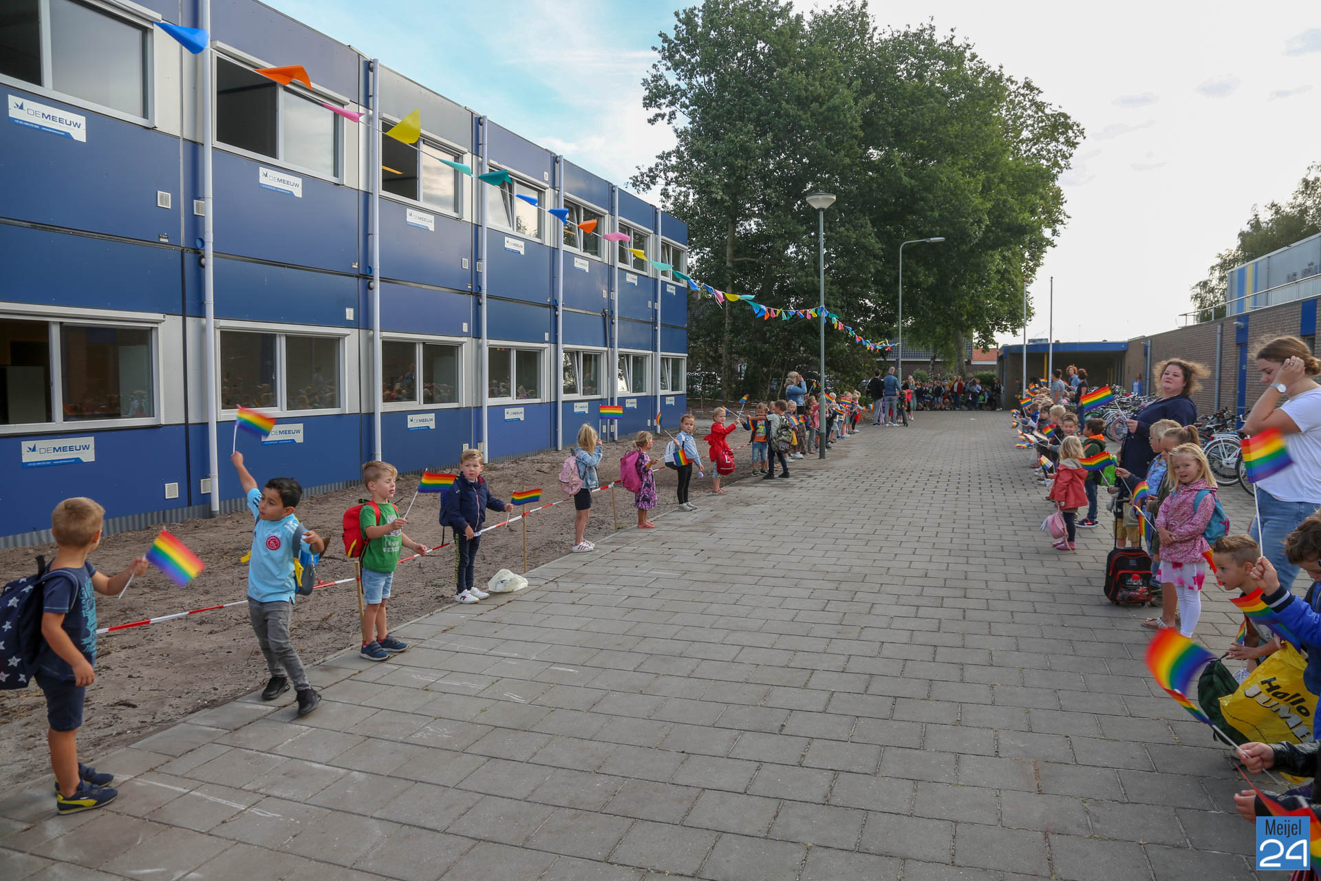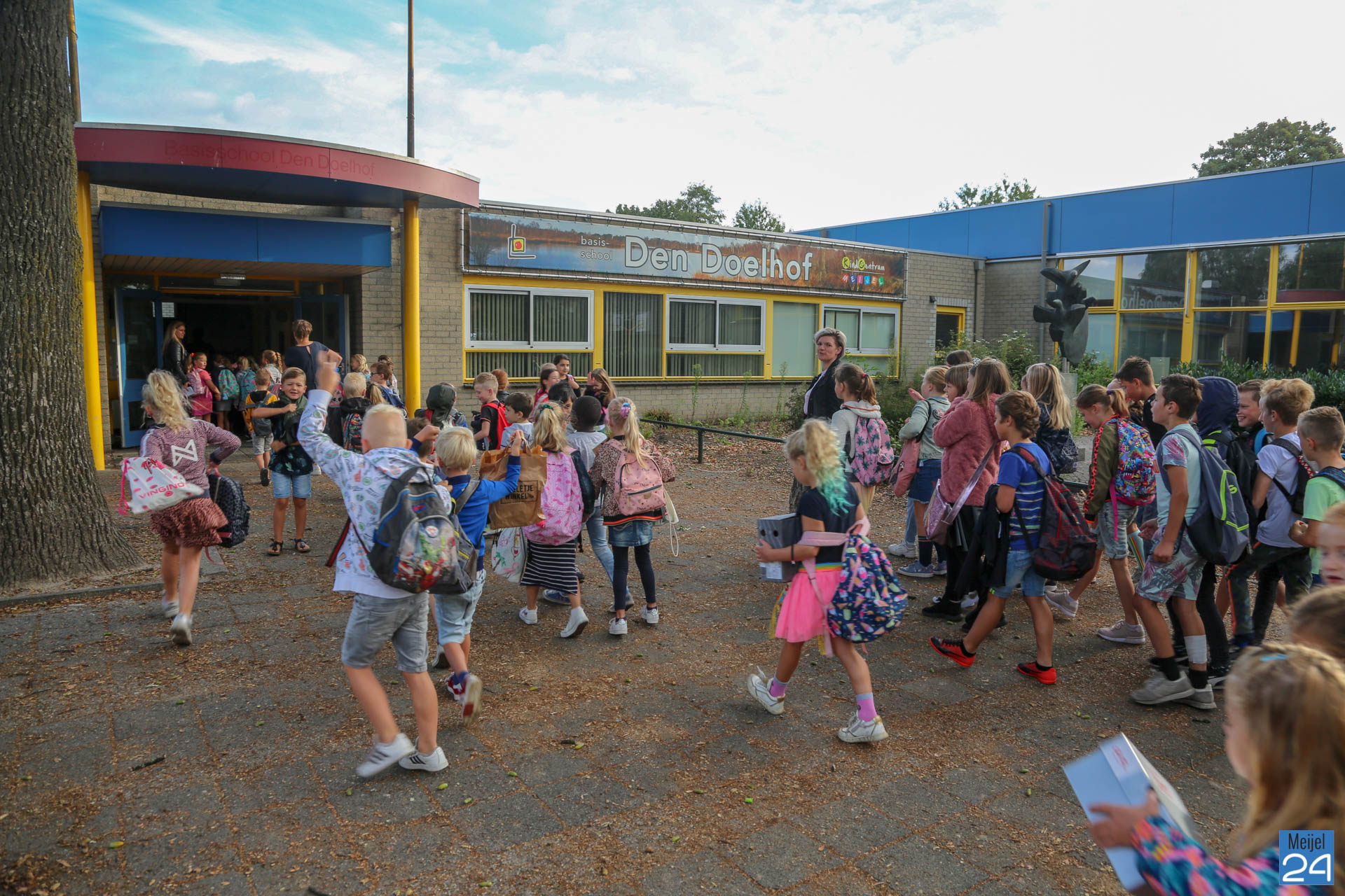 Leerlingen van BS Den Doelhof in Meijel zijn maandagmorgen op hun eerste schooldag verhuisd naar het tijdelijk schoolgebouw.