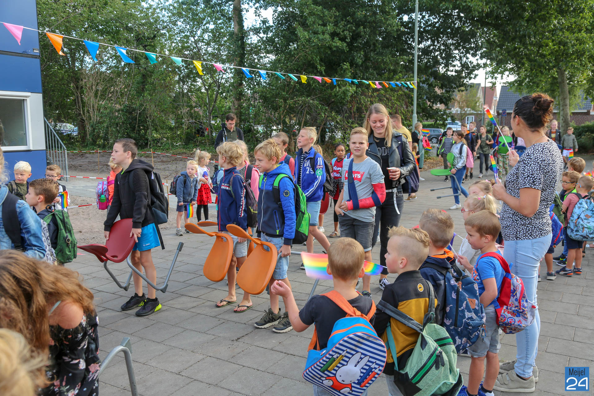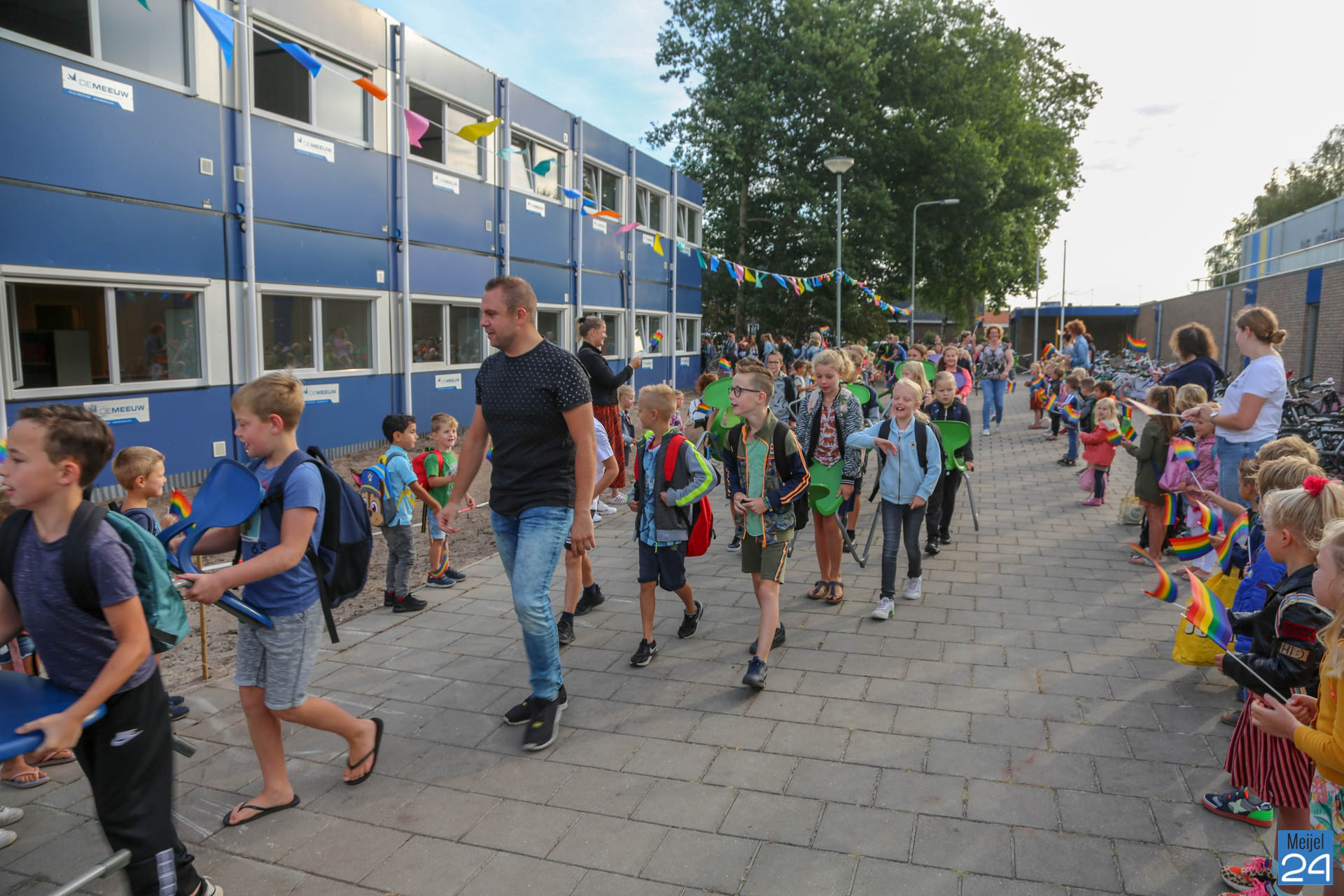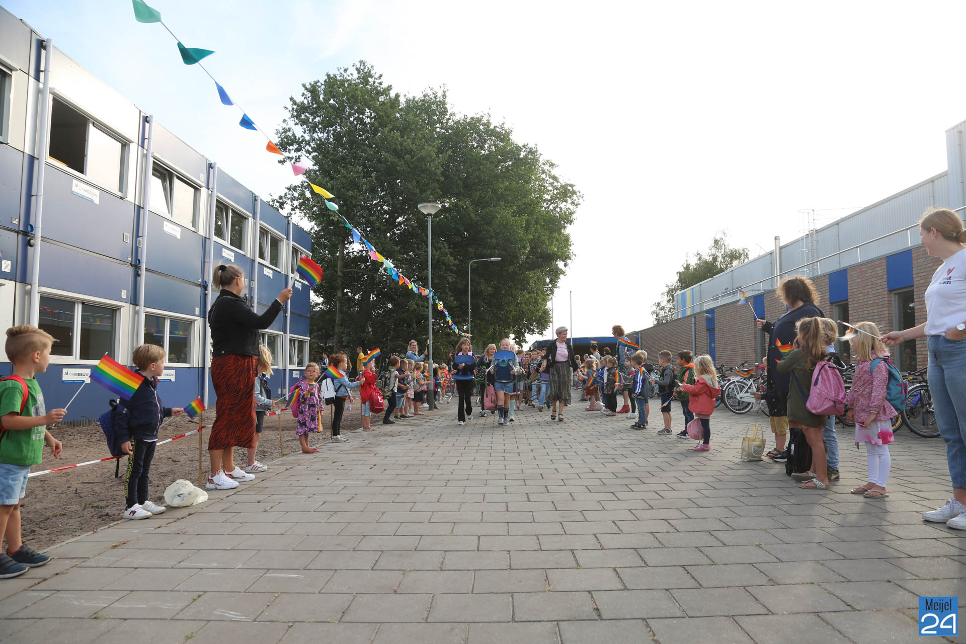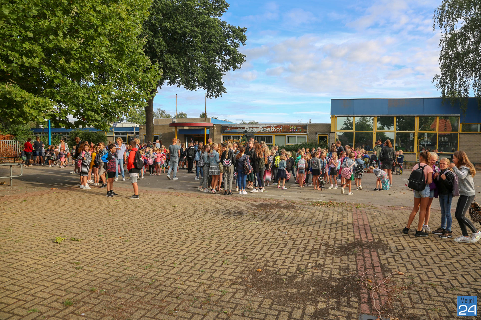 Leerlingen van BS Den Doelhof in Meijel zijn maandagmorgen op hun eerste schooldag verhuisd naar het tijdelijk schoolgebouw.