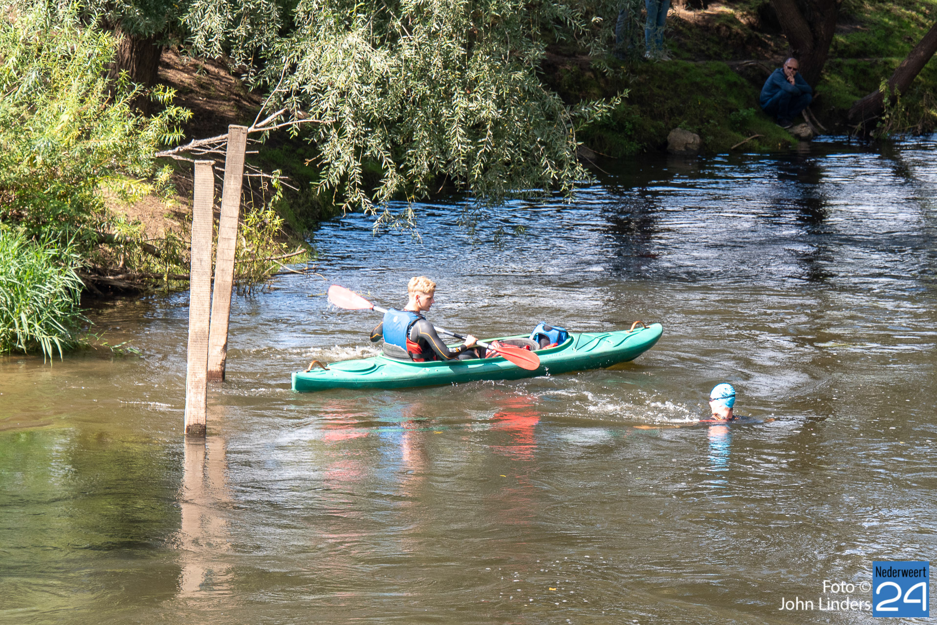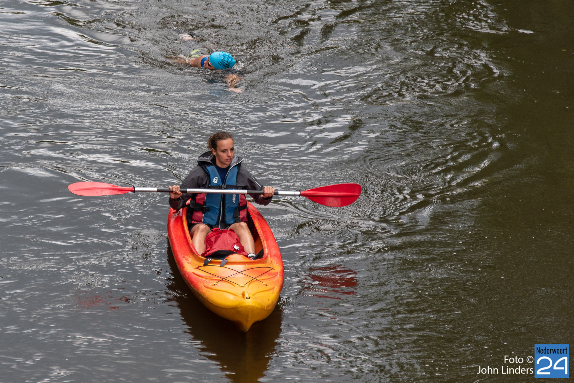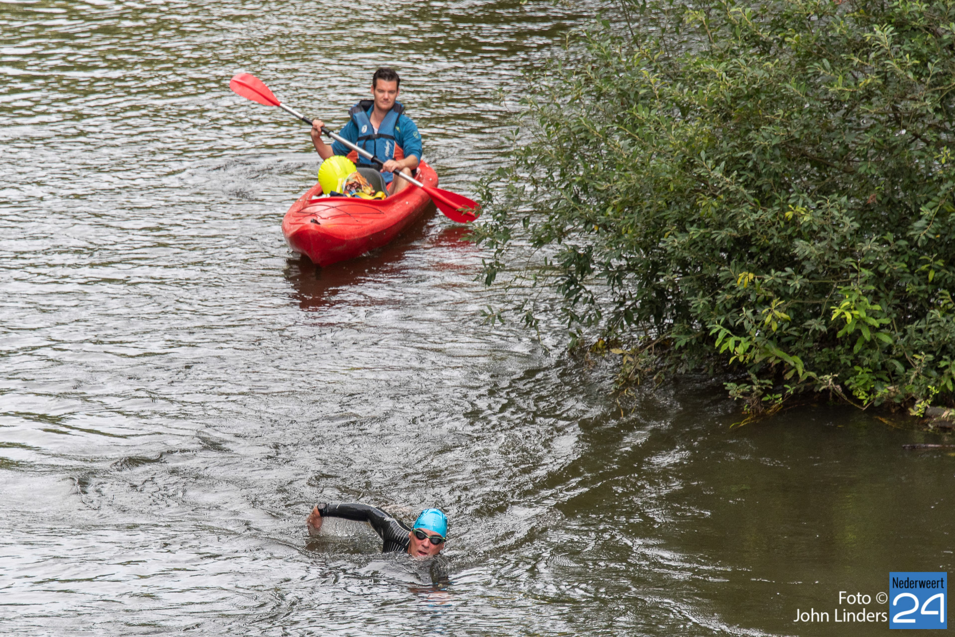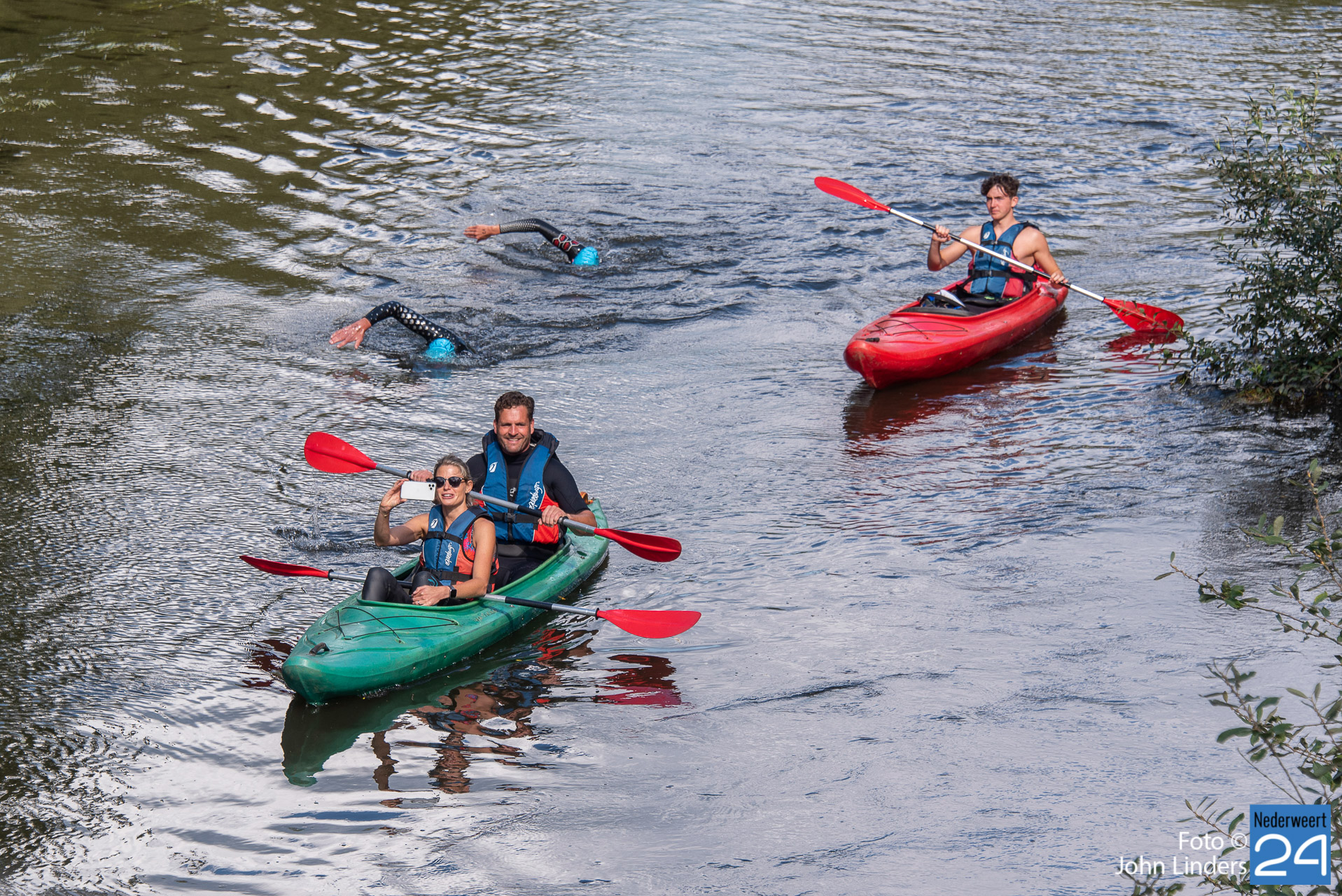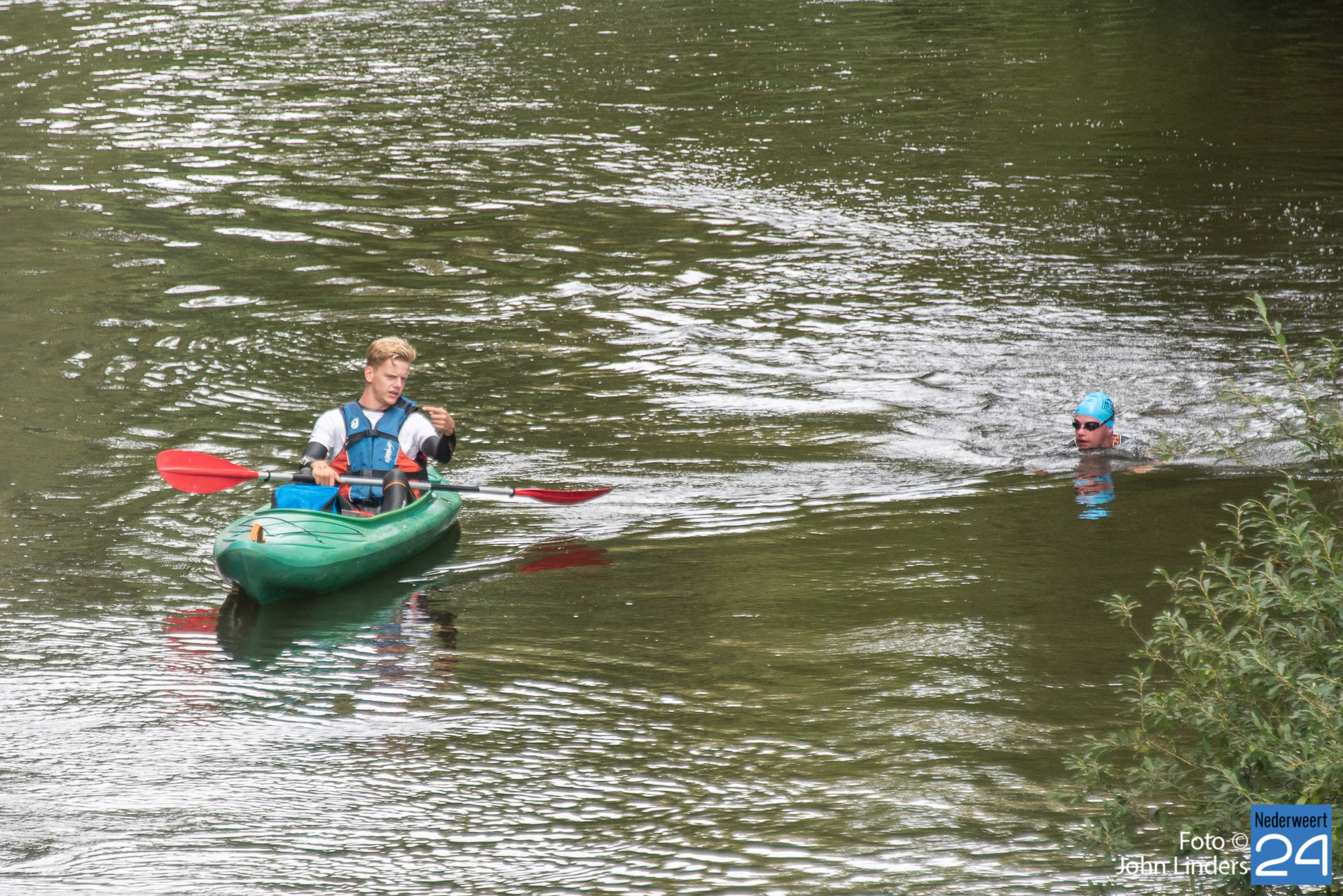 Er kon gezwommen worden op 3 afstanden. De 750mtr, 2000mtr en de 20Km. Van deze laatste was de start in Vlodrop. Maar liefst 16 team gingen de 20km lange tocht over de Roer maken. Alle teams gingen op inschrijfnummer van start. Als laatste ging het team Maarten en Daisy van der Weijden te water. Per zwemmer ging er een kano mee als begeleiding. Onderweg mochten de zwemmers wisselen met de mensen in de kano.