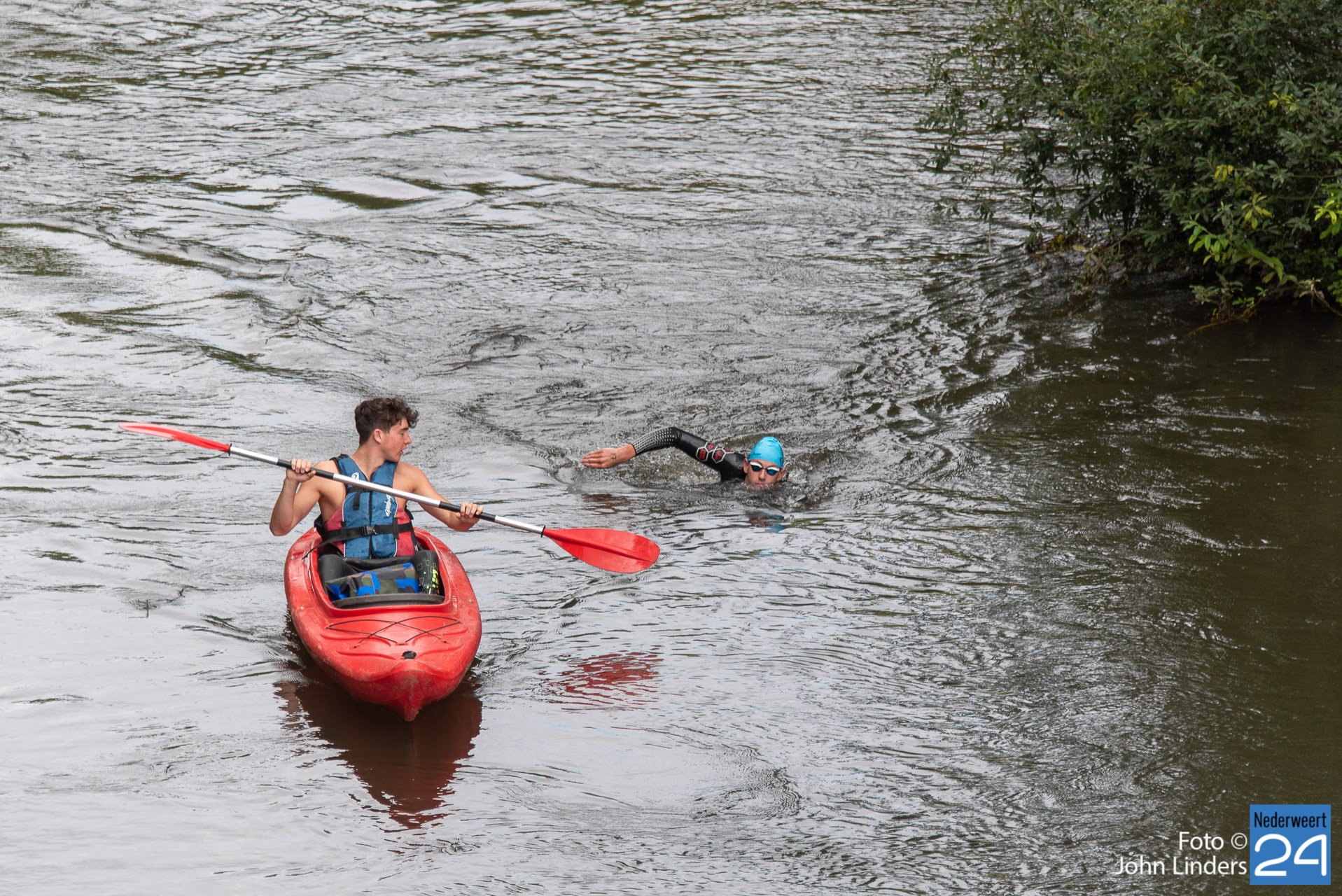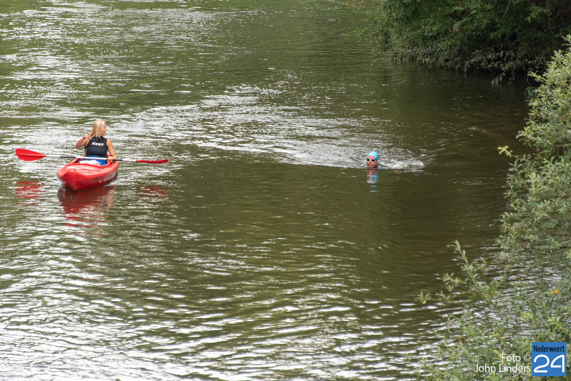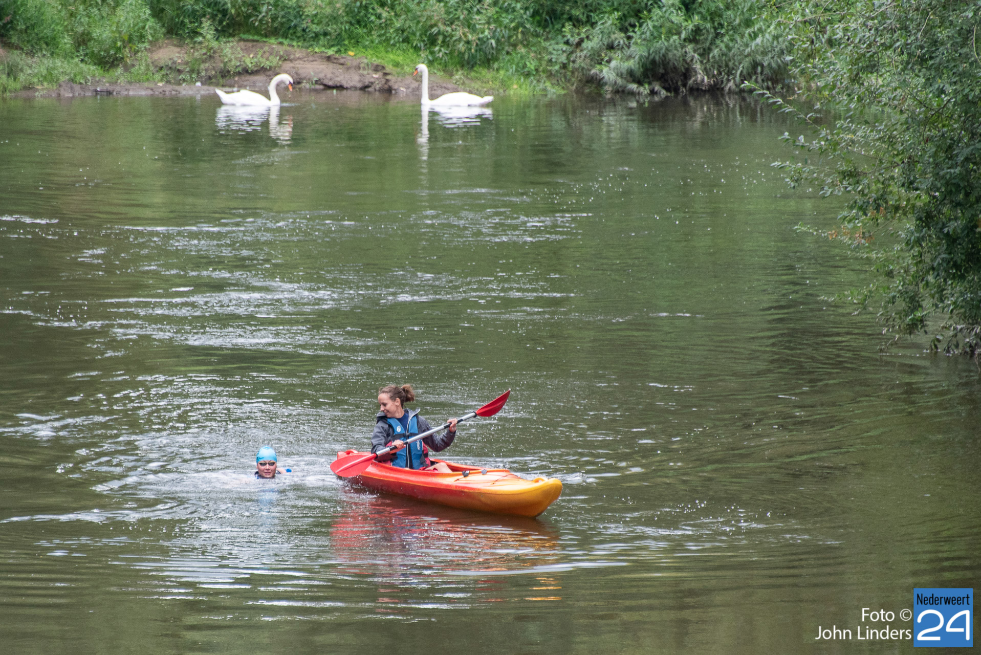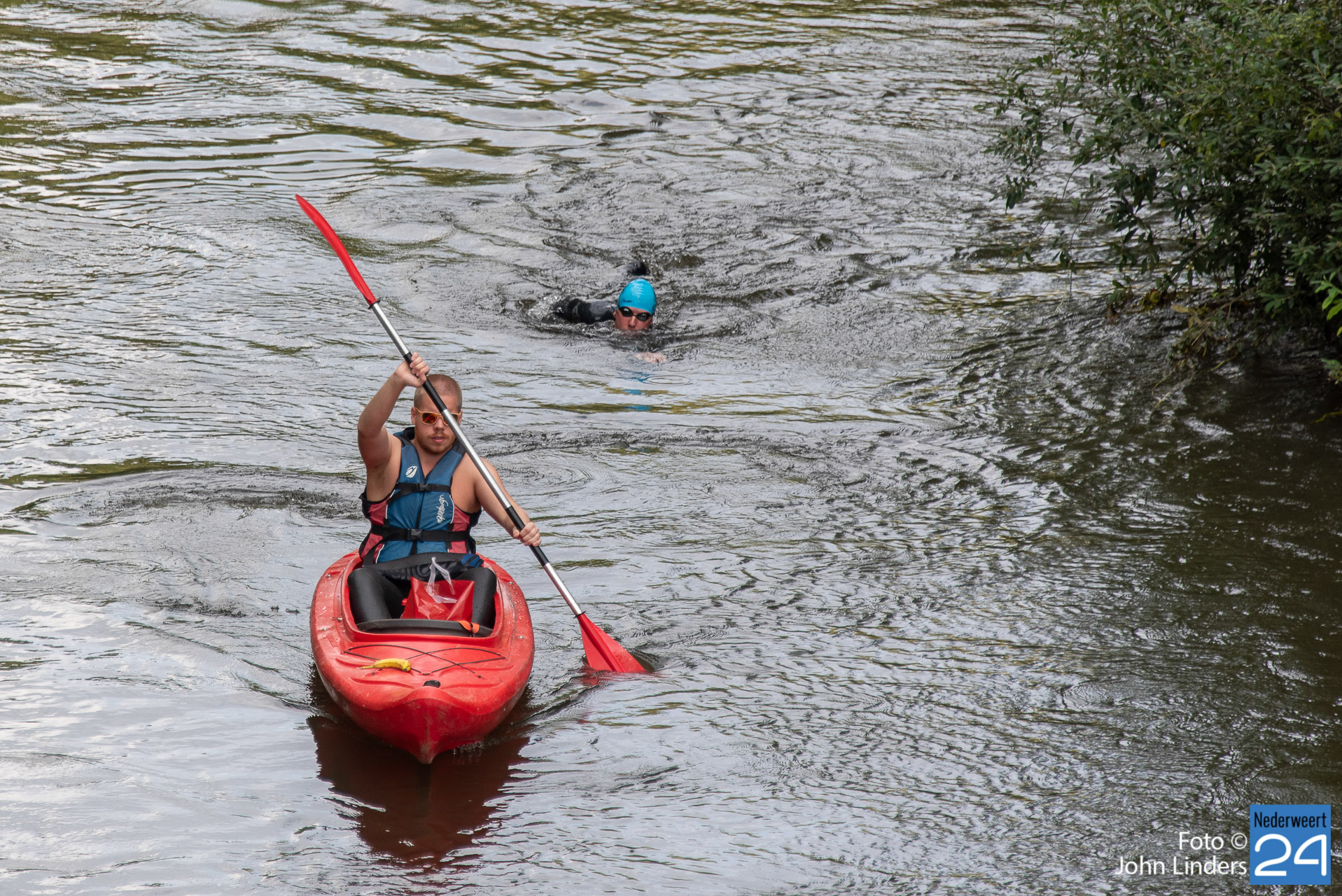 Er kon gezwommen worden op 3 afstanden. De 750mtr, 2000mtr en de 20Km. Van deze laatste was de start in Vlodrop. Maar liefst 16 team gingen de 20km lange tocht over de Roer maken. Alle teams gingen op inschrijfnummer van start. Als laatste ging het team Maarten en Daisy van der Weijden te water. Per zwemmer ging er een kano mee als begeleiding. Onderweg mochten de zwemmers wisselen met de mensen in de kano.