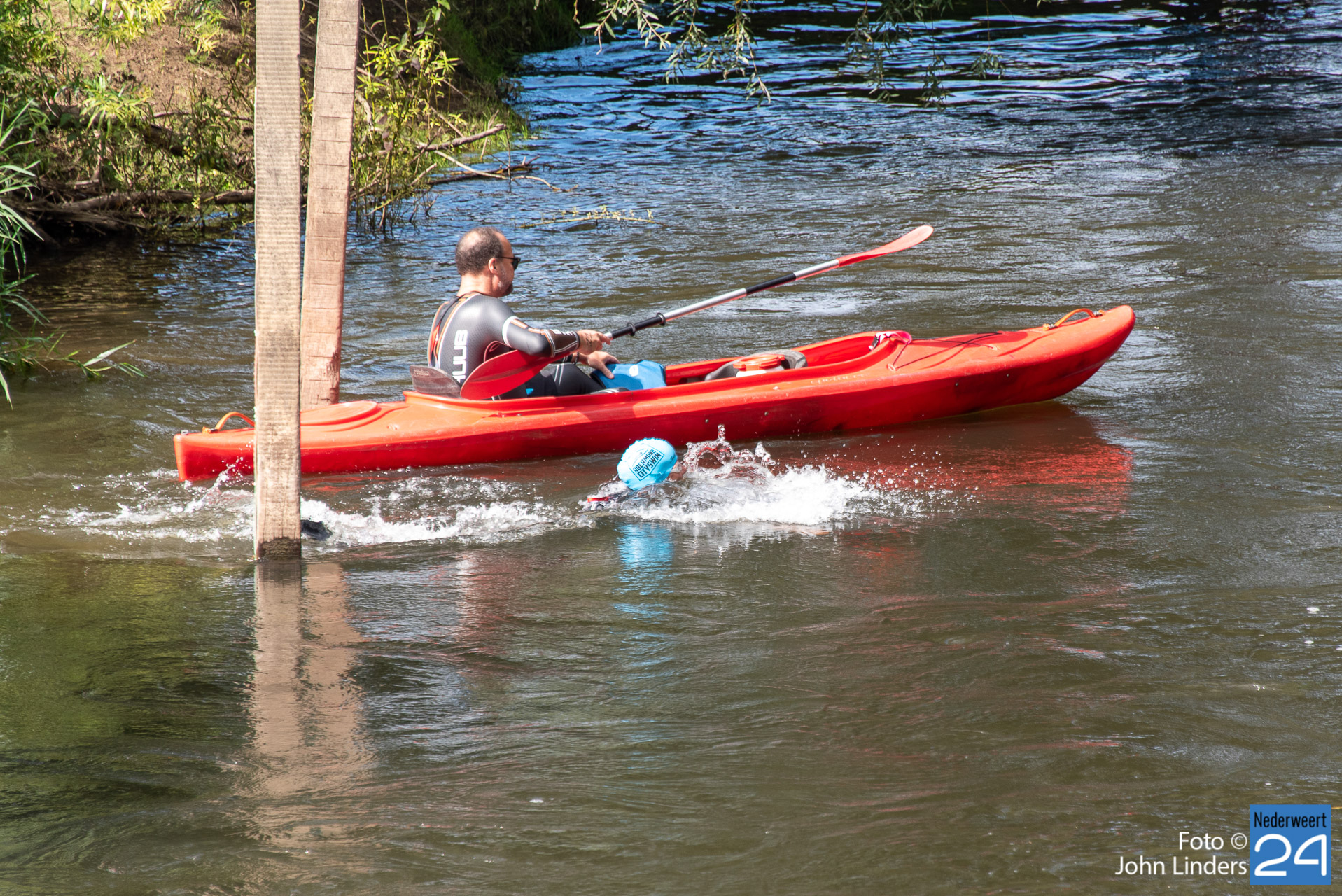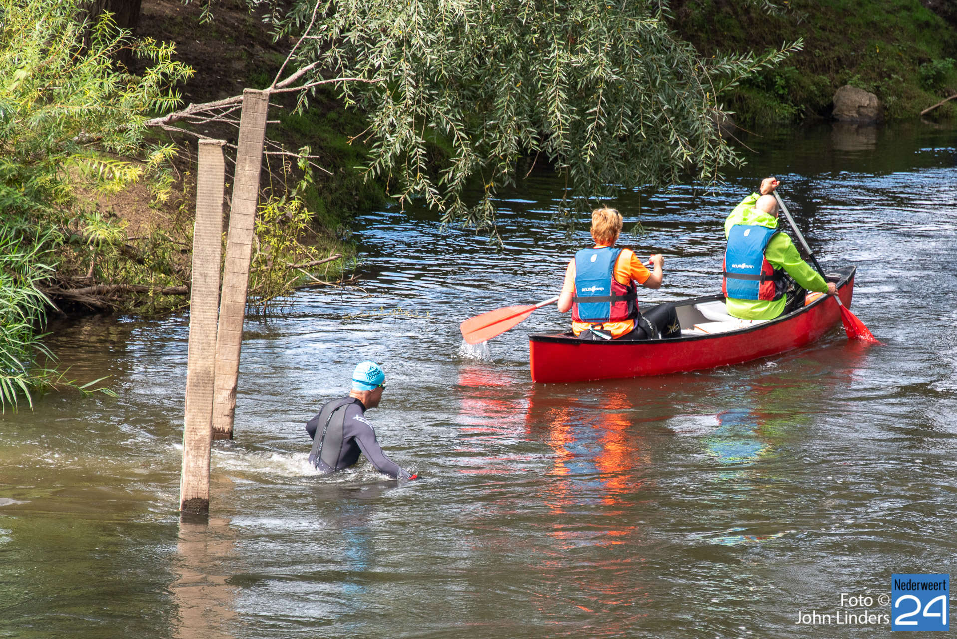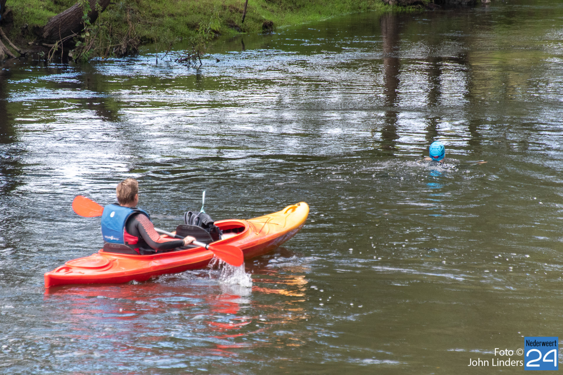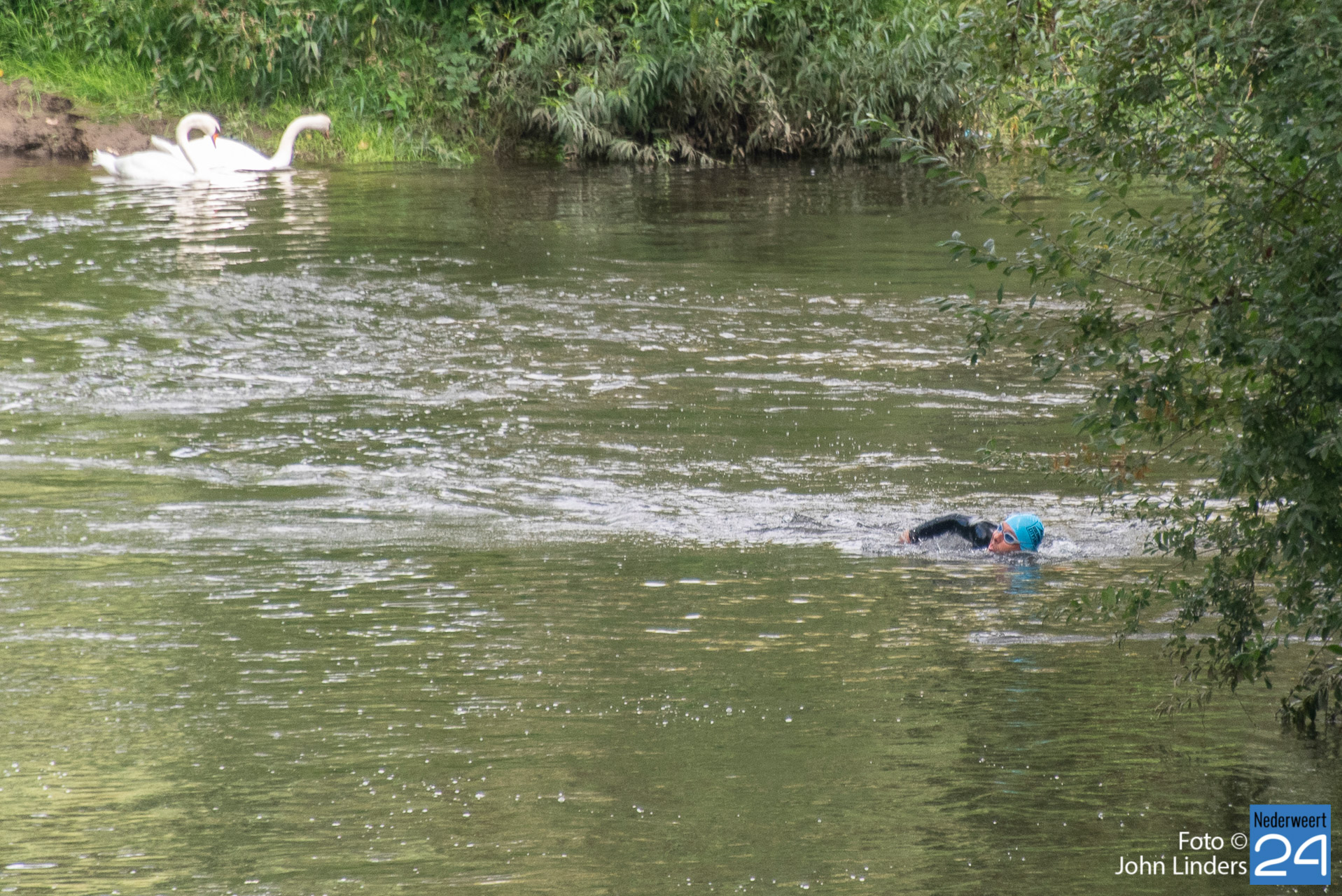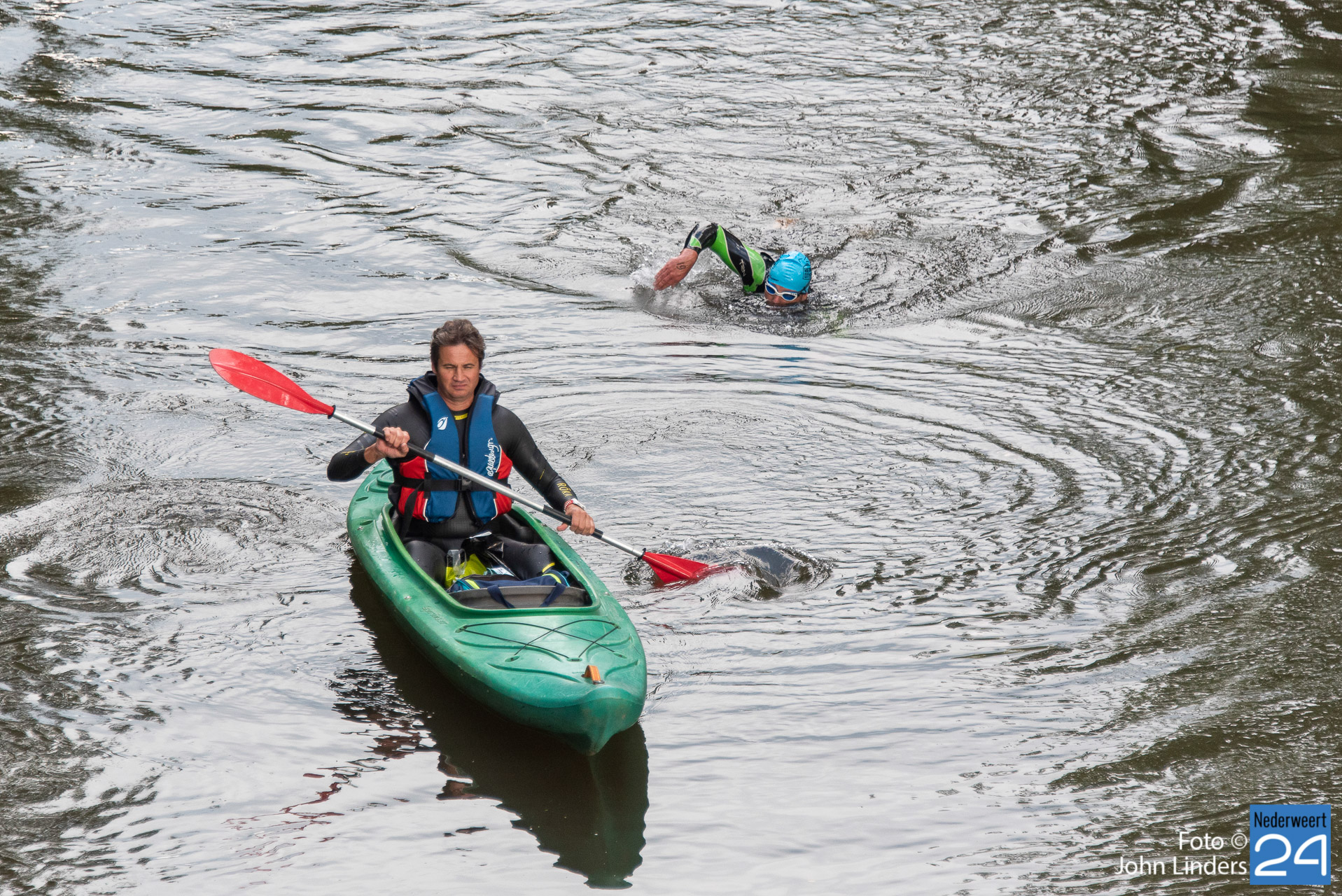 Er kon gezwommen worden op 3 afstanden. De 750mtr, 2000mtr en de 20Km. Van deze laatste was de start in Vlodrop. Maar liefst 16 team gingen de 20km lange tocht over de Roer maken. Alle teams gingen op inschrijfnummer van start. Als laatste ging het team Maarten en Daisy van der Weijden te water. Per zwemmer ging er een kano mee als begeleiding. Onderweg mochten de zwemmers wisselen met de mensen in de kano.