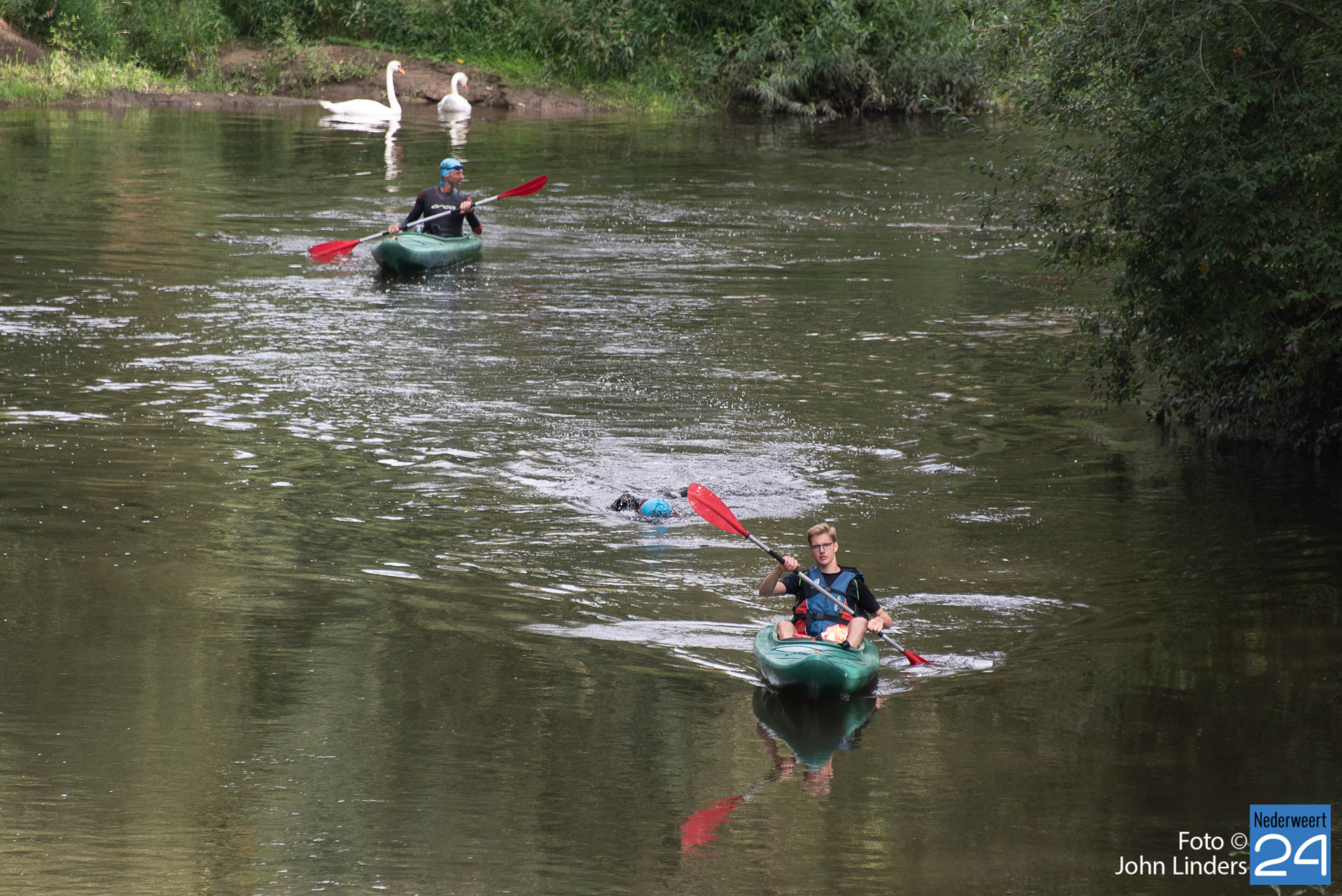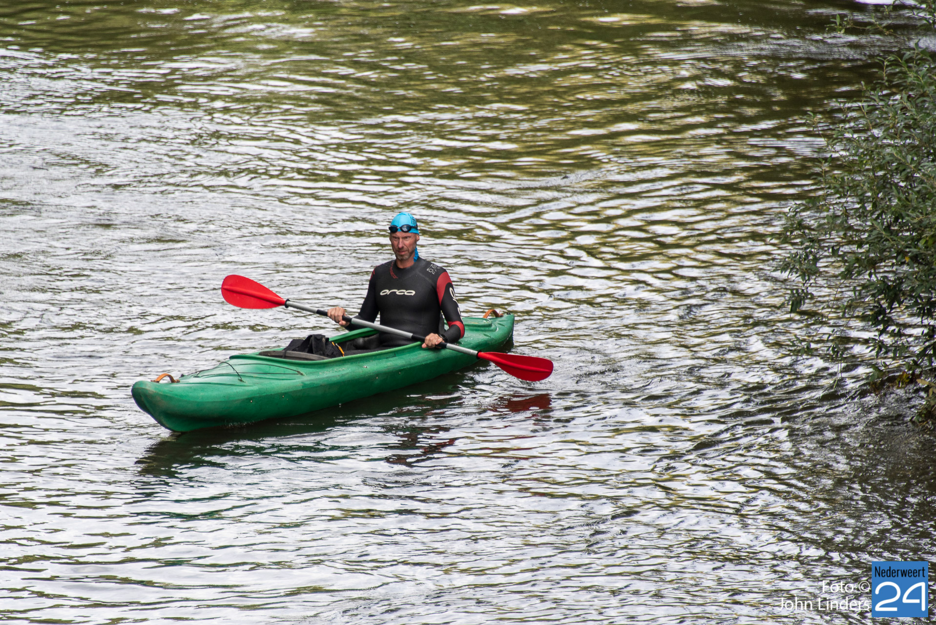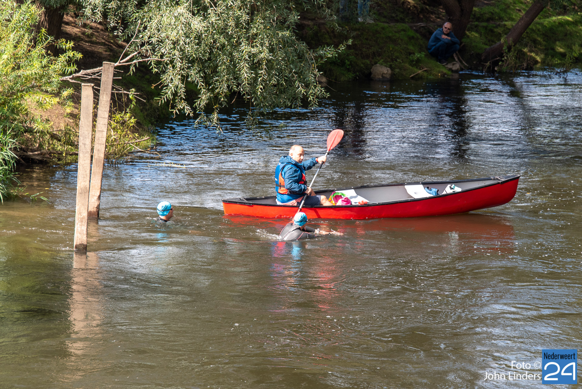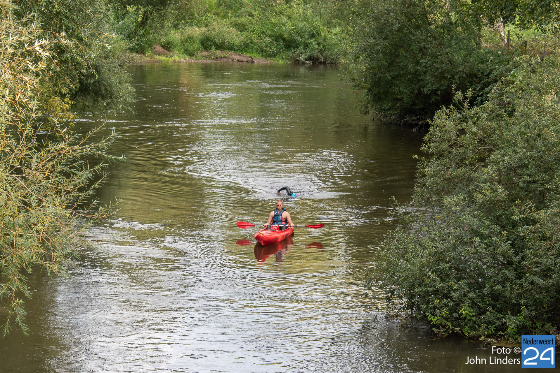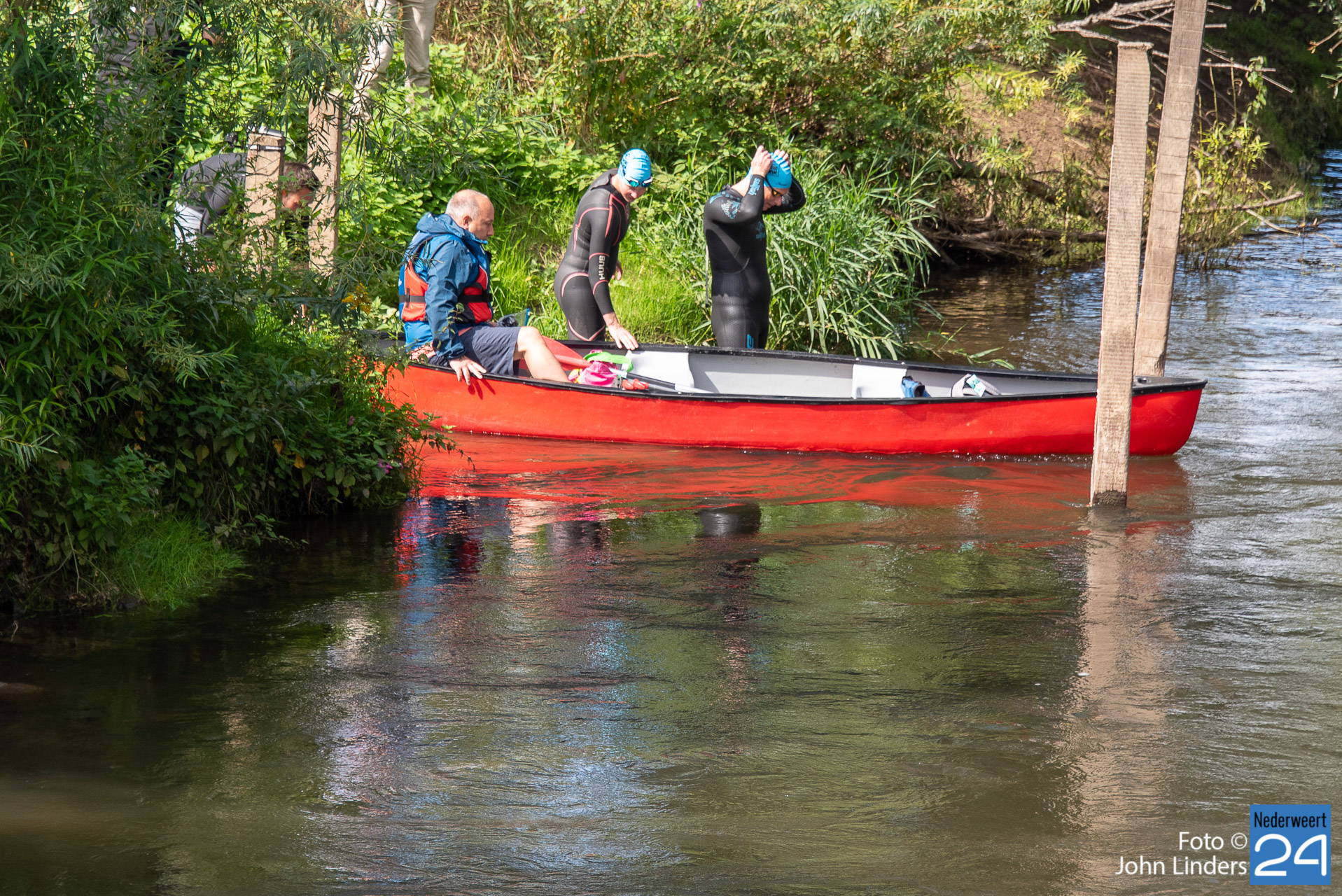 Er kon gezwommen worden op 3 afstanden. De 750mtr, 2000mtr en de 20Km. Van deze laatste was de start in Vlodrop. Maar liefst 16 team gingen de 20km lange tocht over de Roer maken. Alle teams gingen op inschrijfnummer van start. Als laatste ging het team Maarten en Daisy van der Weijden te water. Per zwemmer ging er een kano mee als begeleiding. Onderweg mochten de zwemmers wisselen met de mensen in de kano.