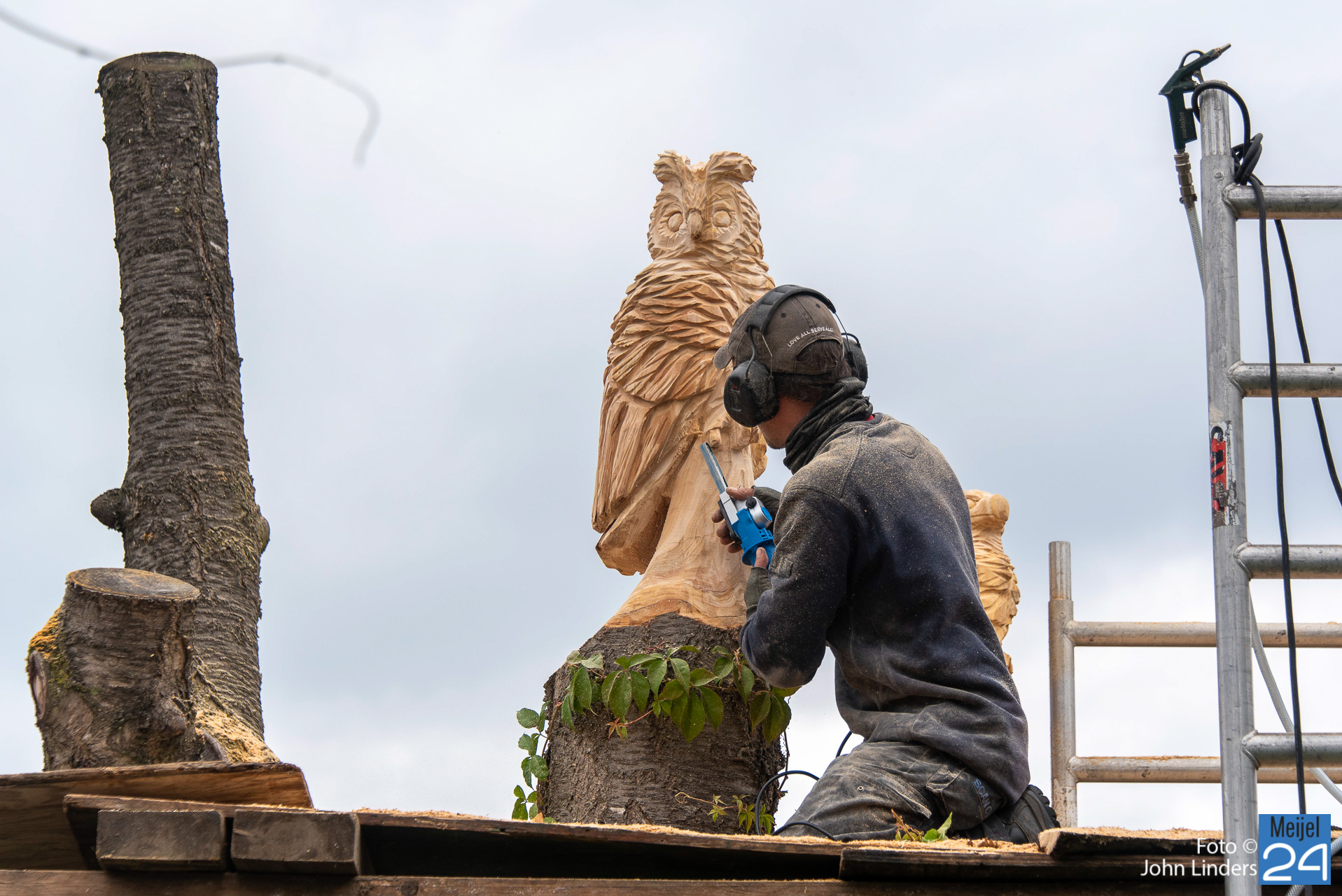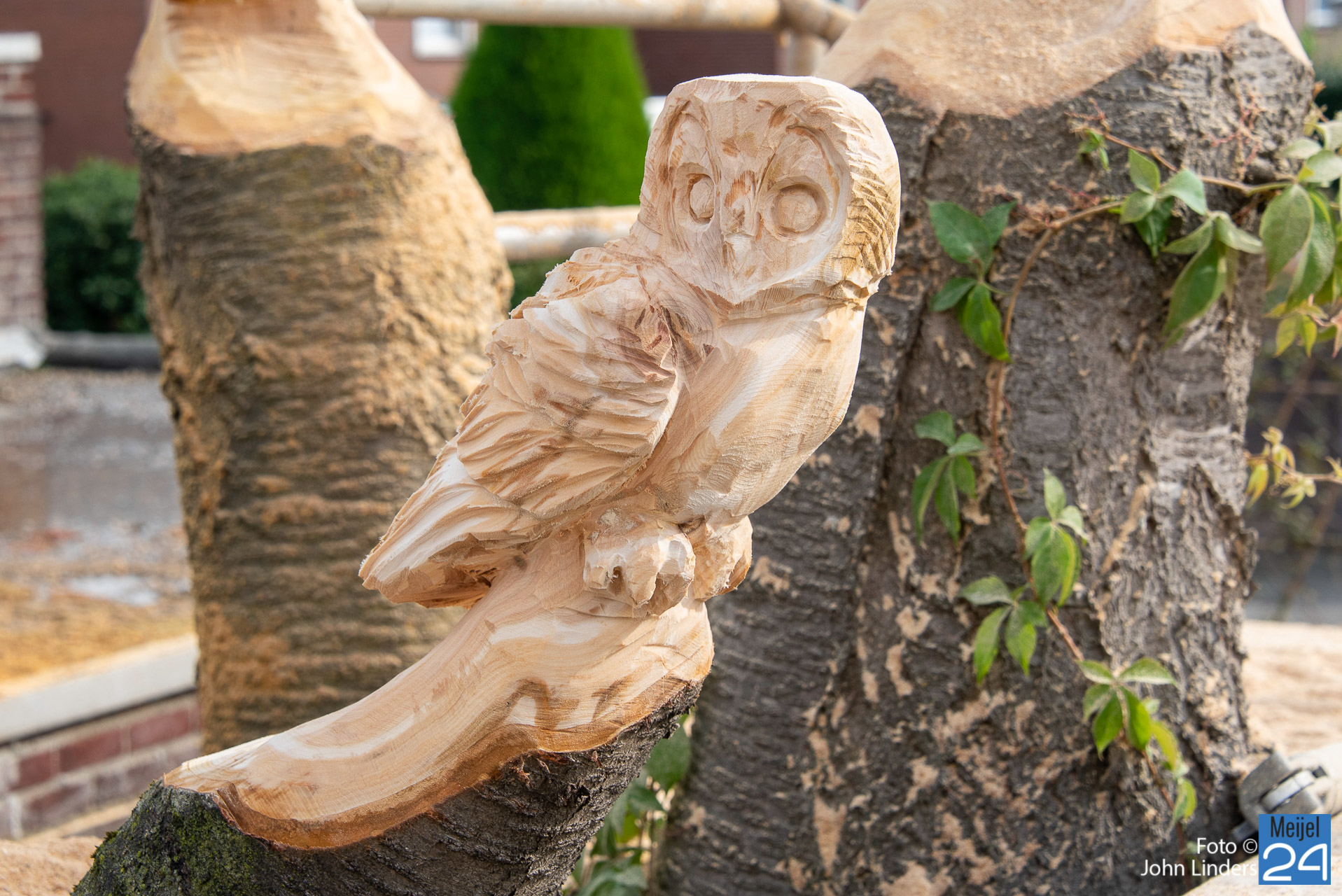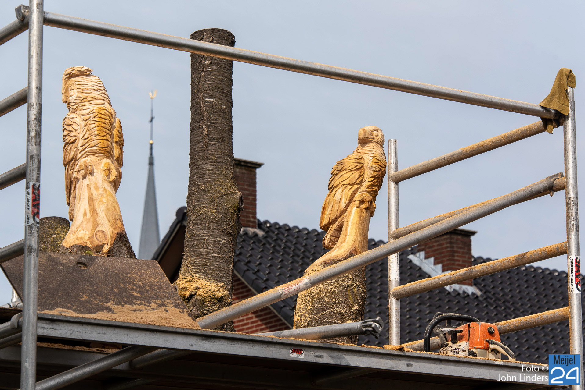 Een mooie oehoe, kerkuil, adelaar, specht en als laatste een eekhoorn die de boom beklimt. Dit zijn de 5 dieren die vanaf vandaag trots over het mooie dorp Meijel kijken. Heb je ook een leuk idee, dan kun je Lars vinden op Facebook onder de naam Lars chainsaw works.