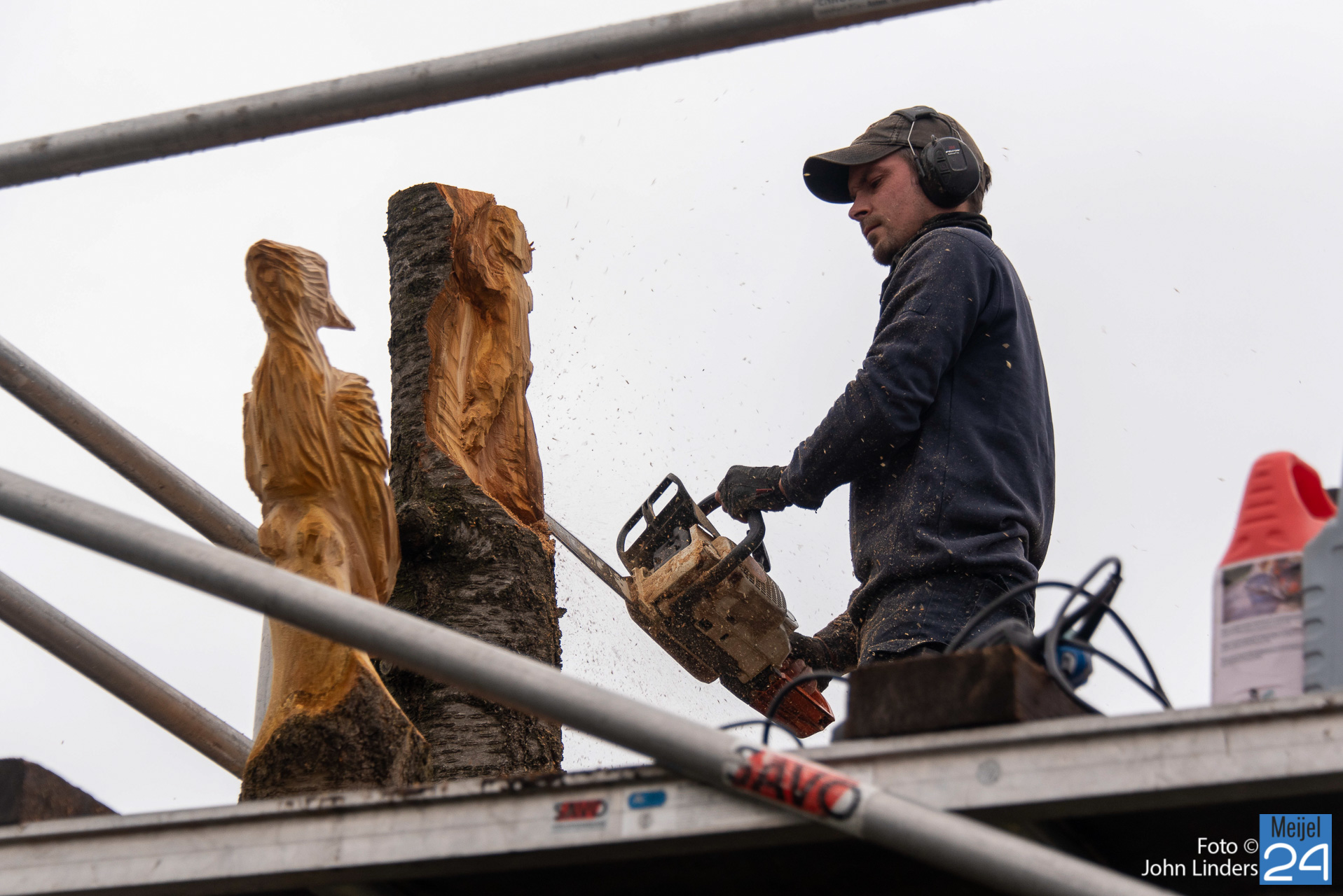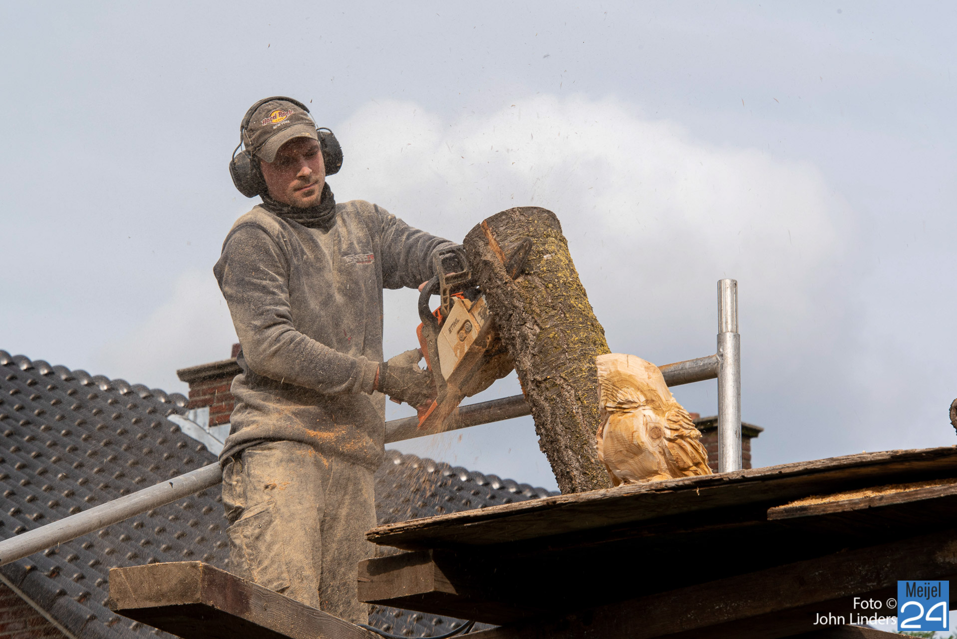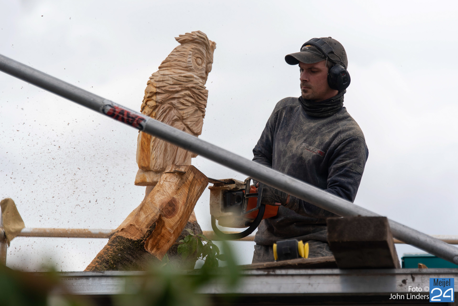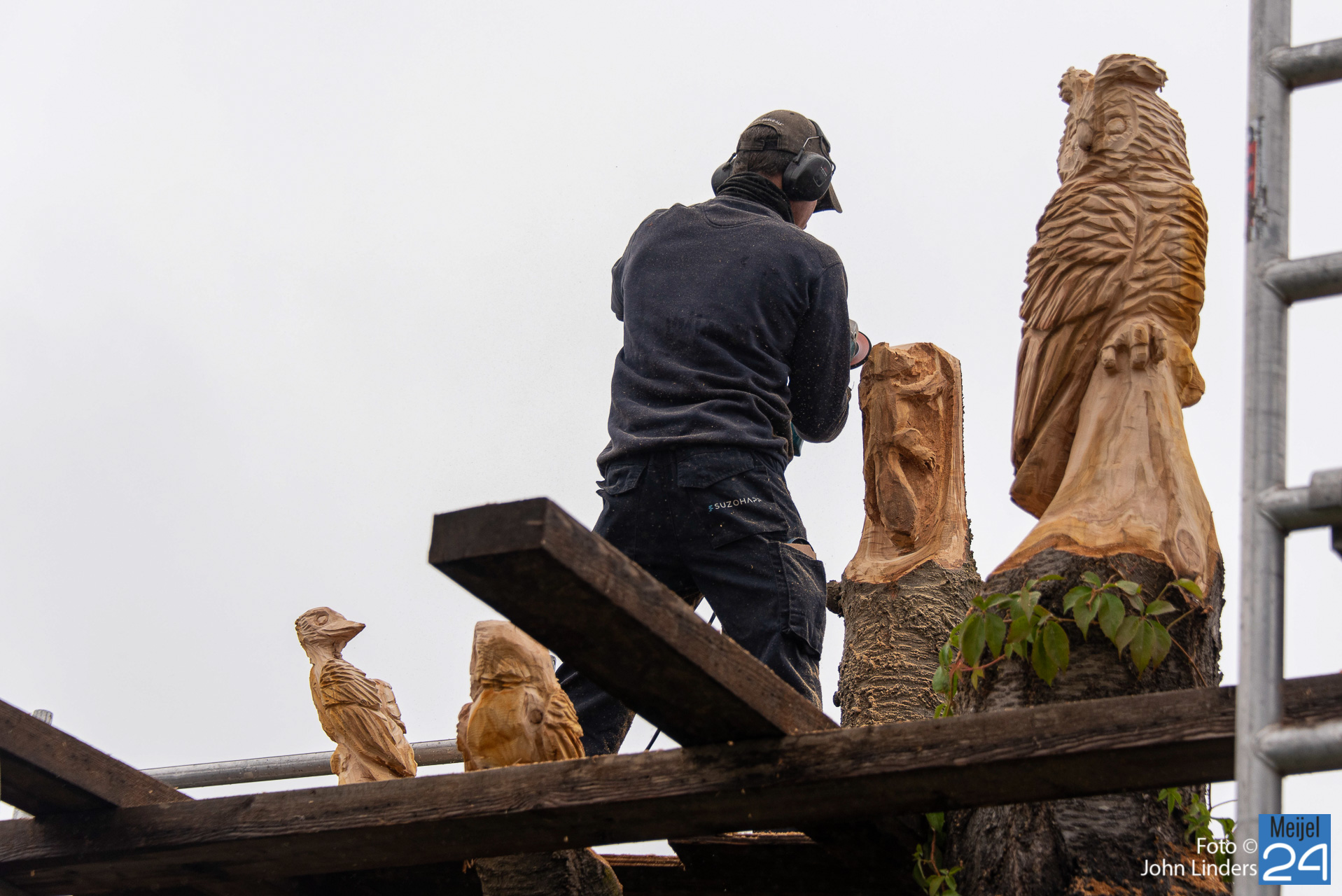 Een mooie oehoe, kerkuil, adelaar, specht en als laatste een eekhoorn die de boom beklimt. Dit zijn de 5 dieren die vanaf vandaag trots over het mooie dorp Meijel kijken. Heb je ook een leuk idee, dan kun je Lars vinden op Facebook onder de naam Lars chainsaw works.