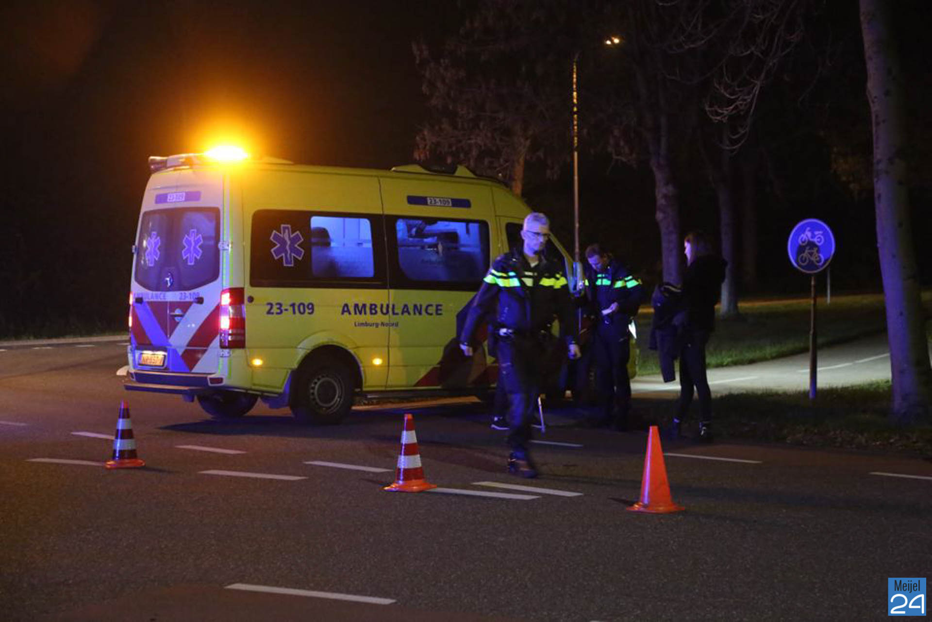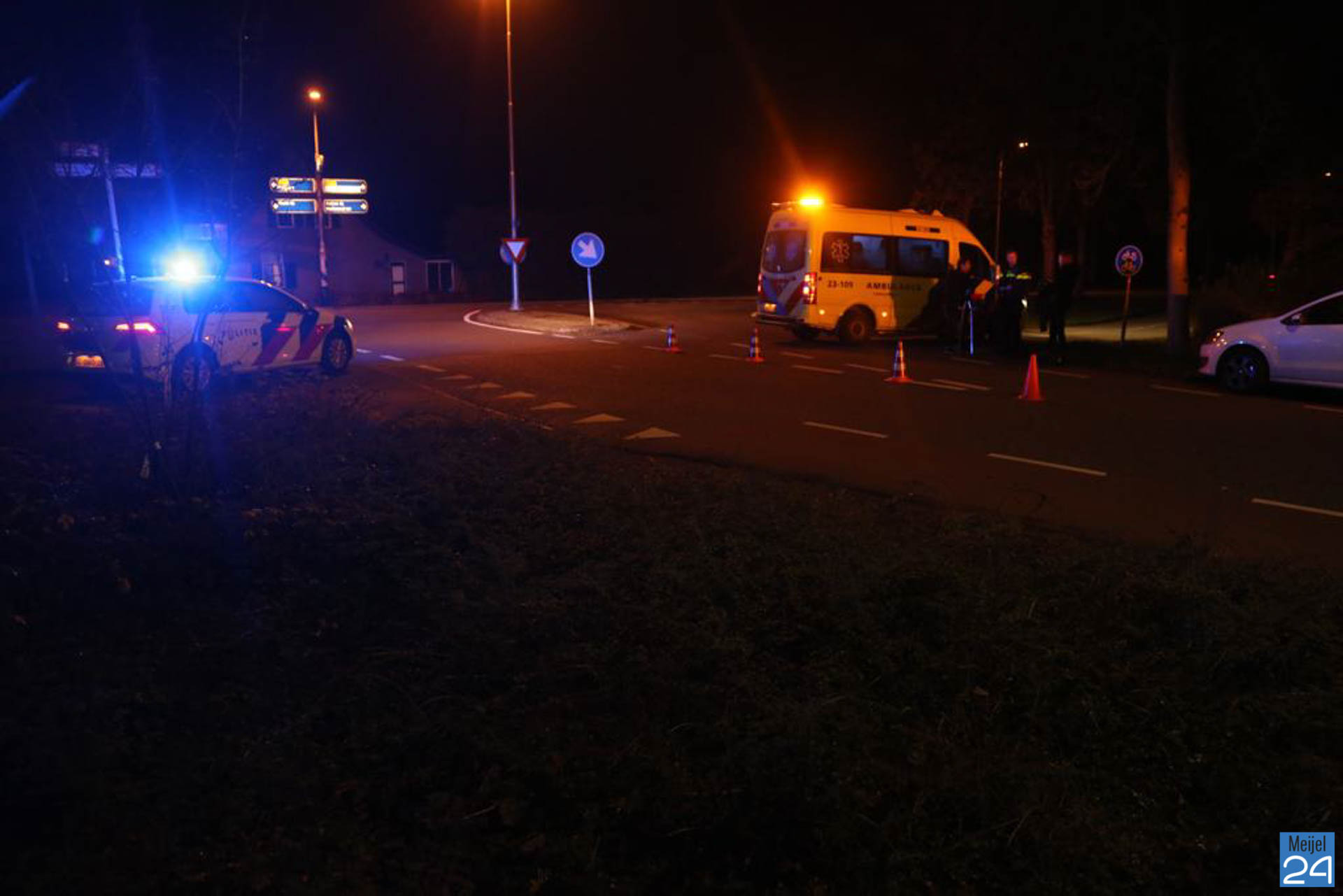 Een fietsster is maandagavond tegen een personenauto gefietst op de Kalishoek in Meijel. De vrouw raakte daarbij gewond.
