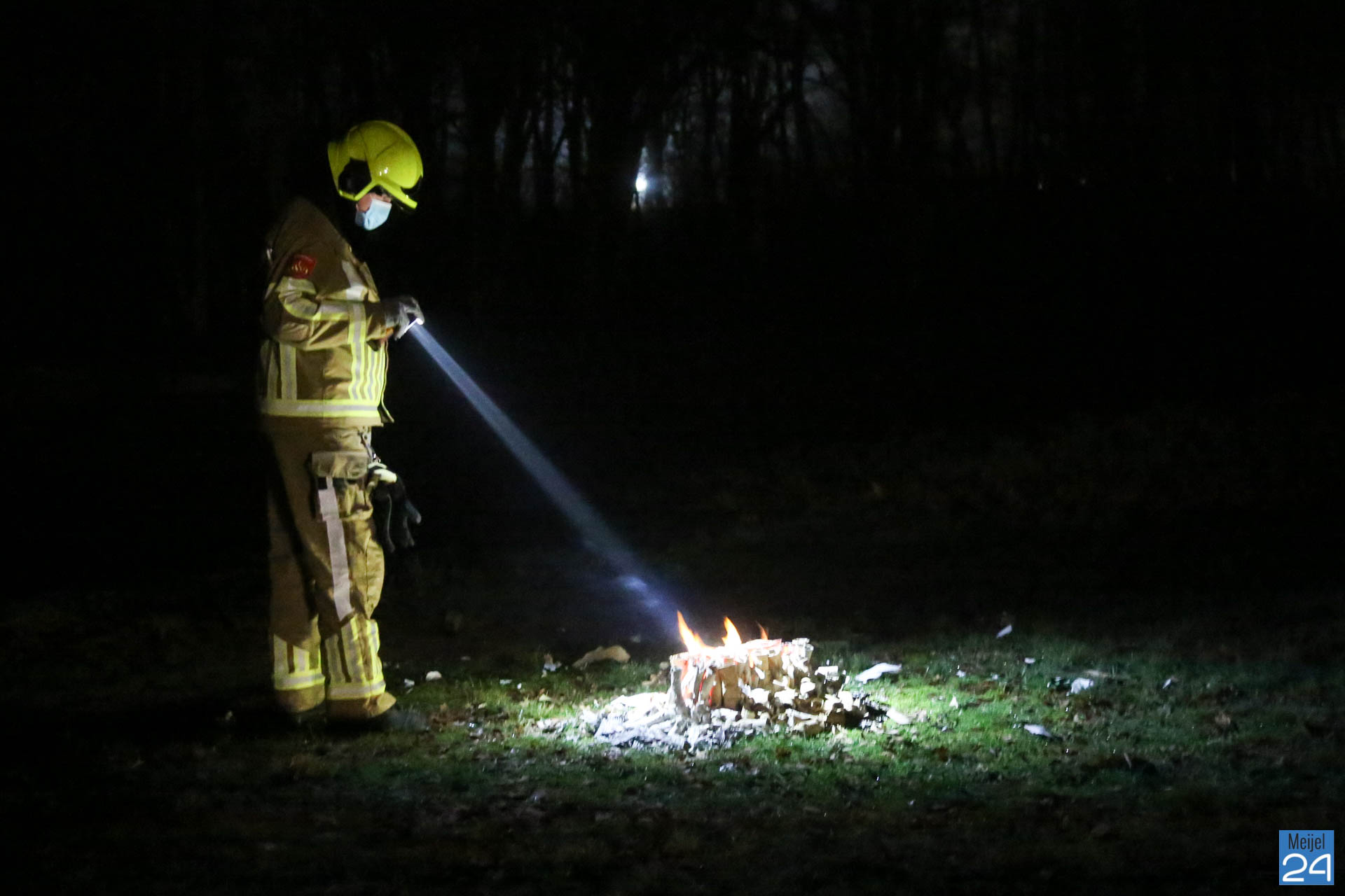 Een brandende vuurwerkdoos bleef vervolgens alleen achter. Buurtbewoners hebben daarom de brandweer gebeld. De brandweer van Meijel kwam met een blusvoertuig ter plaatse en wist het vuurtje snel te doven met een paar emmers water.