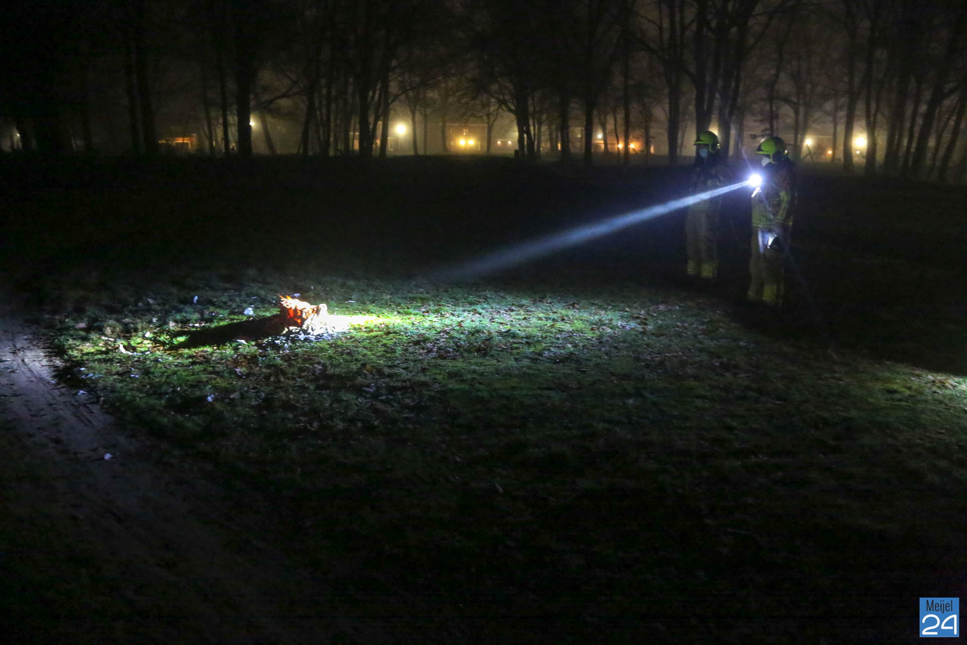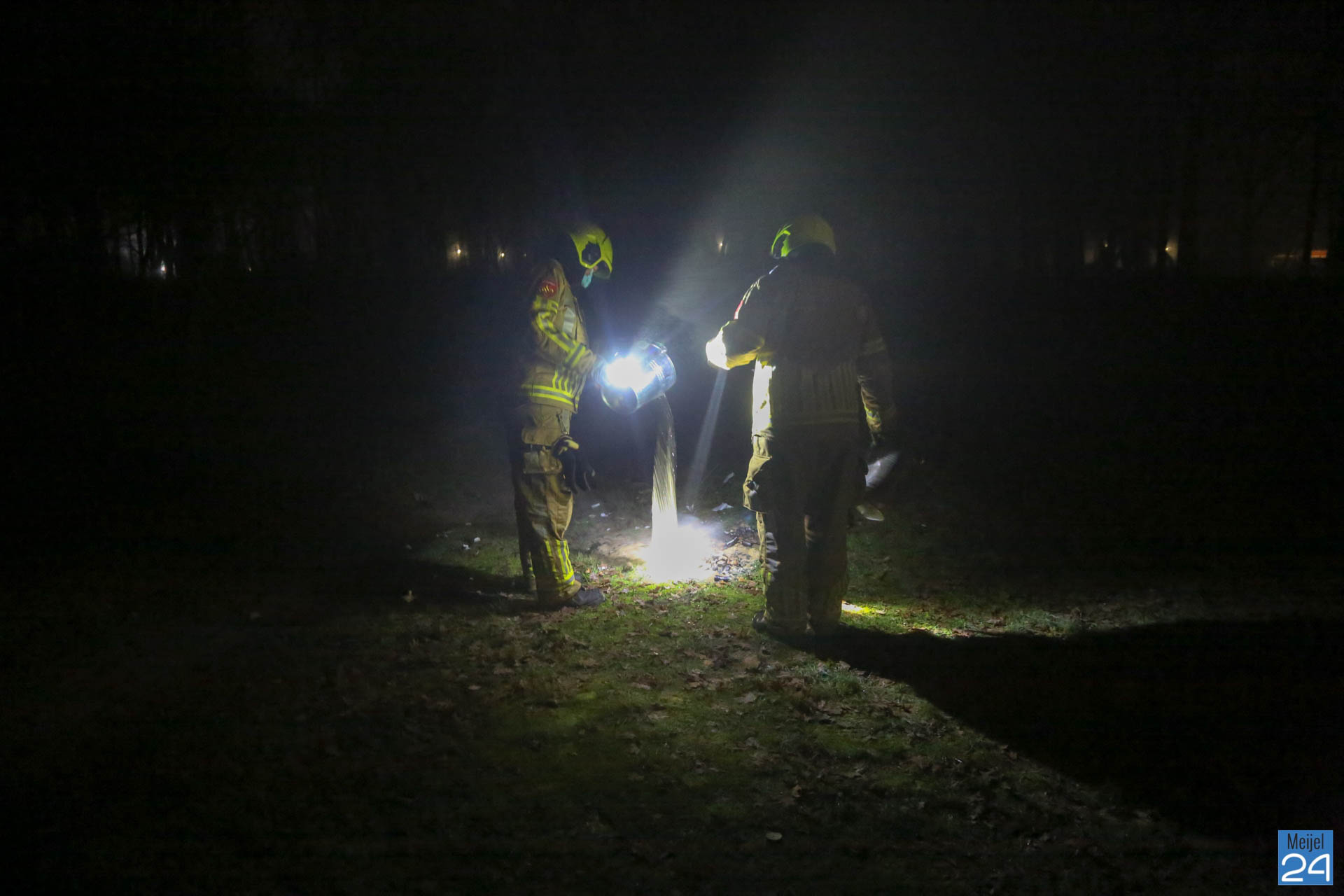 Brandweer blust brandende resten van vuurwerk in Meijel