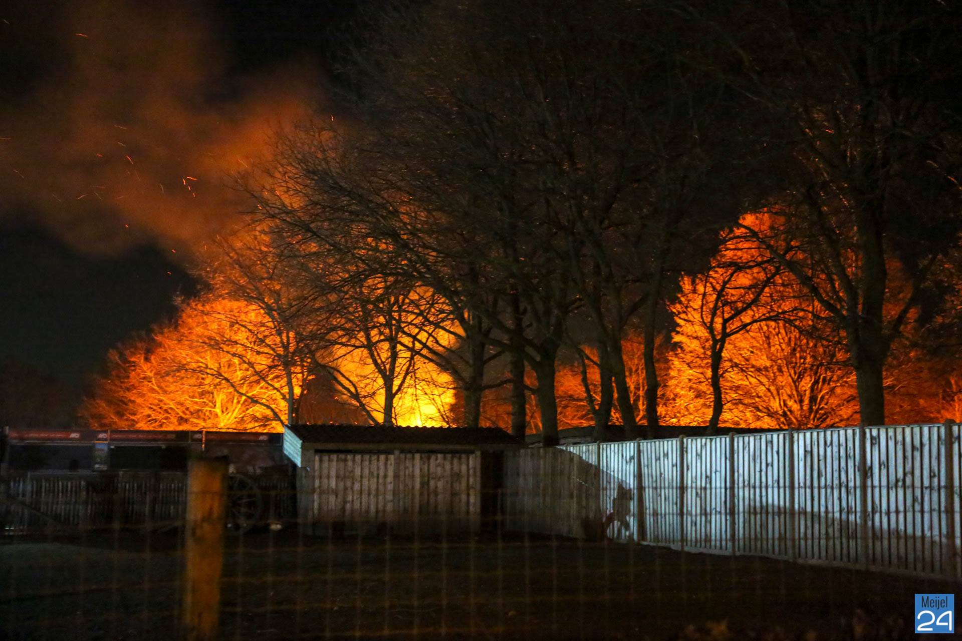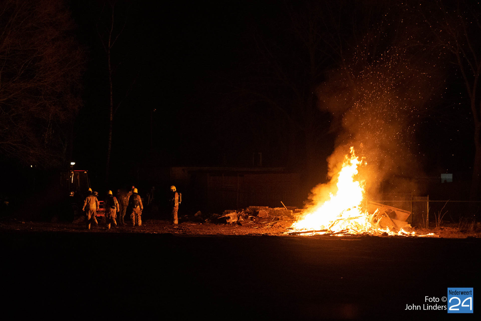Vanaf de weg was een vuurgloed te zien. Mogelijk heeft iemand gedacht dat er brand was op het terrein. De brandweer van Meijel kwam polshoogte nemen maar hoefde niet in actie te komen. De politie is met de betrokkenen in gesprek gegaan.