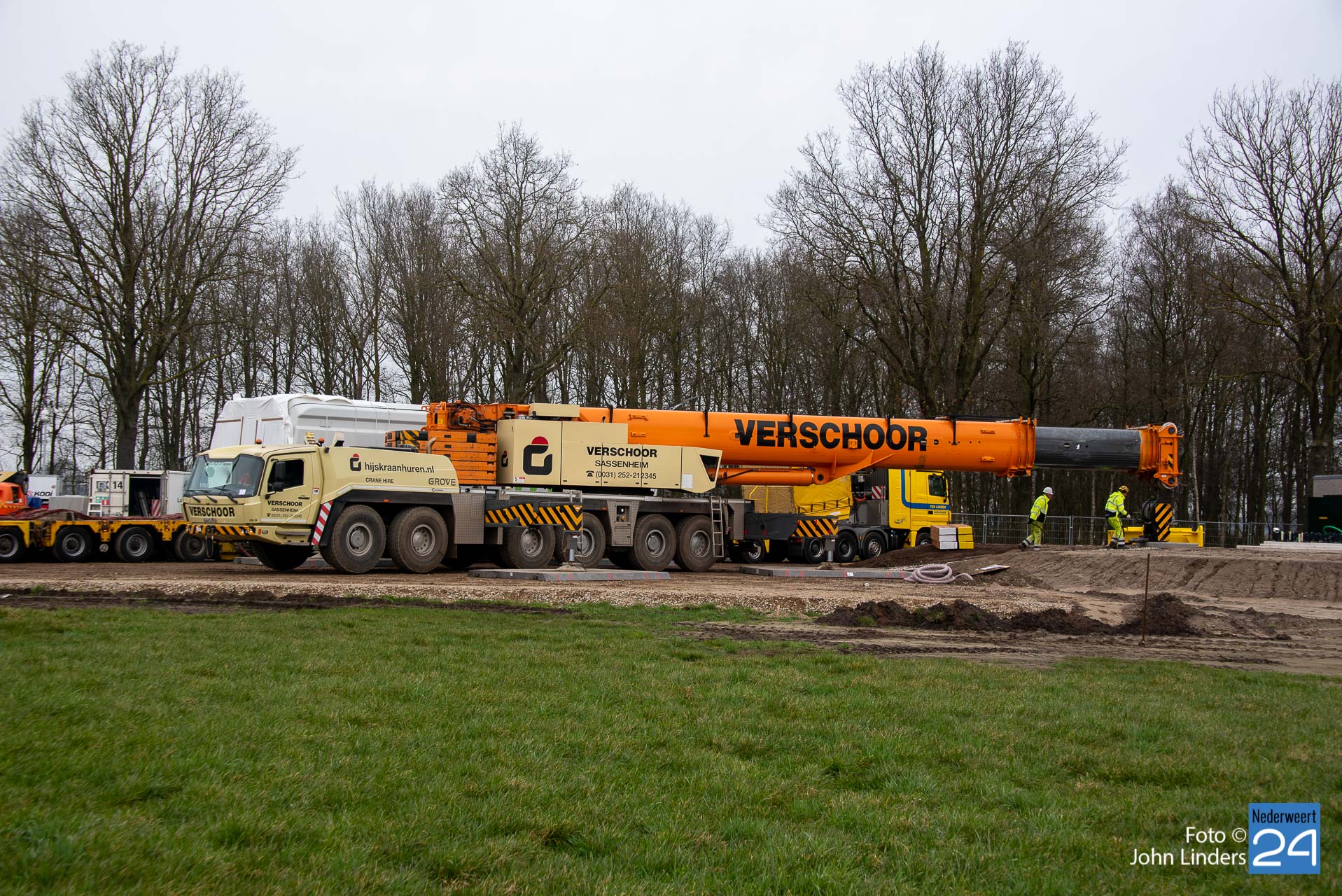 De funderingen zijn klaar. De vier torens van elk 135 meter hoog en de 12 rotorbladen van elk 74 meter lengte worden binnenkort aangevoerd. Dit zijn speciale transporten, die uitgevoerd worden door een gespecialiseerd transportbedrijf “Ter Linden” uit Doetinchem. De firma hoort bij de eredivisie van de transporteurs.