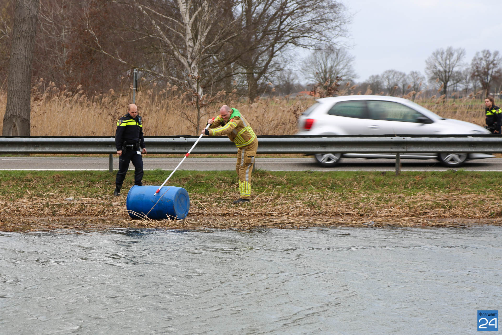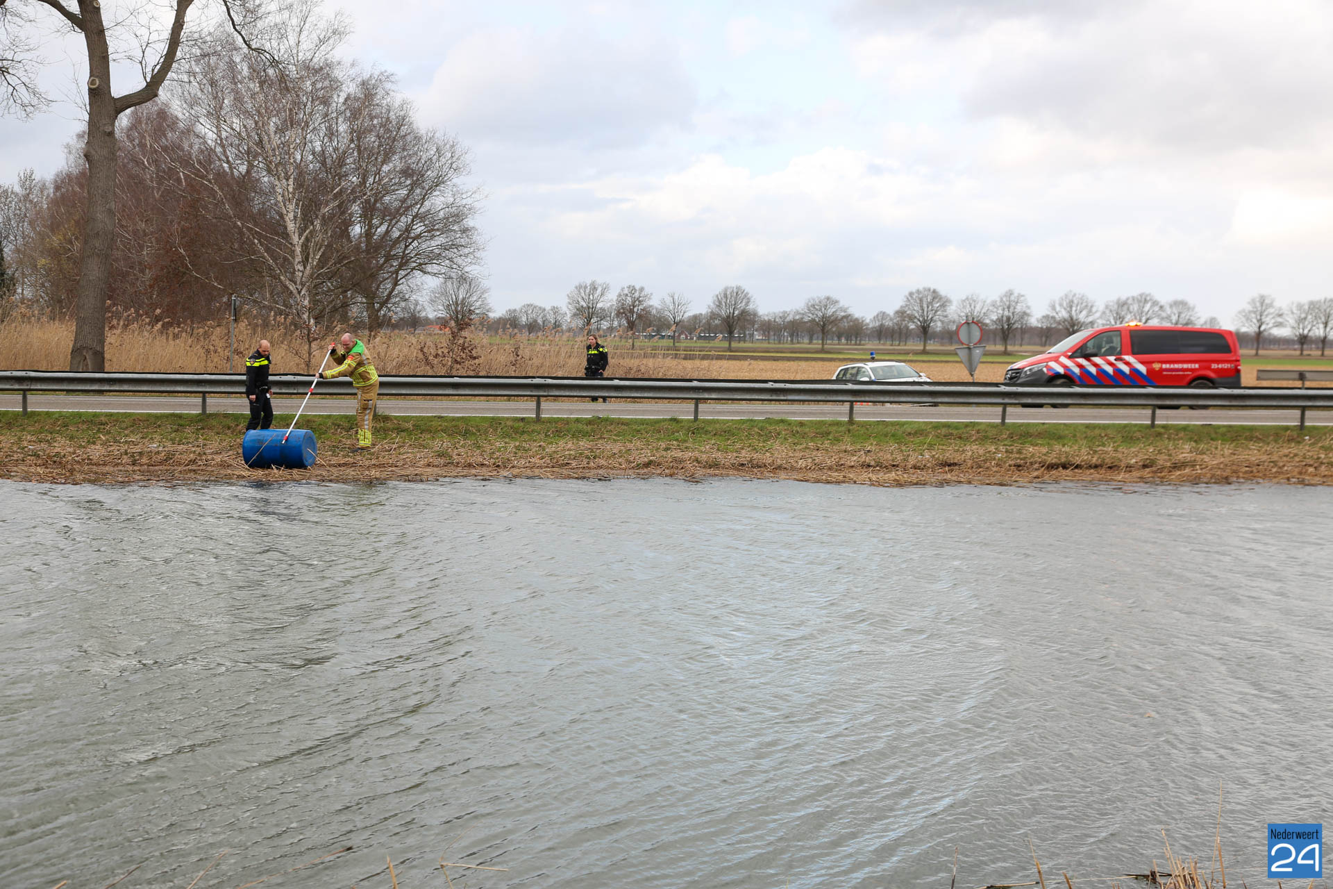 Hulpdiensten halen drijvend vat uit de Noordervaart tussen Meijel en Ospel