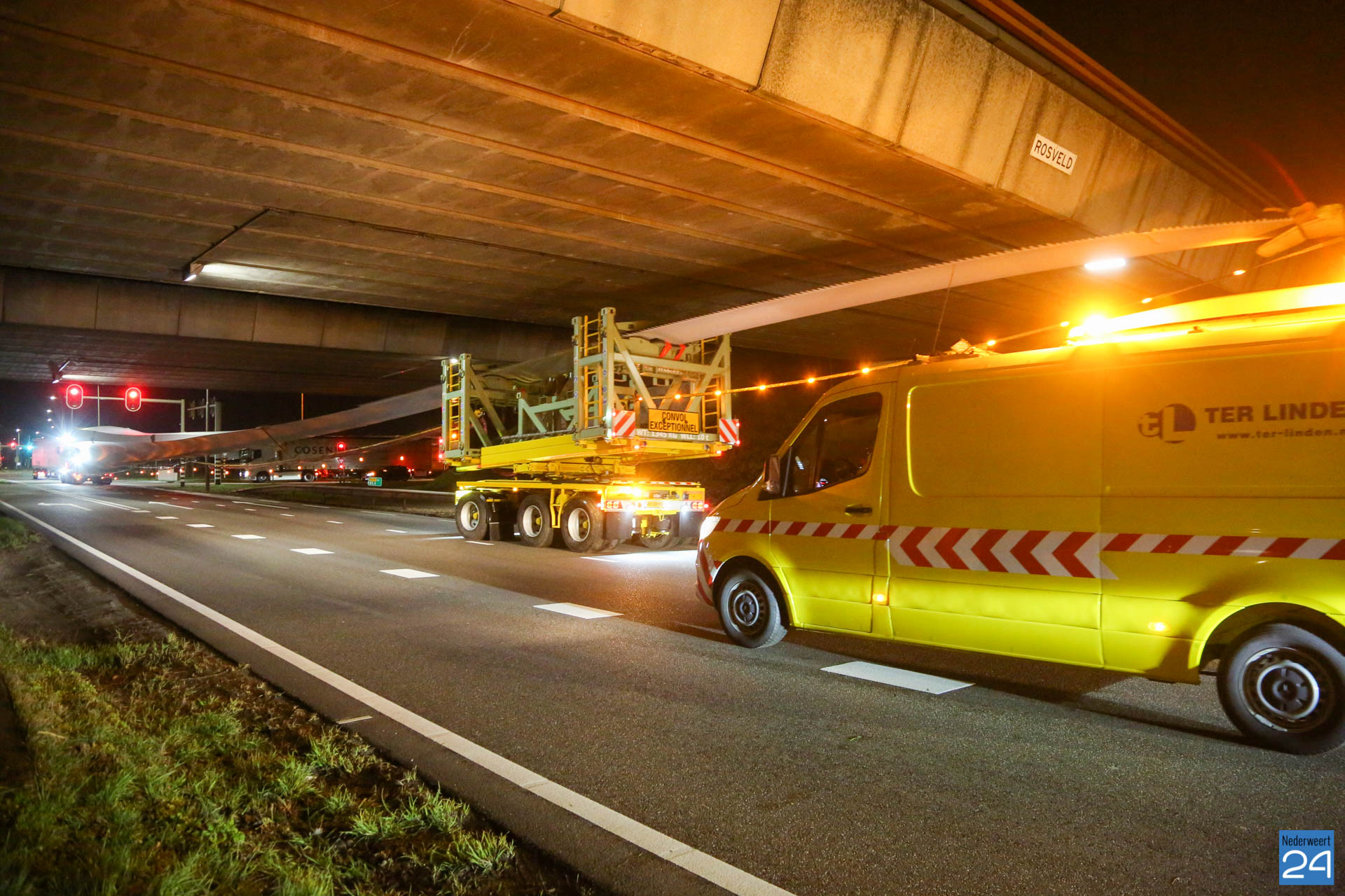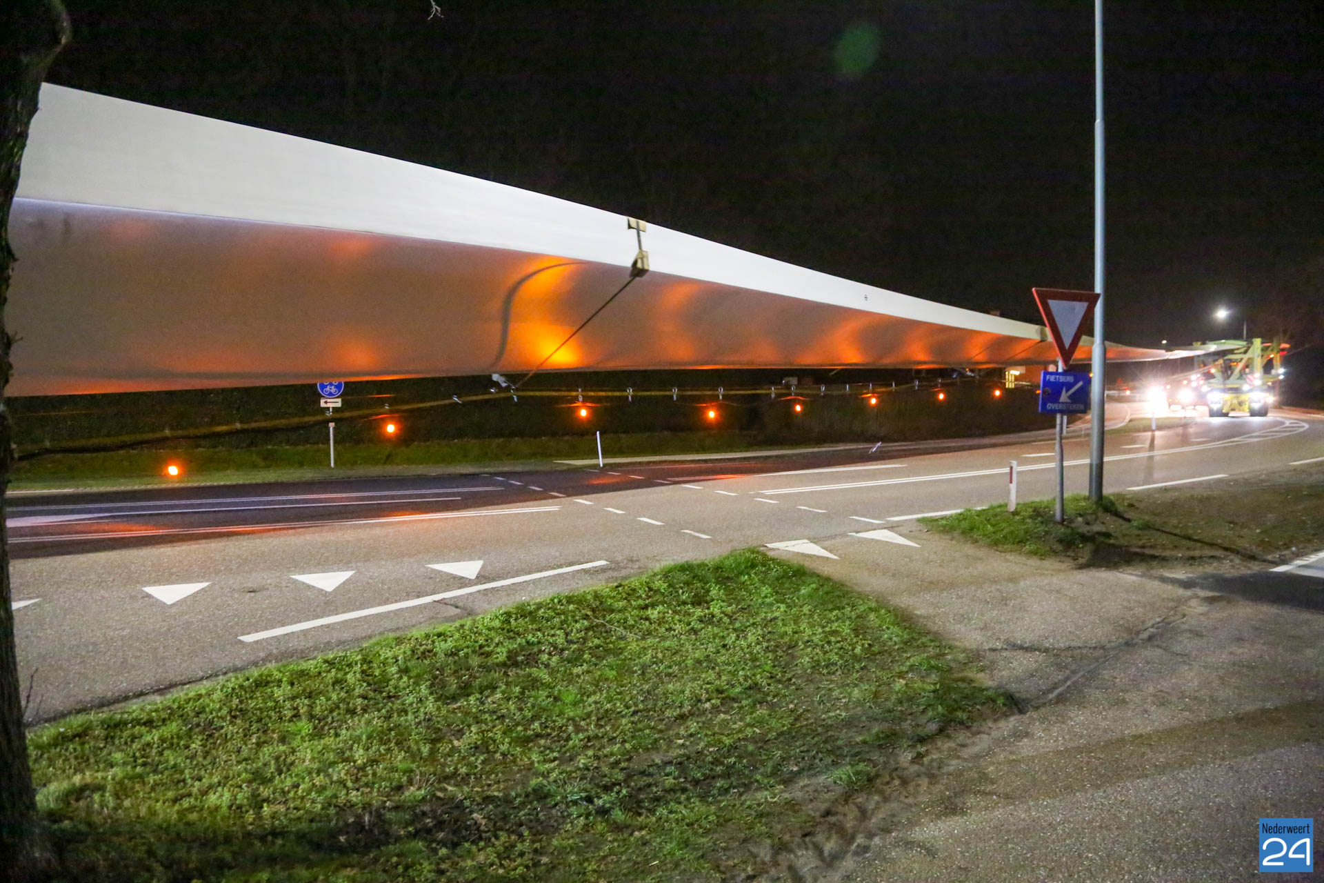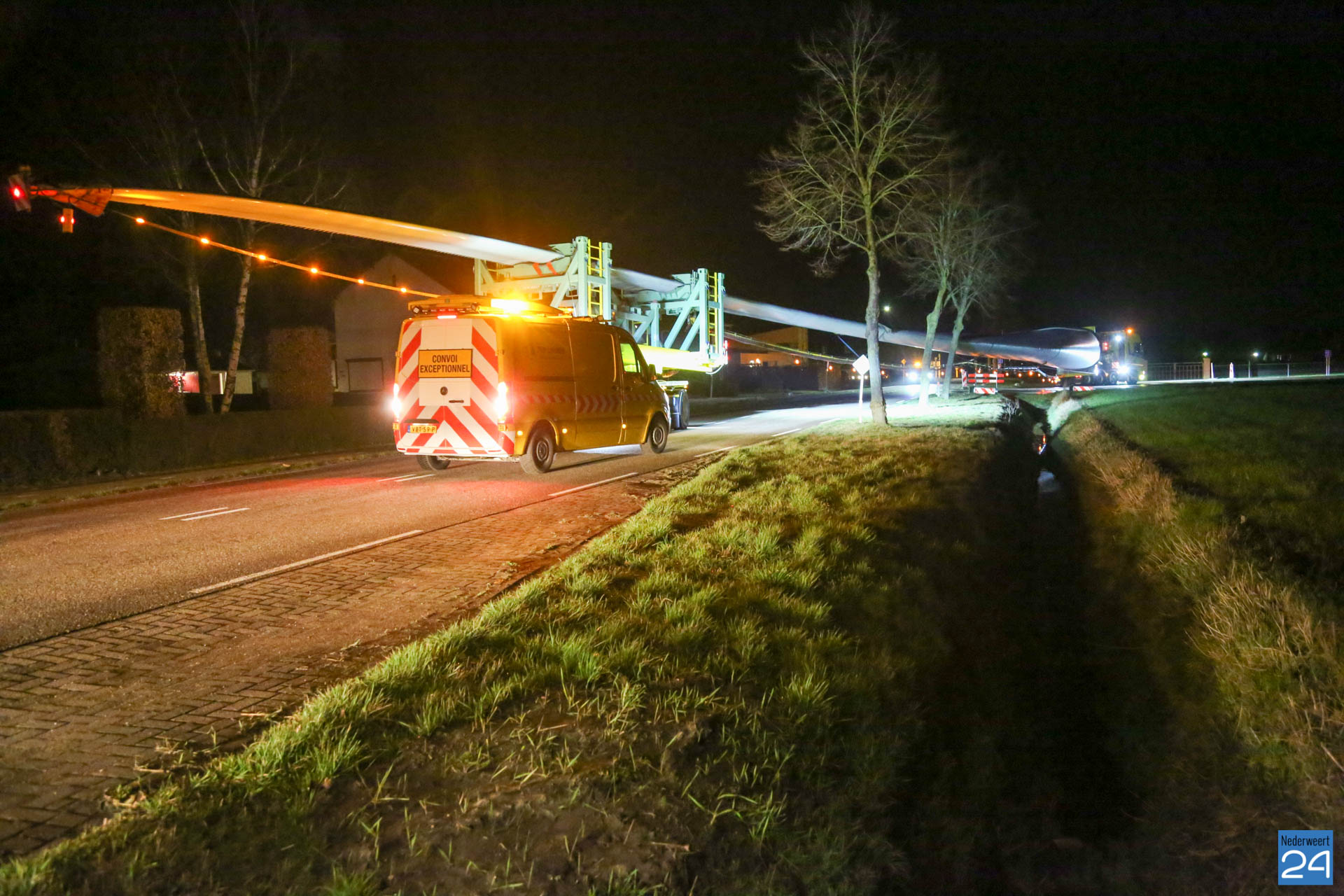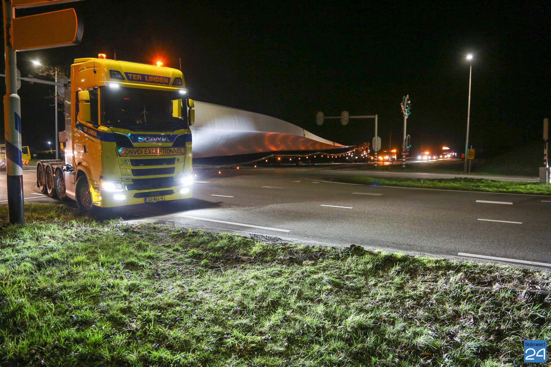 Het eerste rotorblad arriveerde afgelopen vrijdagavond tegen middennacht in Ospeldijk. Het tweede transport arriveerde maandagavond. Komende nachten zijn er ook weer nieuwe transporten gepland. Deze enorme transport van 81 meter lang komen vanaf Antwerpen naar Nederweert. Dit zijn speciale transporten, die uitgevoerd worden door een gespecialiseerd transportbedrijf “Ter Linden” uit Doetinchem. De firma hoort bij de eredivisie van de transporteurs.