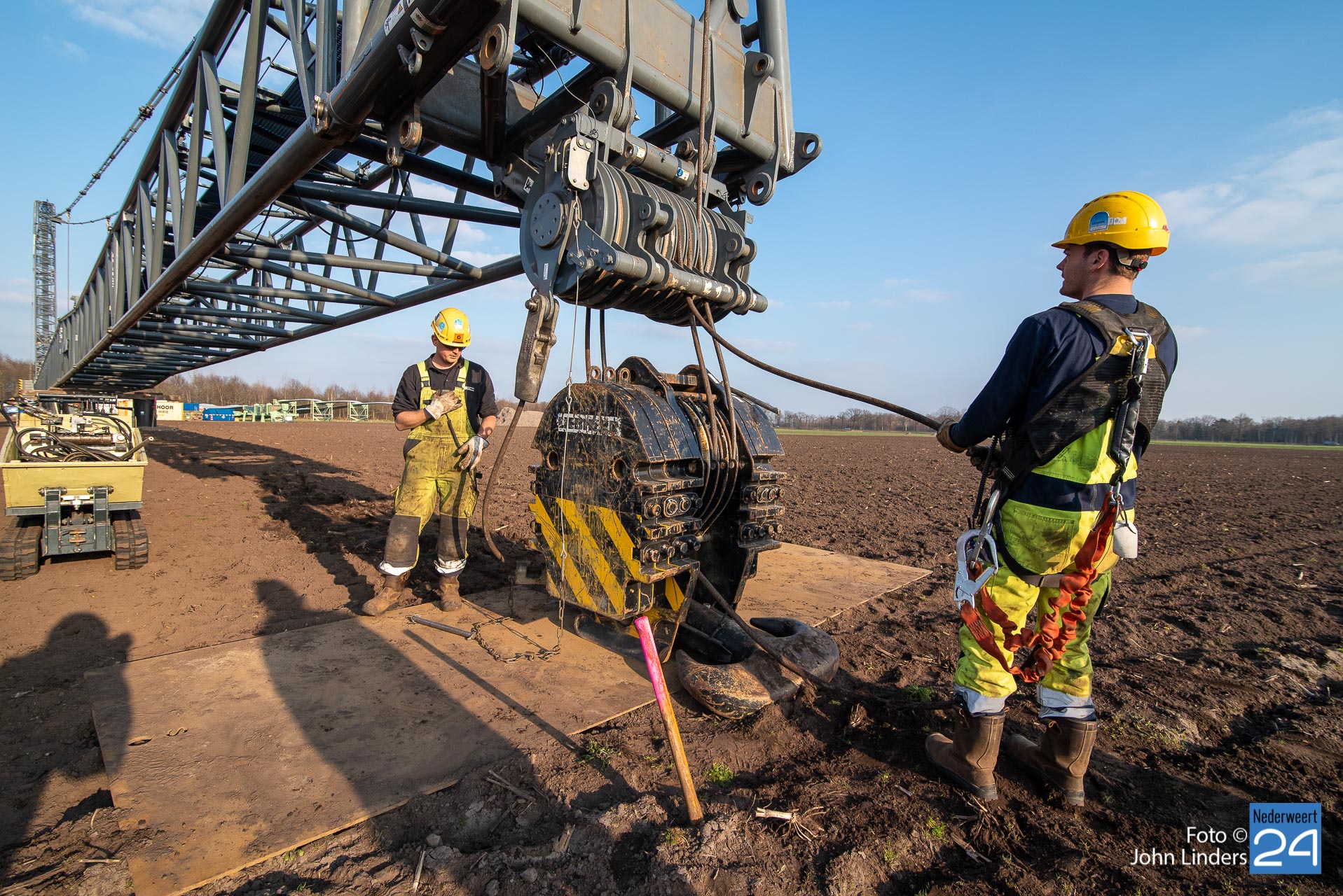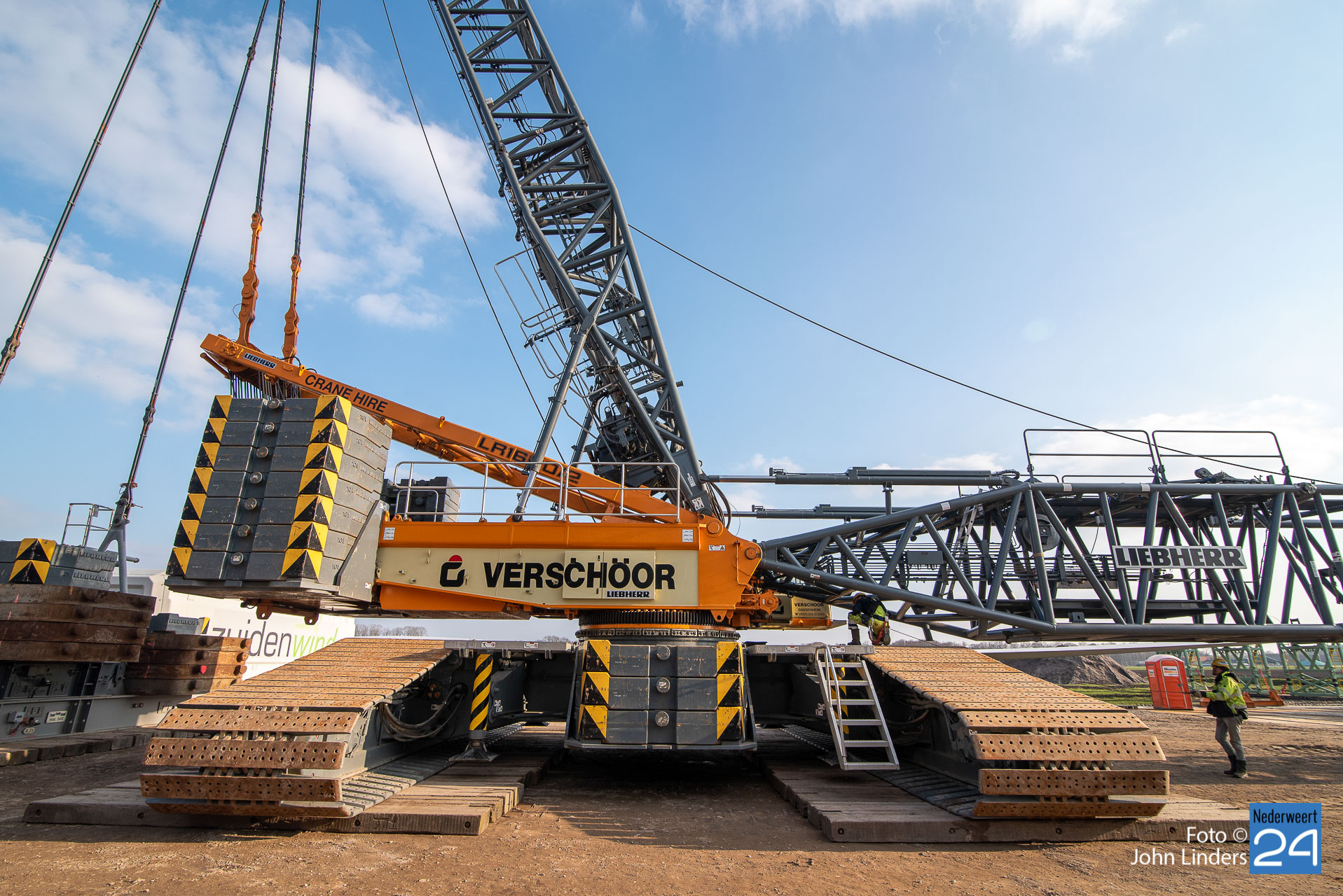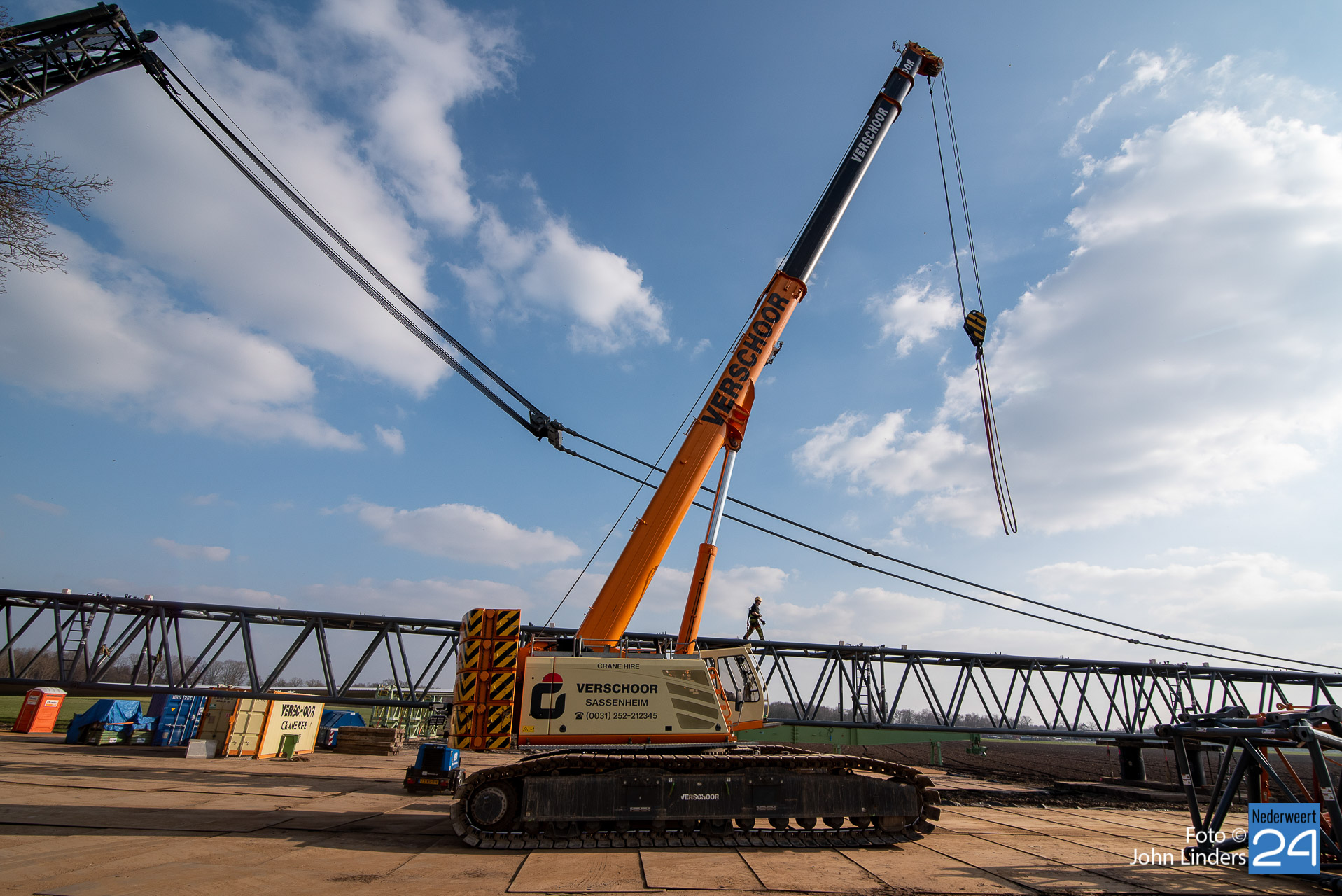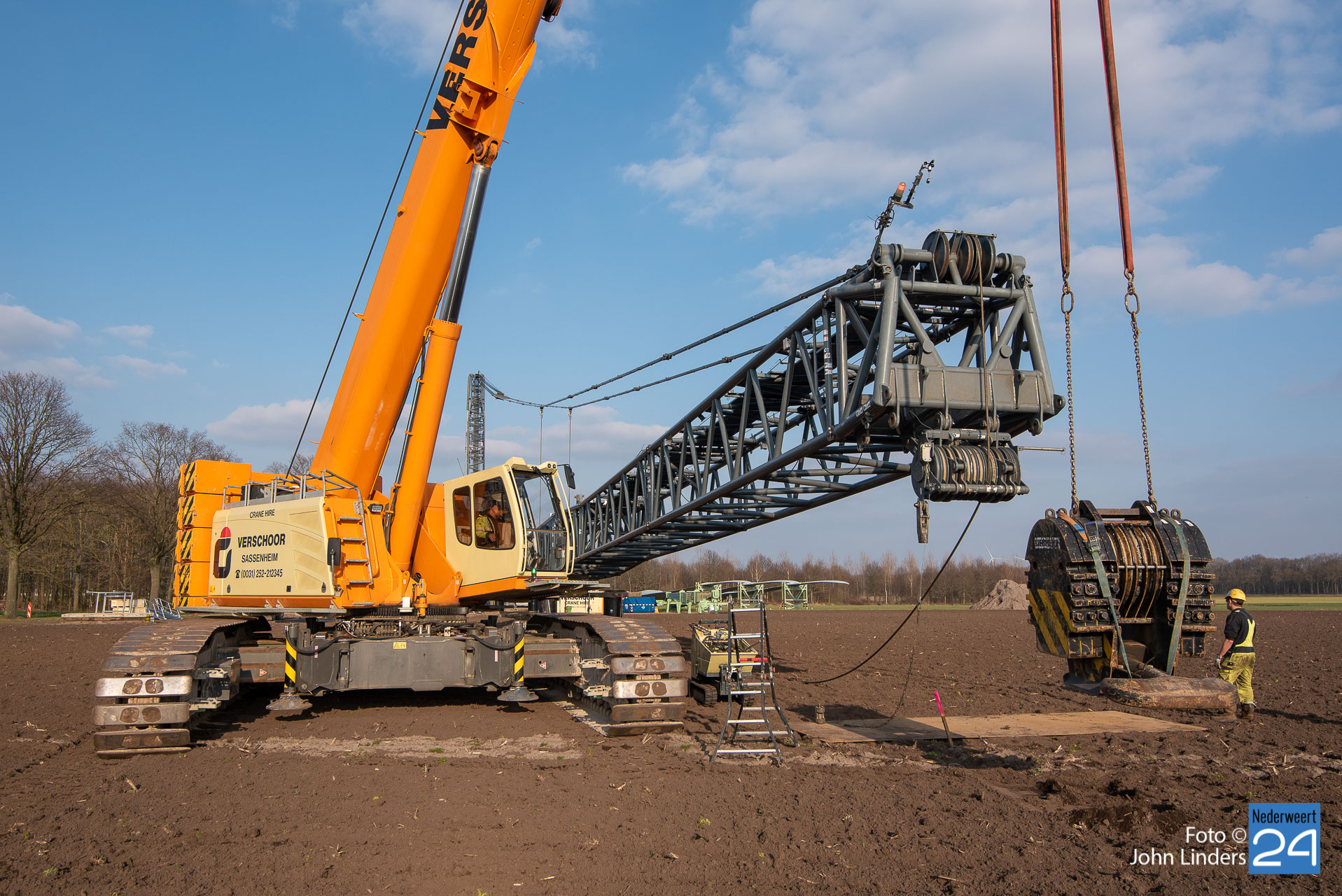 Dinsdagmiddag is een kraan van 130 meter opgebouwd voor de bouw van de vier windmolens in Ospeldijk. De kraan is 130 meter hoog en daar bovenop komt nog eens een 12 meter lange ‘JIP’, een tweede knikarm aan het uiteinde van de eerste.