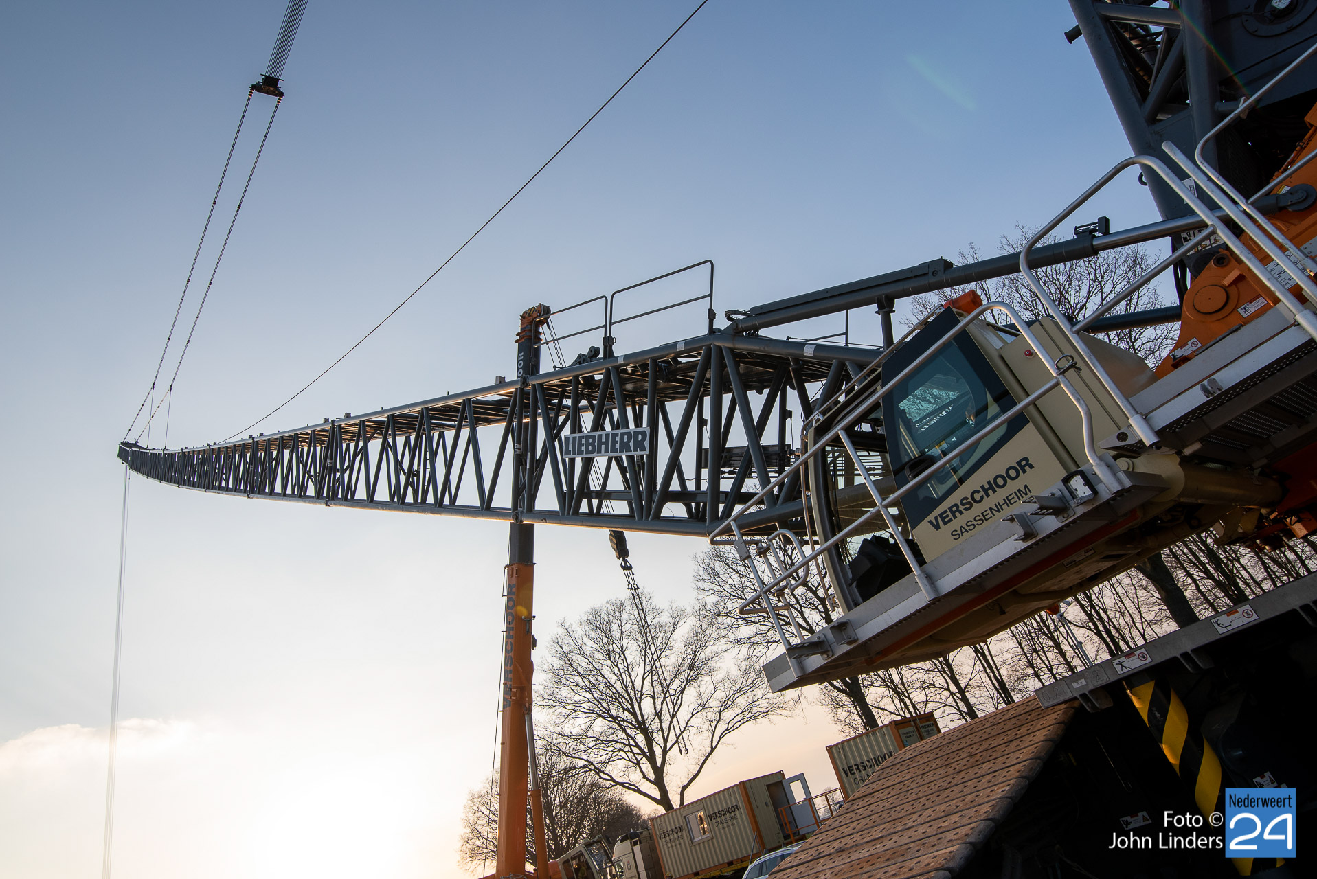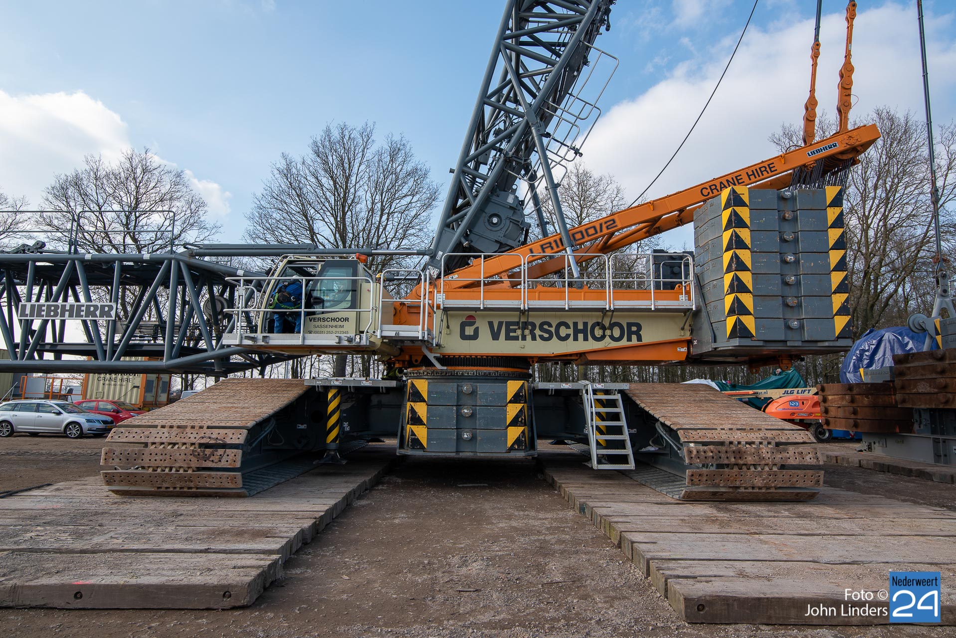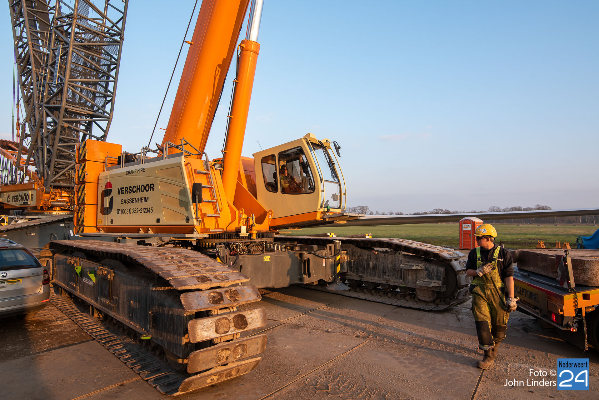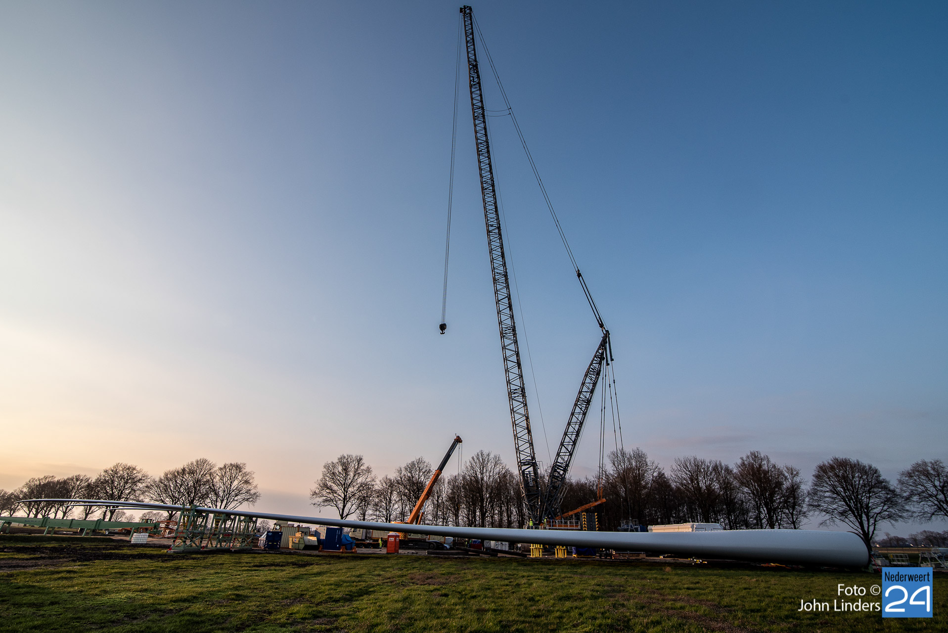 Dinsdagmiddag is een kraan van 130 meter opgebouwd voor de bouw van de vier windmolens in Ospeldijk. De kraan is 130 meter hoog en daar bovenop komt nog eens een 12 meter lange ‘JIP’, een tweede knikarm aan het uiteinde van de eerste.