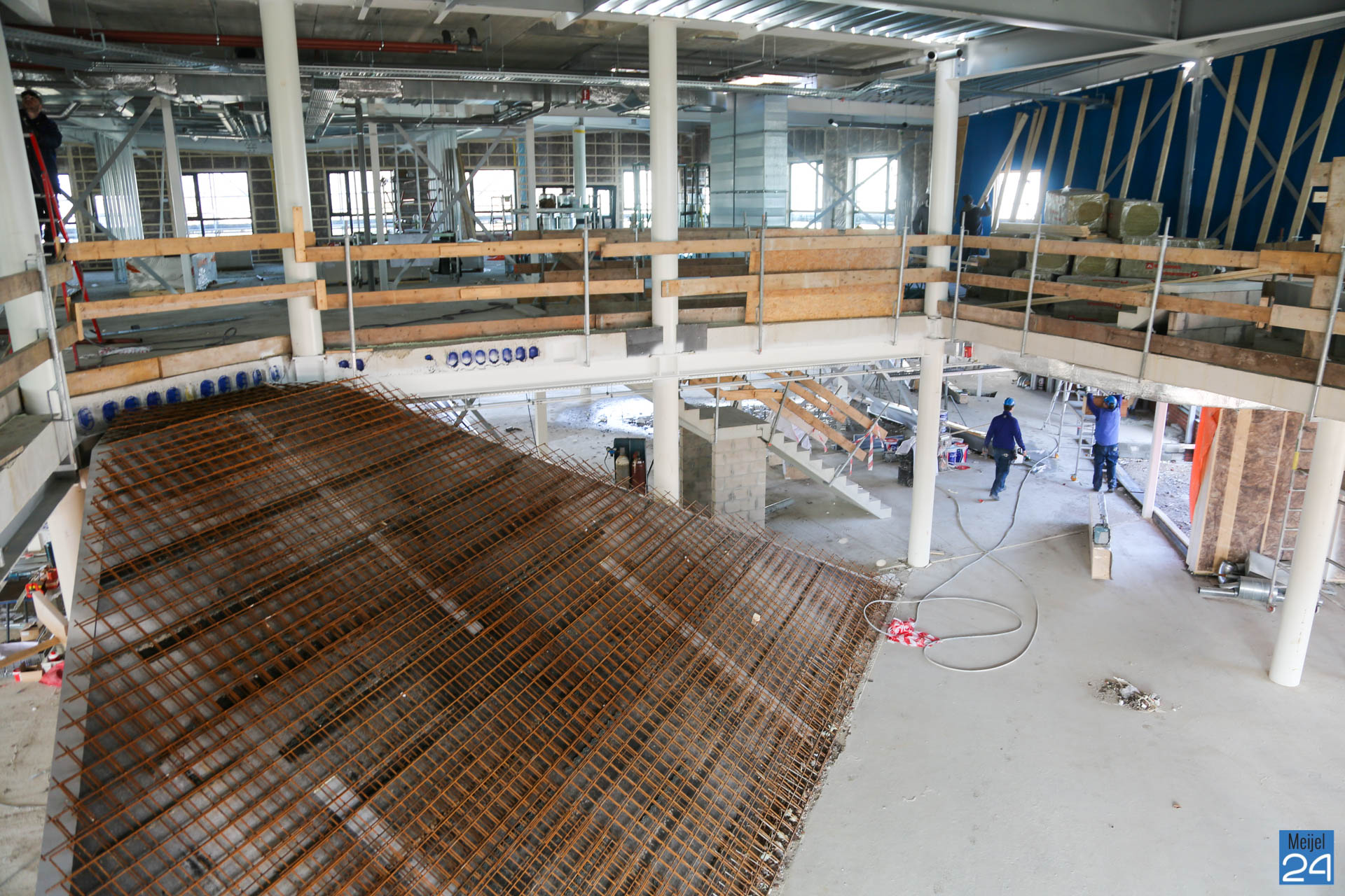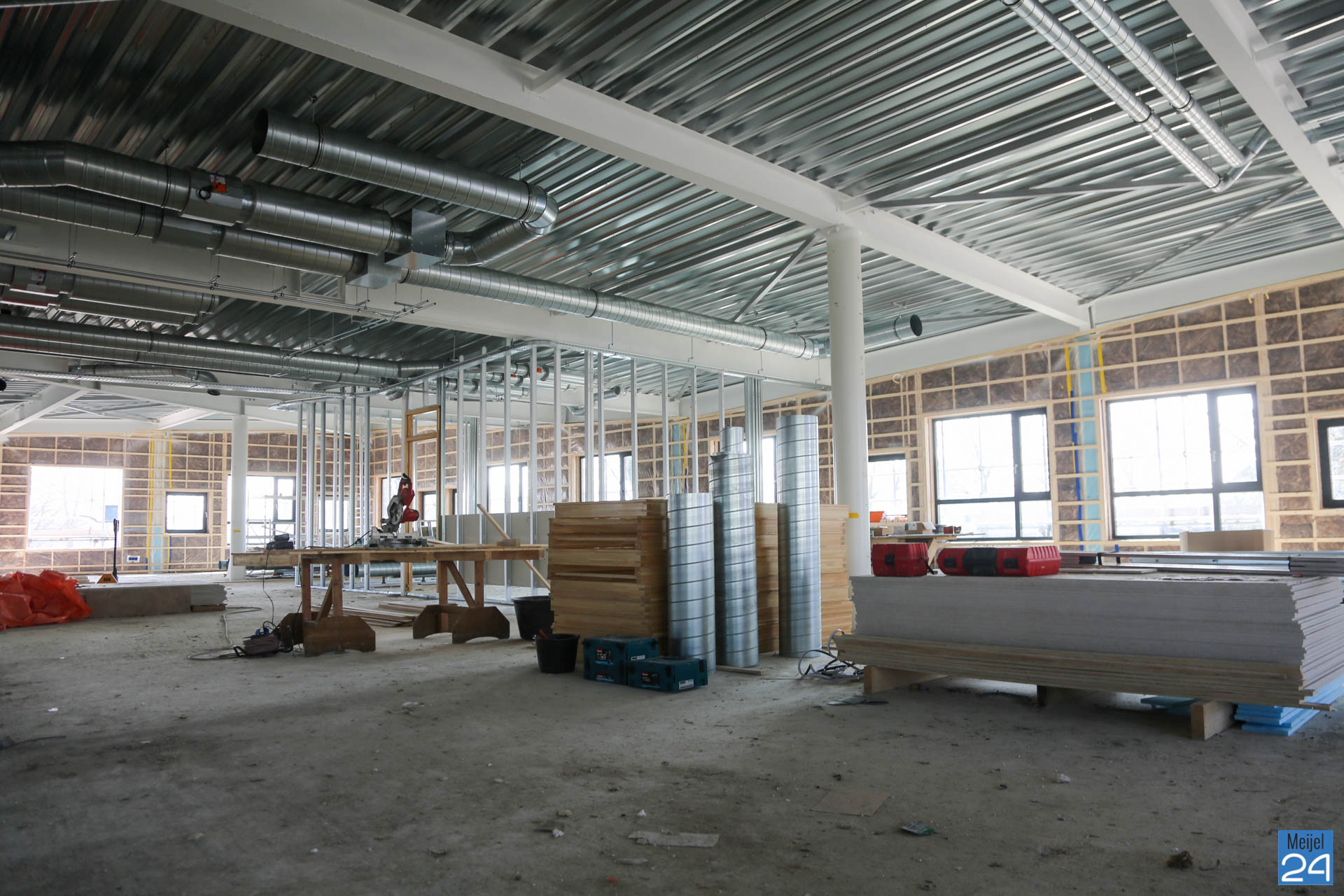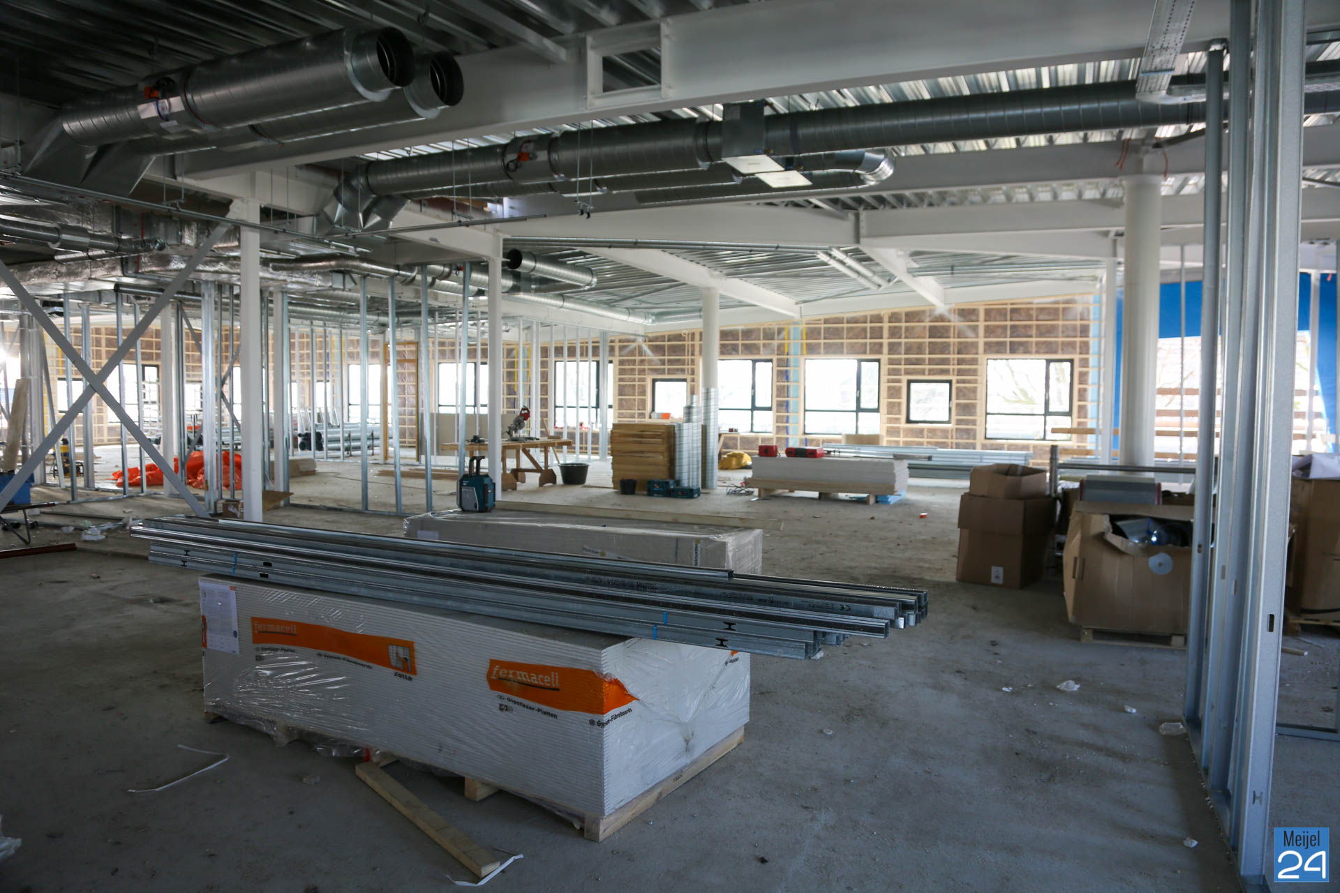 Samen met directeur Paul Engels maken we een wandeling over het bouwterrein. Volgens Paul ligt de bouw nog altijd op schema. ”We hopen dat de oplevering plaatsvindt aan het einde van dit schooljaar,” vertelt Engels. ”We kunnen dan in de zomervakantie aan de slag met de inrichting de verhuizing.”