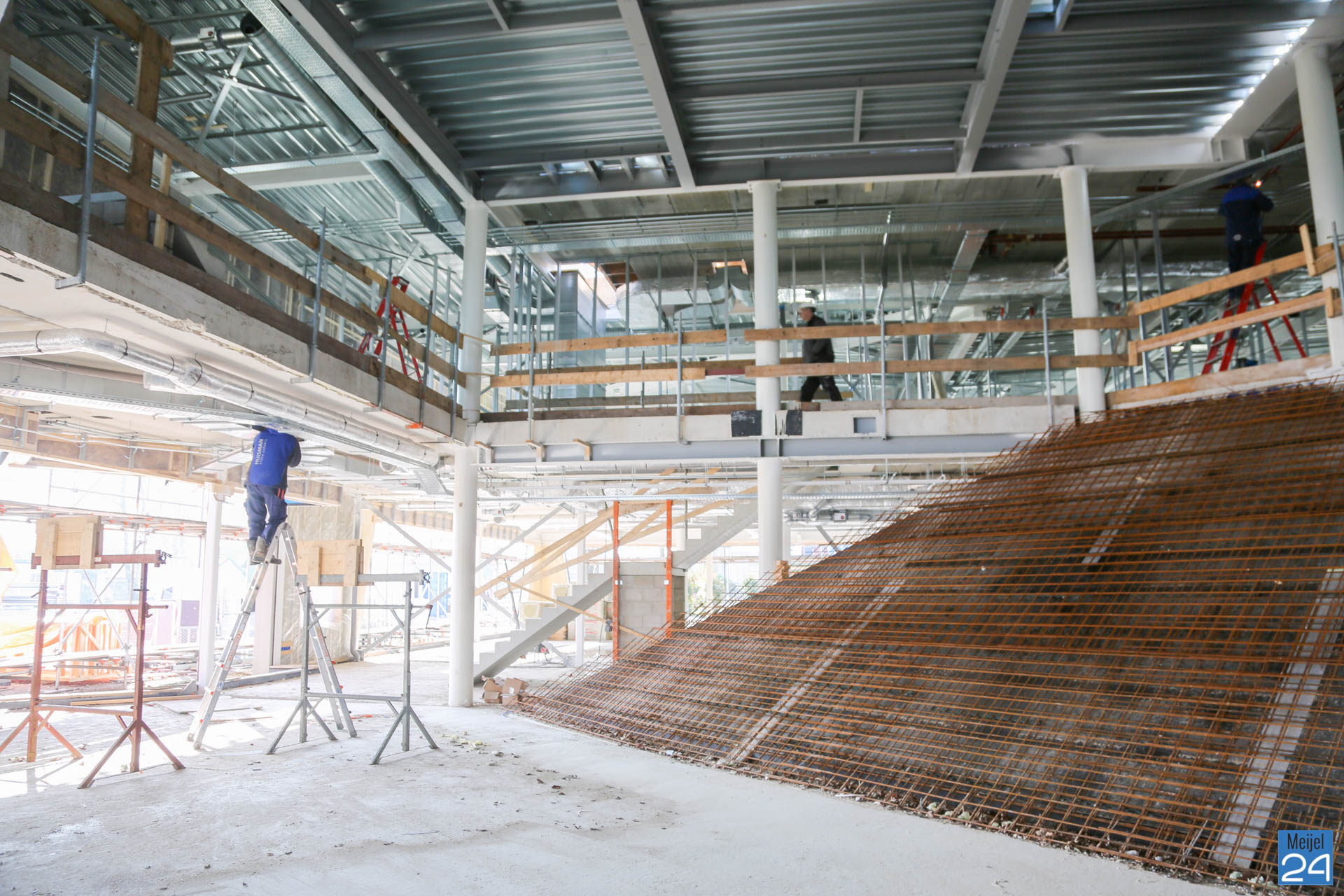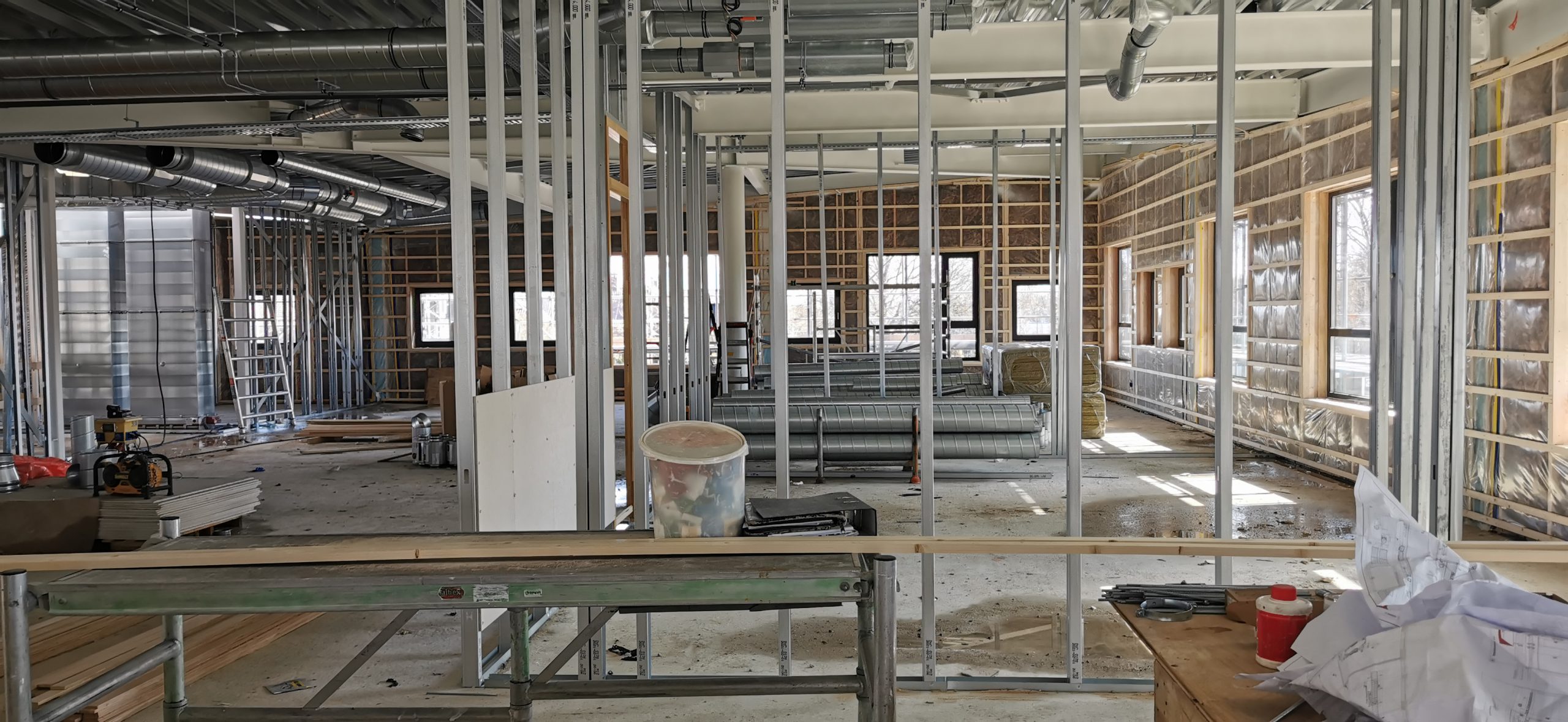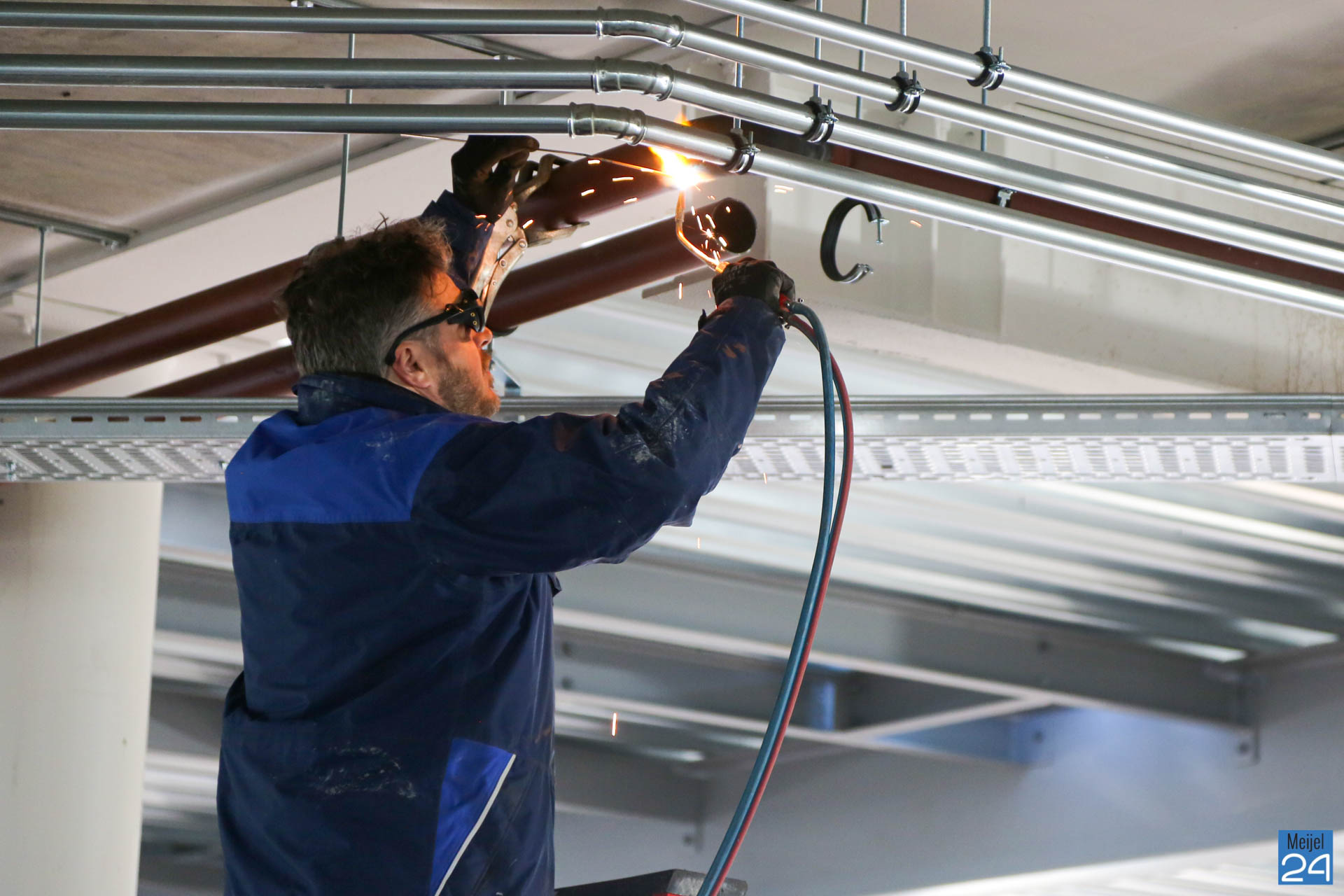 Samen met directeur Paul Engels maken we een wandeling over het bouwterrein. Volgens Paul ligt de bouw nog altijd op schema. ”We hopen dat de oplevering plaatsvindt aan het einde van dit schooljaar,” vertelt Engels. ”We kunnen dan in de zomervakantie aan de slag met de inrichting de verhuizing.”
