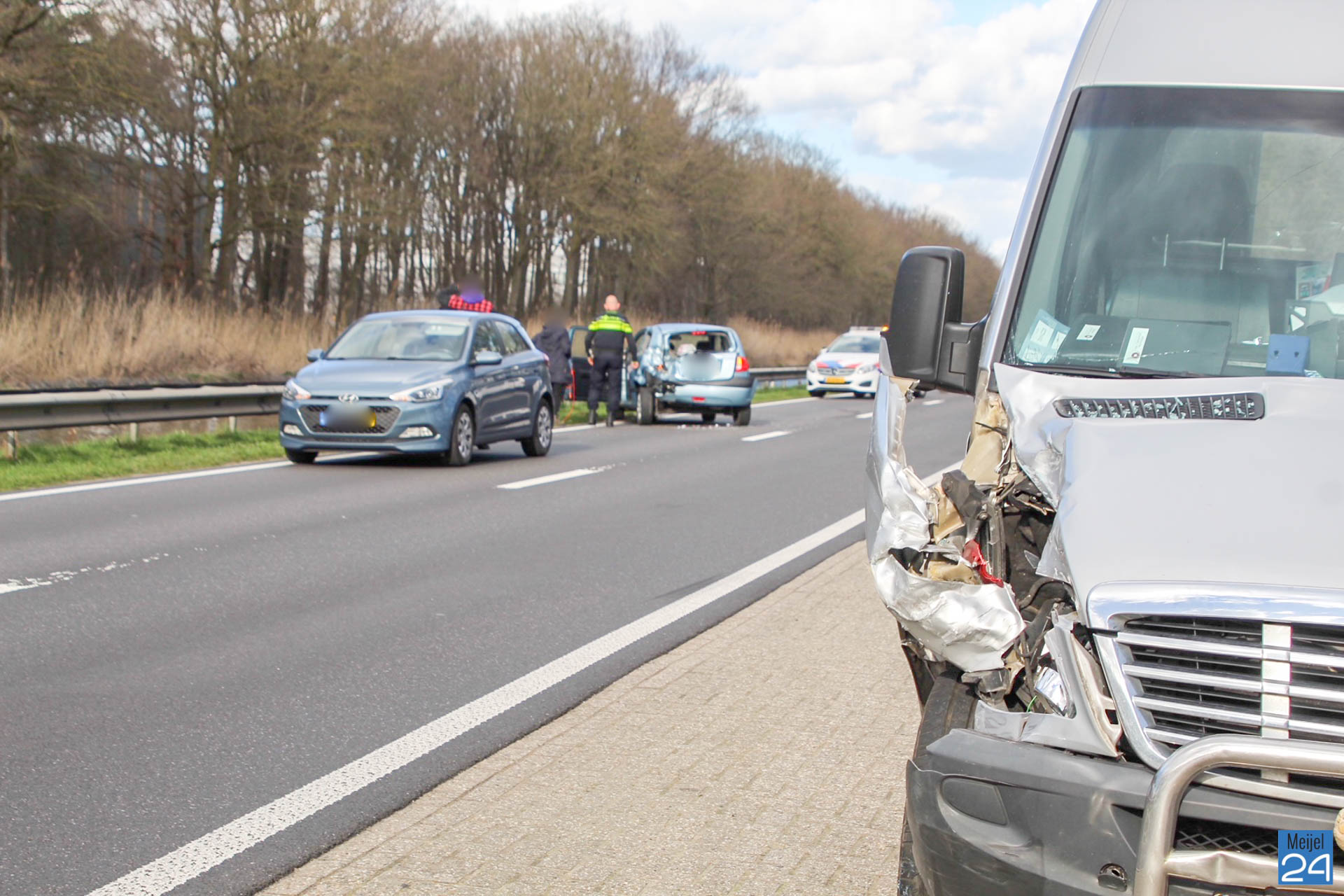 Omstanders boden direct hulp en regelden het verkeer. Niemand raakte gewond. Beide voertuigen raakte flink beschadigd.