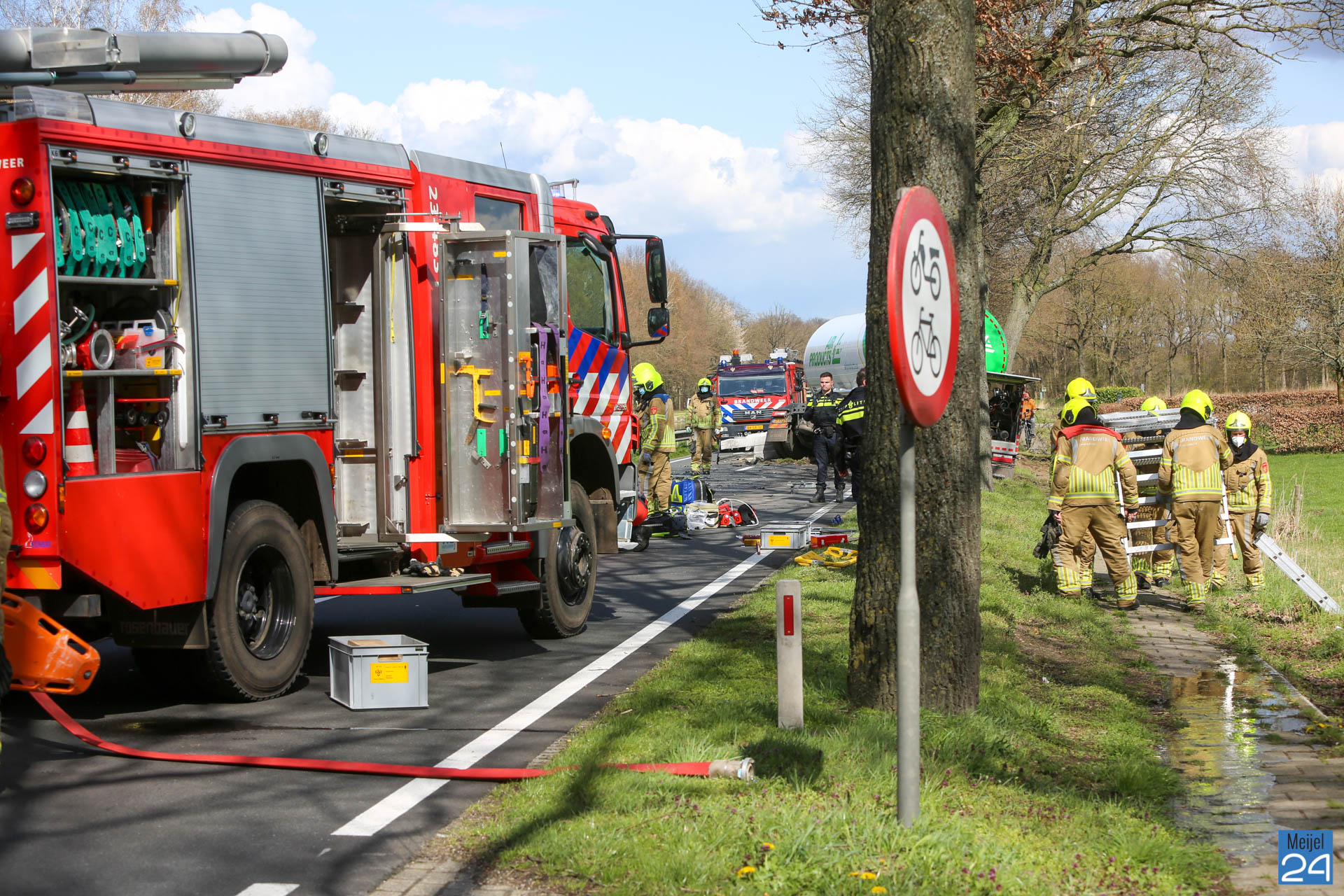 De Kanaalweg is afgesloten tussen de rotonde bij Meijel en de rotonde bij Beringe.