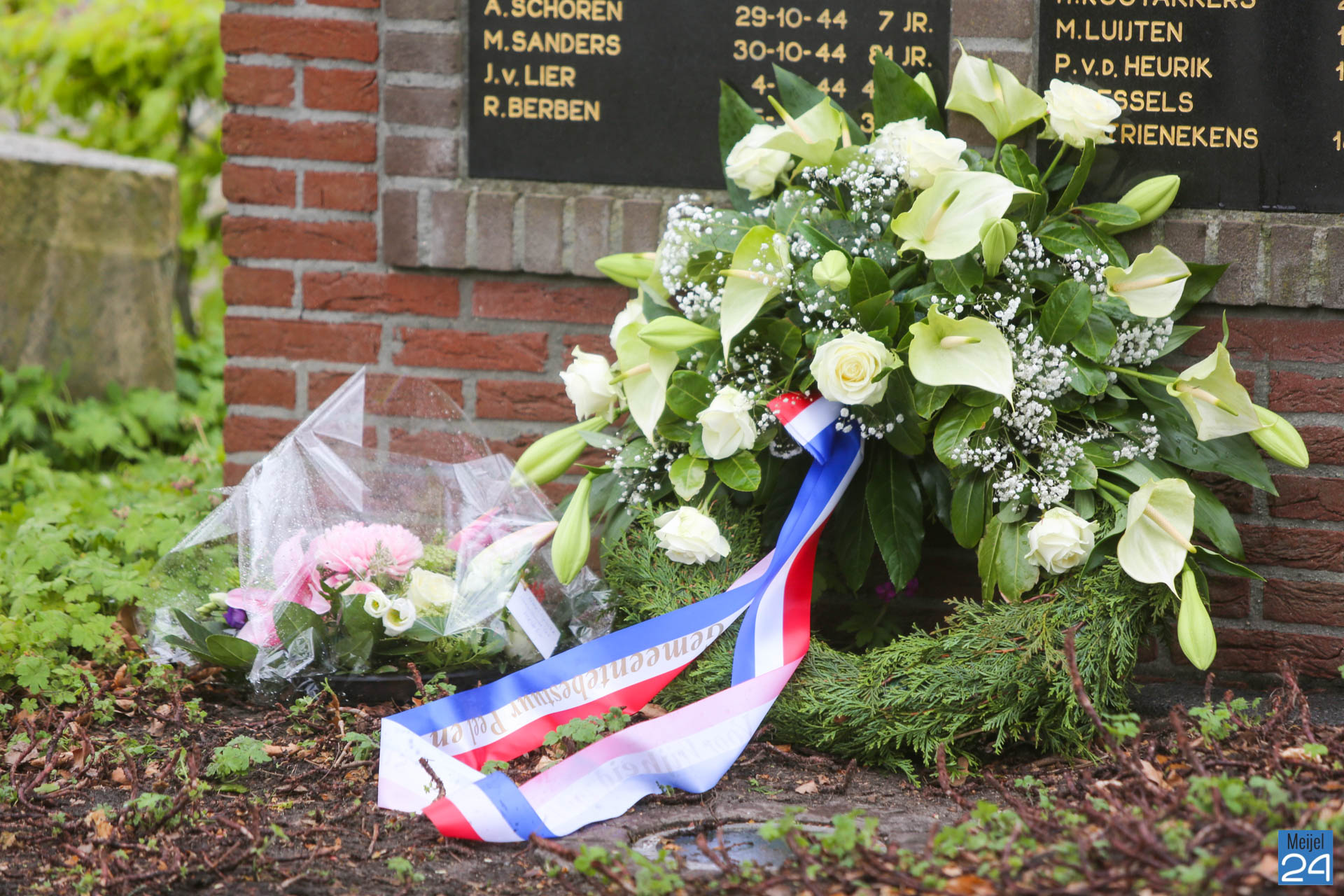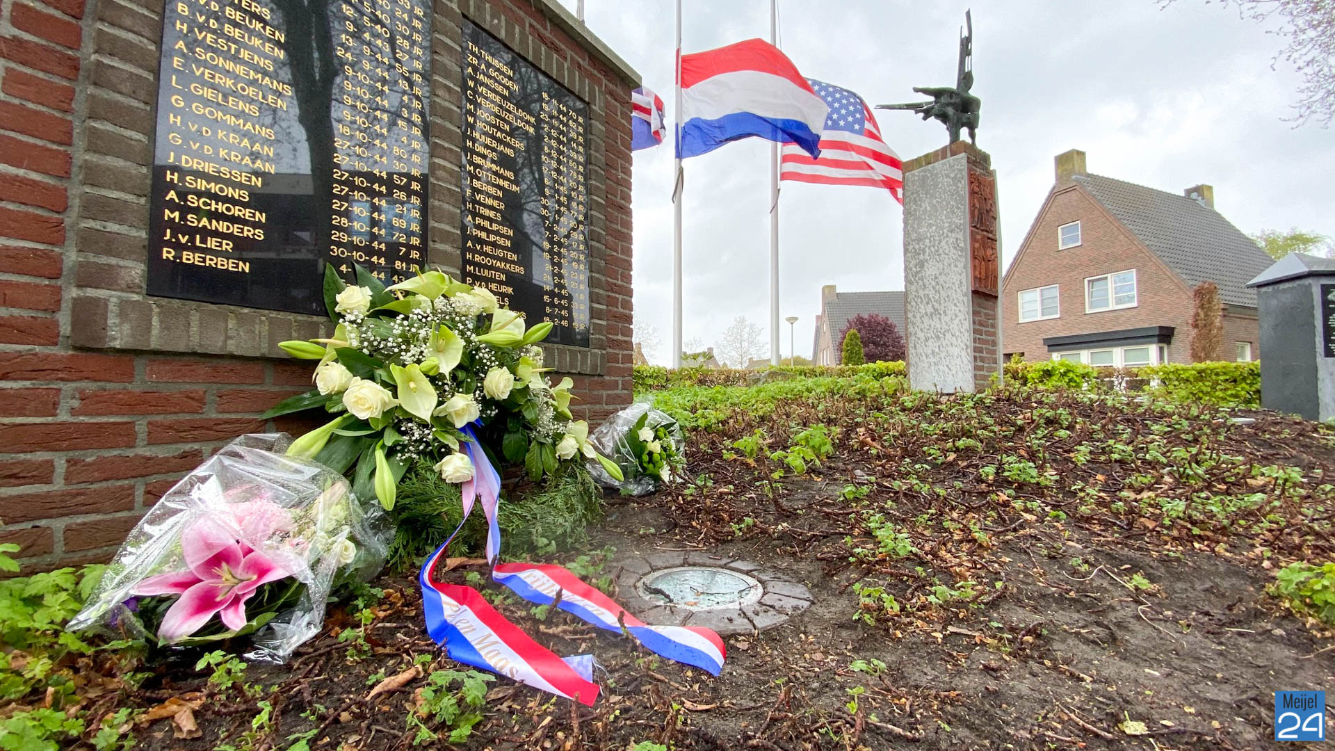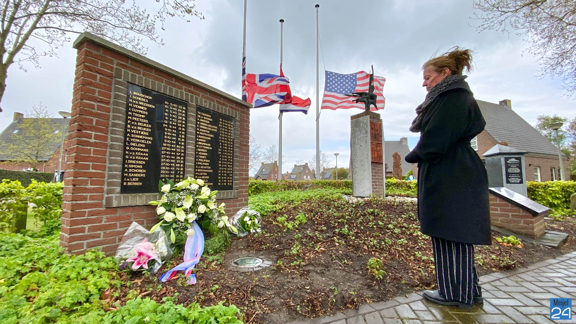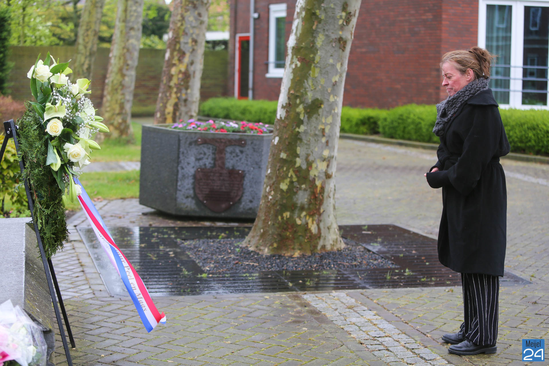Dinsdagmorgen heeft wethouder Anget Mestrom een bloemenkrans gelegd bij het Oorlogs- en Vredesmonument aan het ’t Raodhusj in Meijel.