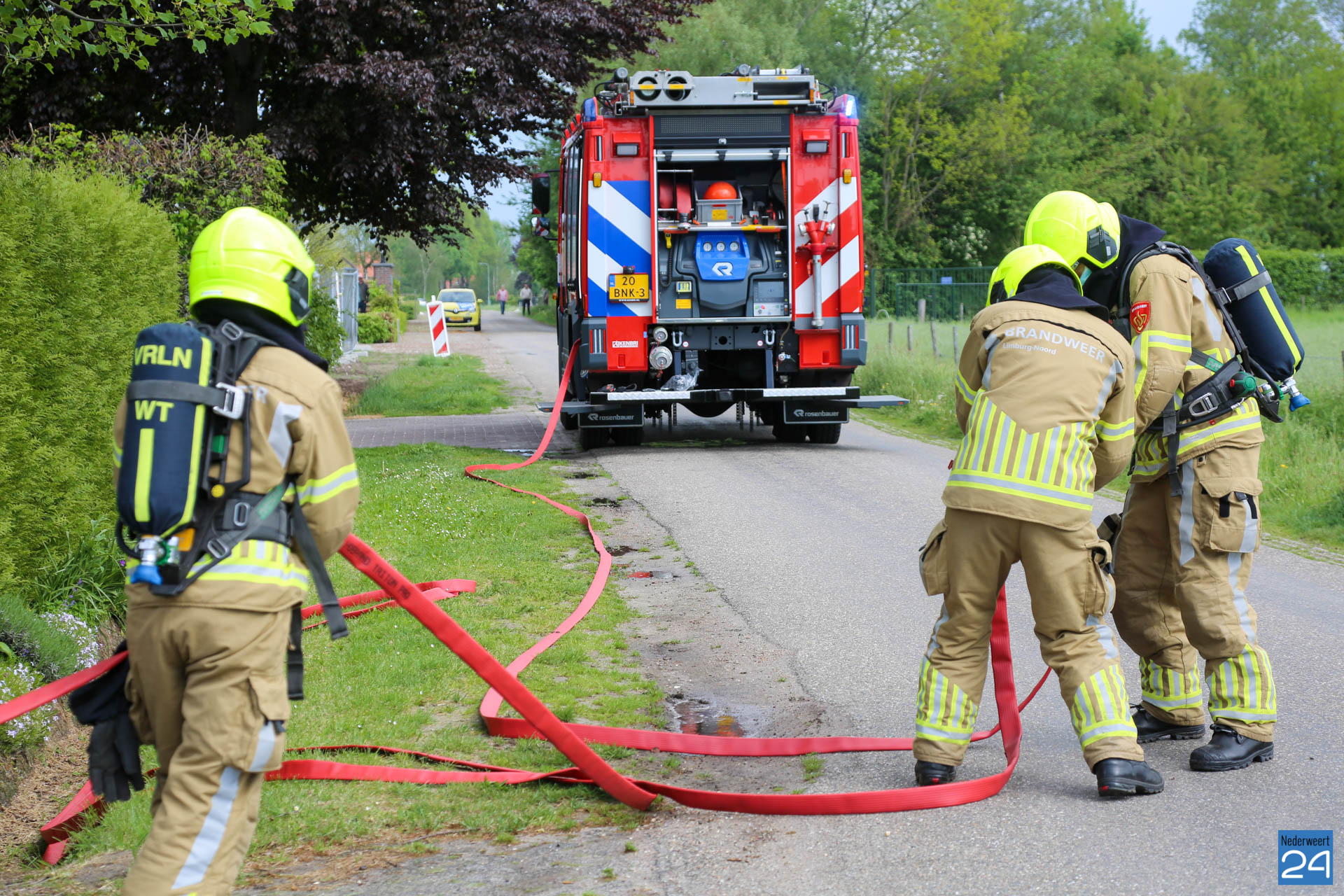 De brandweer van Nederweert kwam met een blusvoertuig en een waterwagen met spoed ter plaatse. Zij hadden het vuur snel onder controle. De oorzaak van de brand is onbekend.