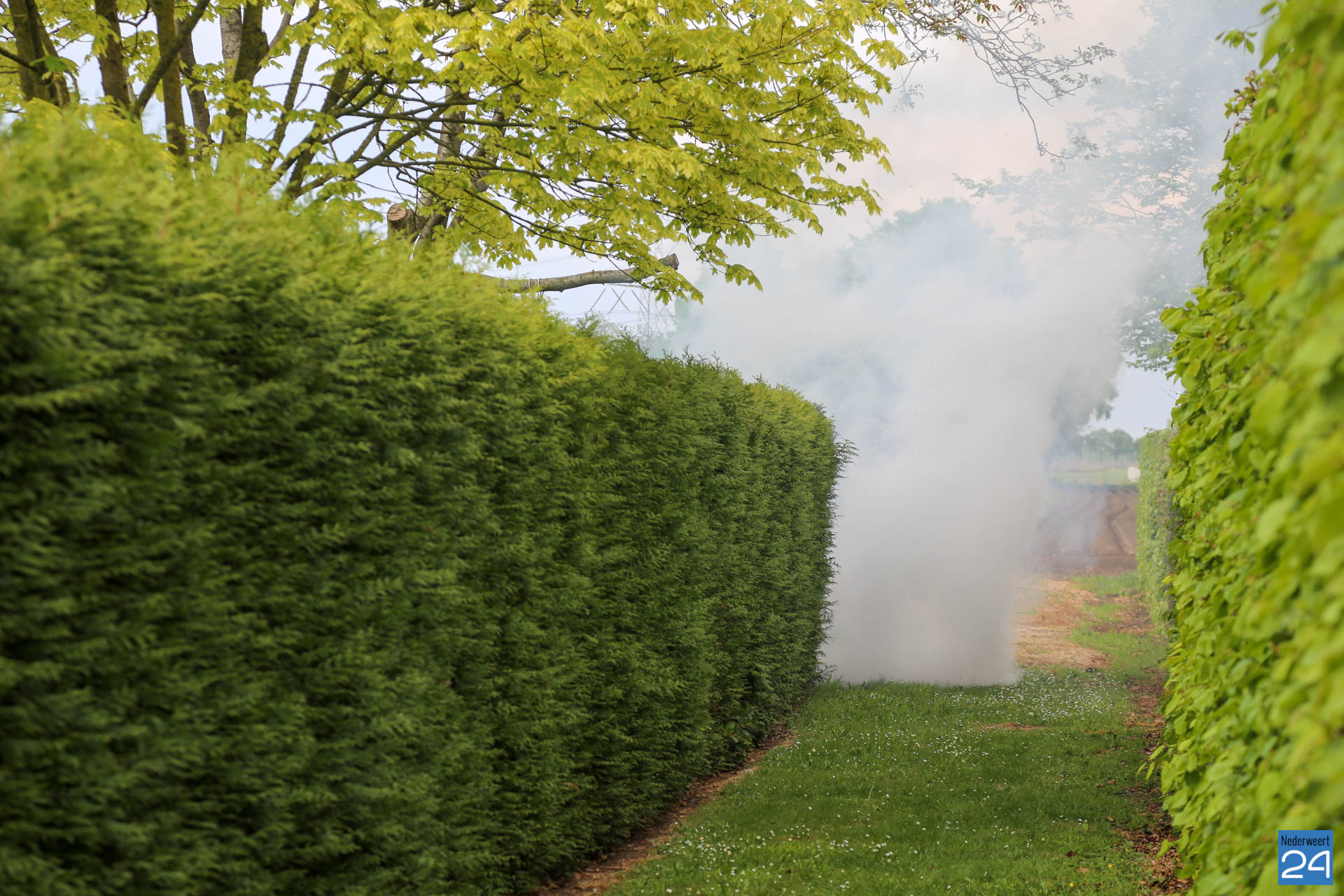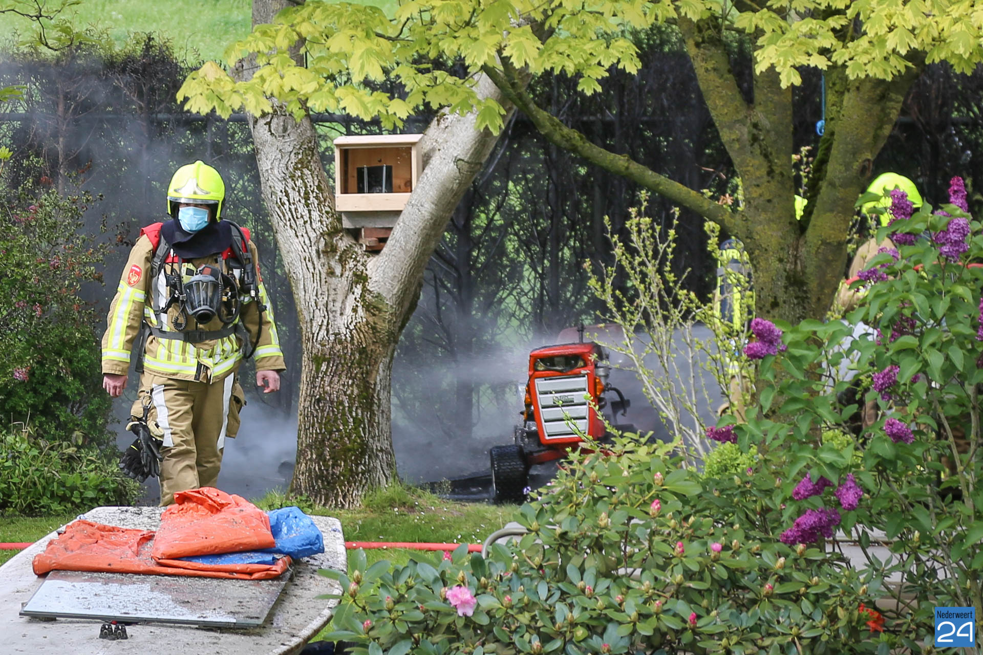 Vrijdagmiddag heeft een oplettende voorbijganger een brand opgemerkt in een achtertuin aan de Schinkelsweg in Ospel.