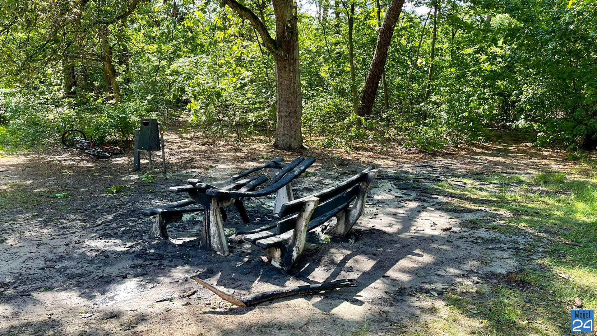 Maandagmiddag is er een picknickbankje in brand gestoken in het Startebos, het bosgebied achter het Paradijs in Meijel.