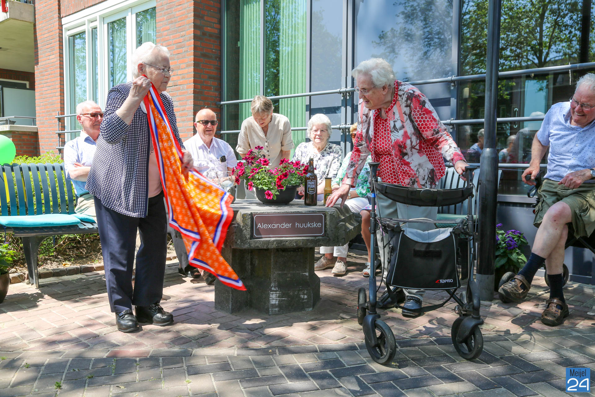 Een bijzondere dag was het dinsdag voor de bewoners van Alexanderhof in Meijel. Onlangs heeft de gemeente Peel en Maas een buitenzitje geplaatst. Woningvereniging Antaris heeft in het gebouw een ruimte gerealiseerd waar de bewoners gezellig samen kunnen komen. De namen van het buitenzitje en de binnenruimte werden dinsdagmiddag onthuld.