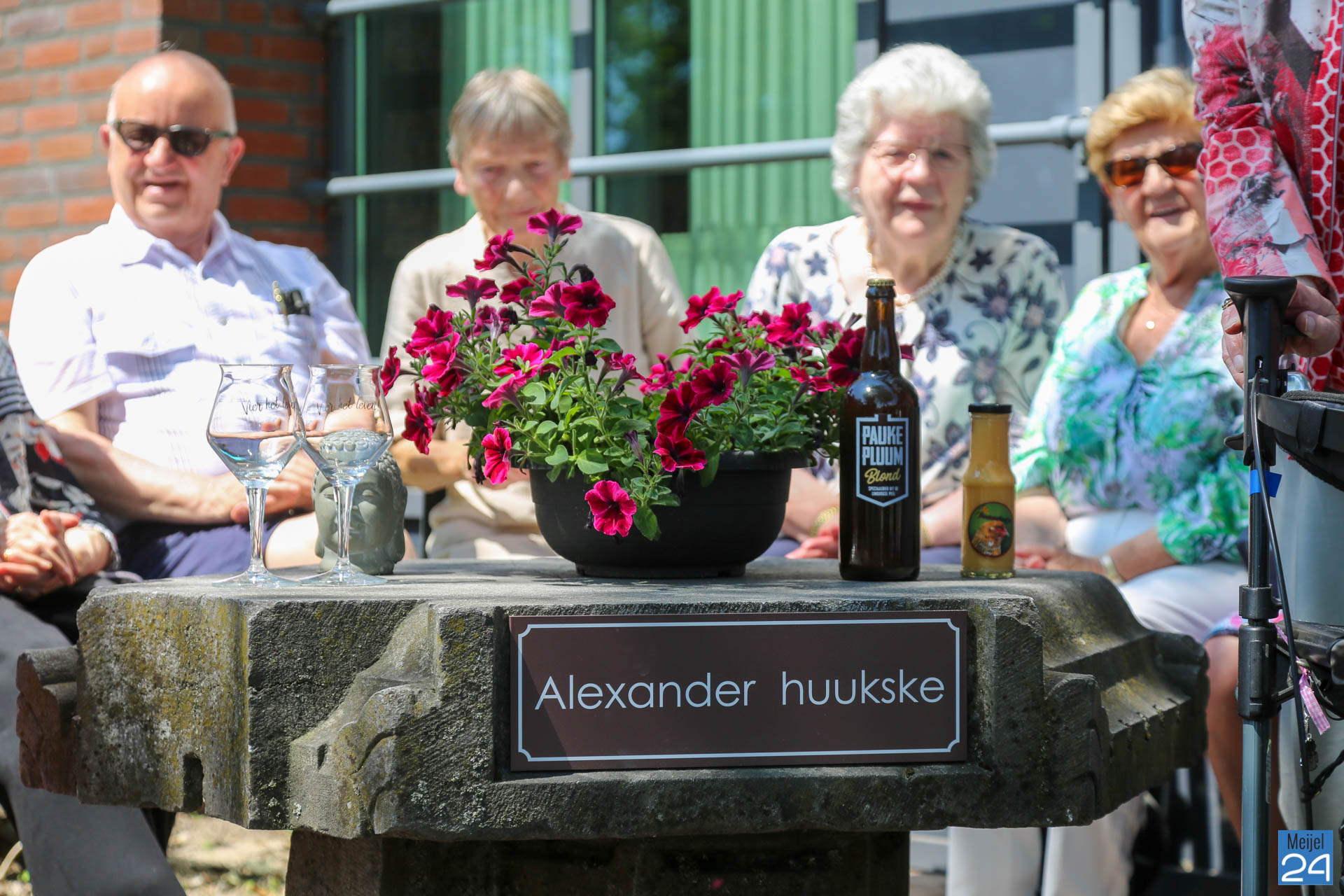 Onder een stralende zon werd bekend dat het nieuwe buitenzitje ‘Alexander Huukske’ gaat heten. Het vertrek in het gebouw krijgt de naam ‘De Goej-Kamer’. De gemeente was meteen positief met de aanvraag van het zitje. Binnen enkele weken werden twee bankjes en een betonnen tafel geplaatst. De tafel komt uit de oude kathedraal van Meijel die in de oorlog werd verwoest. Enkele stukken van het gebouw waren al terug te vinden bij het nabijgelegen herdenkingsmonument.