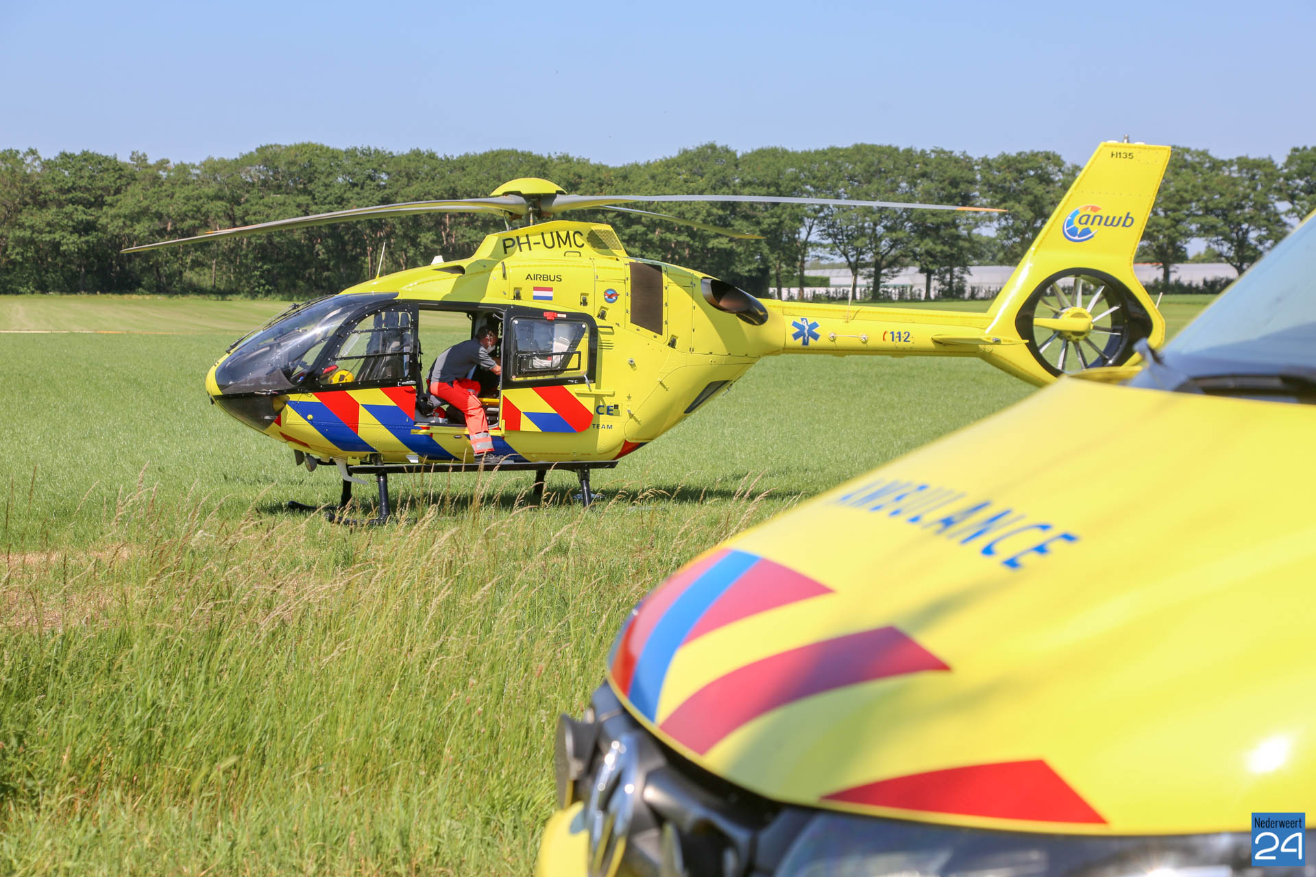 De hulpdiensten kwamen met meerdere ambulances, politievoertuigen en een traumahelikopter ter plaatse voor medische hulpverlening.