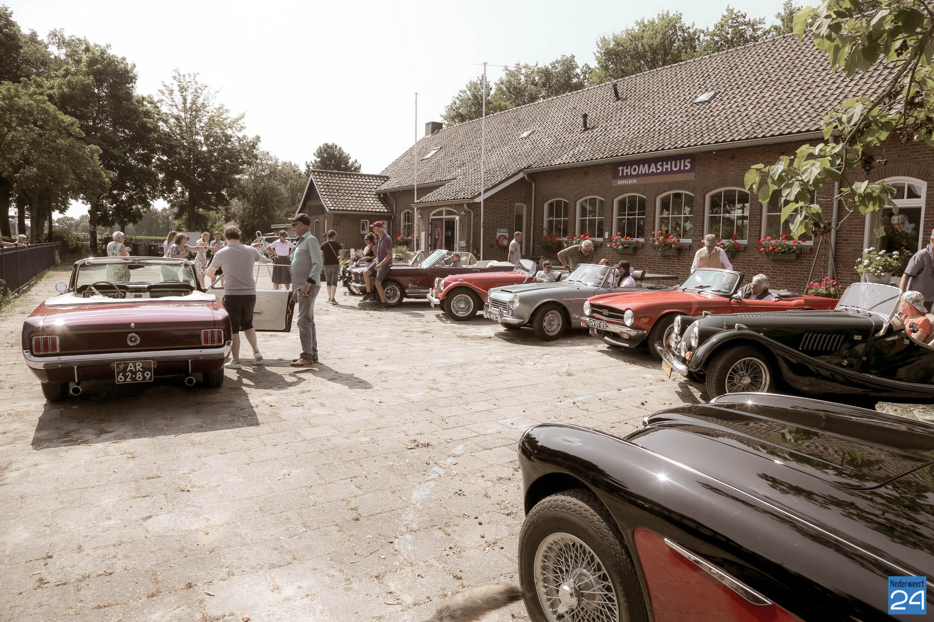 Een flink aantal oldtimer cabrio’s verzamelden in de ochtend op het plein vóór het Thomashuis. De bewoners dronken met de chauffeurs een kopje koffie en aten een heerlijk stuk vlaai. Hierna ging de toertocht van start.