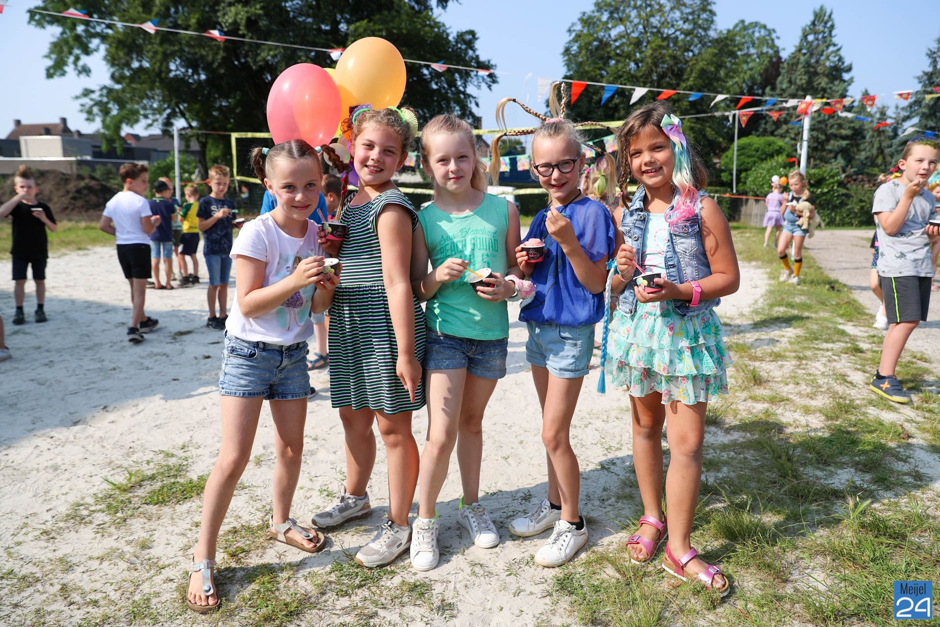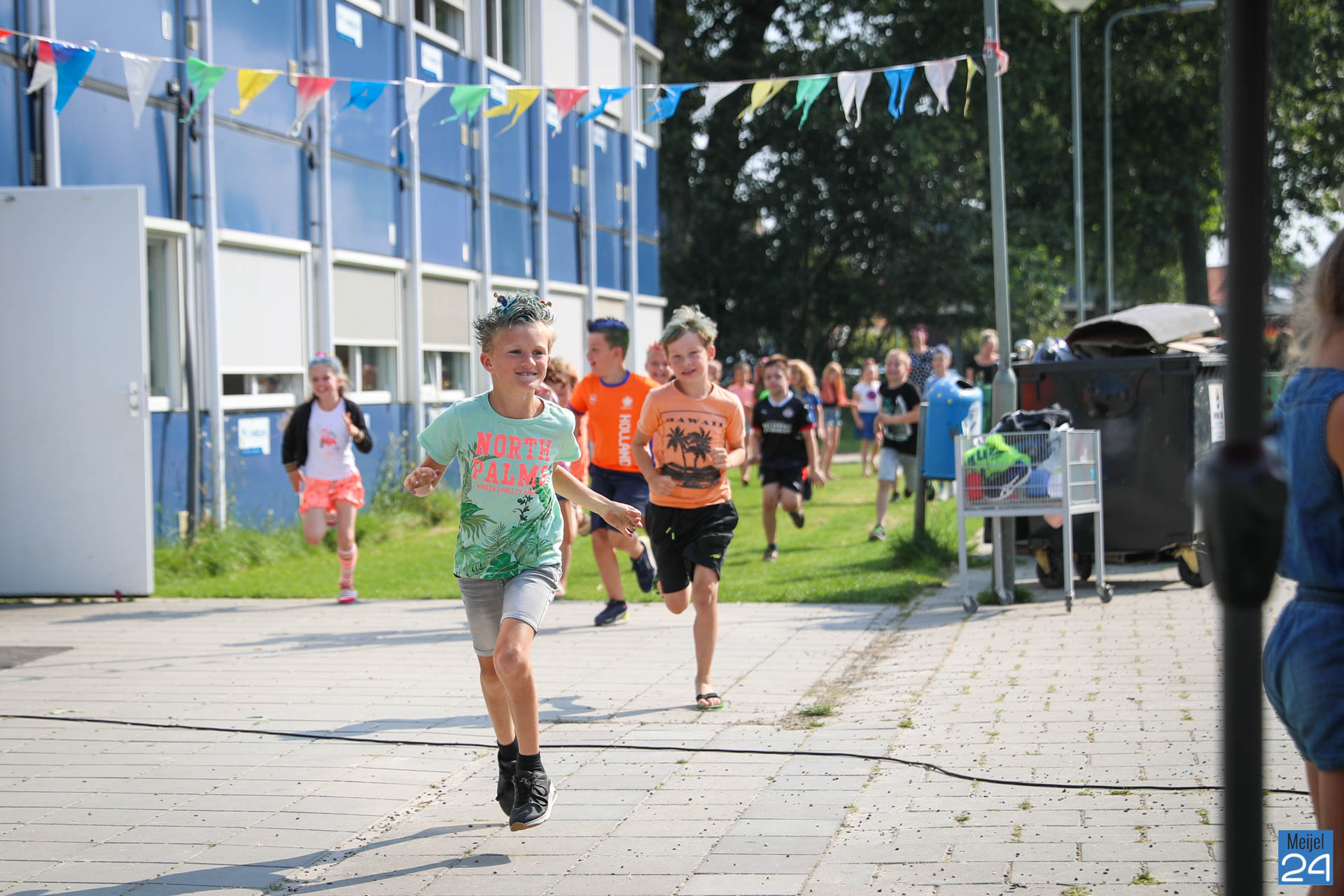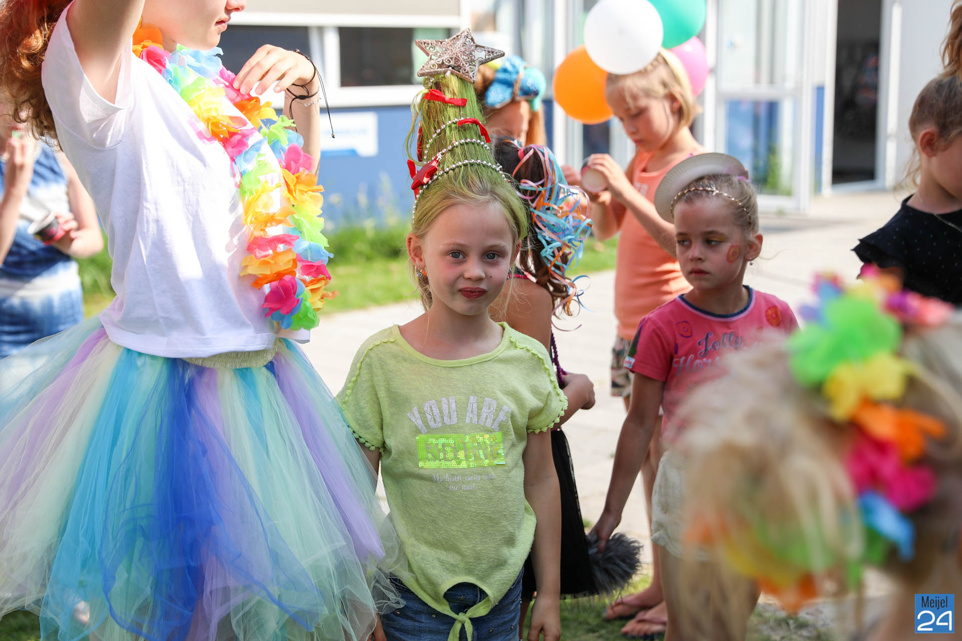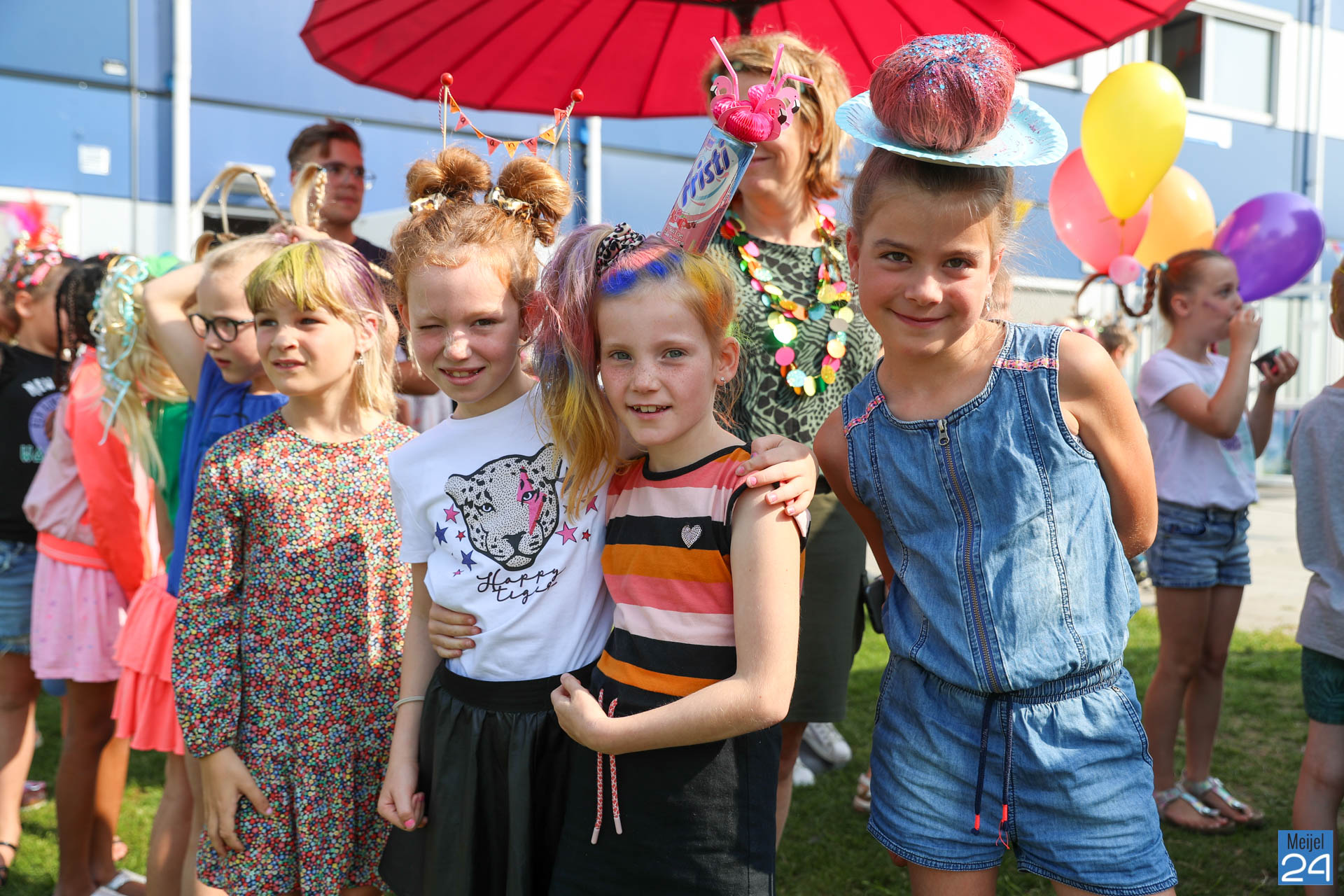 Een meisje met een colaflesje in het haar, jongens met felgekleurde plukken, het is allemaal te zien op de allerlaatste schooldag van de leerlingen van Den Doelhof in Meijel.