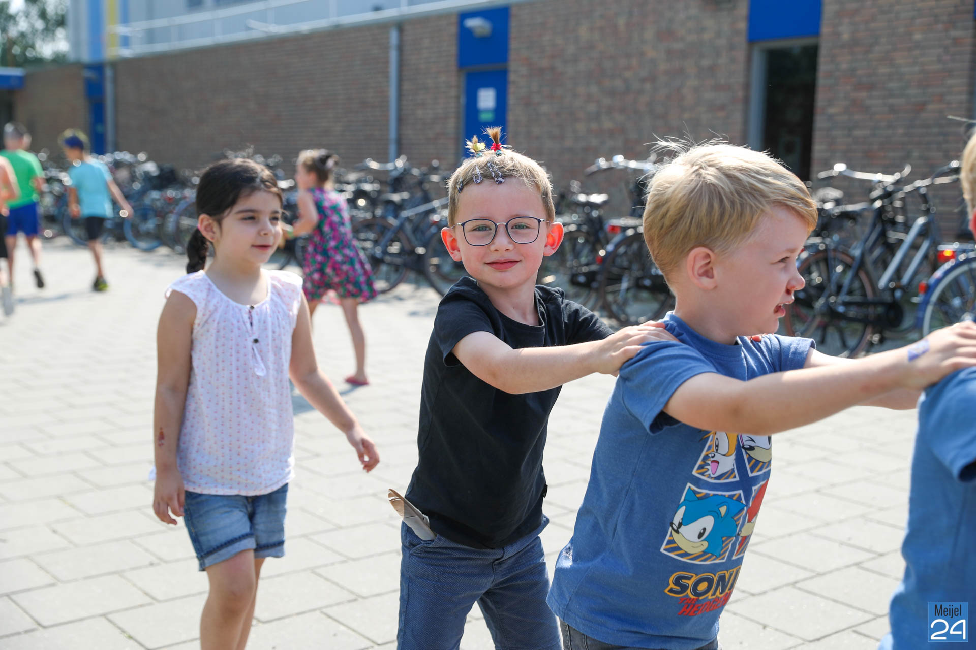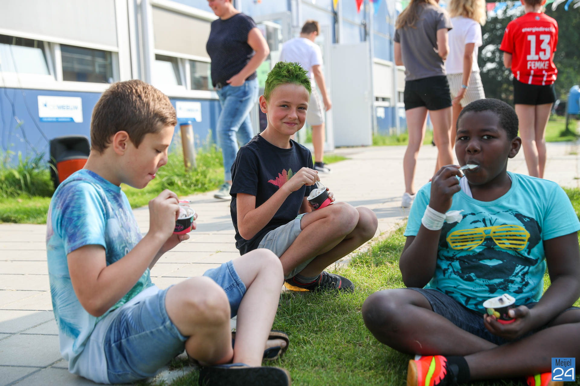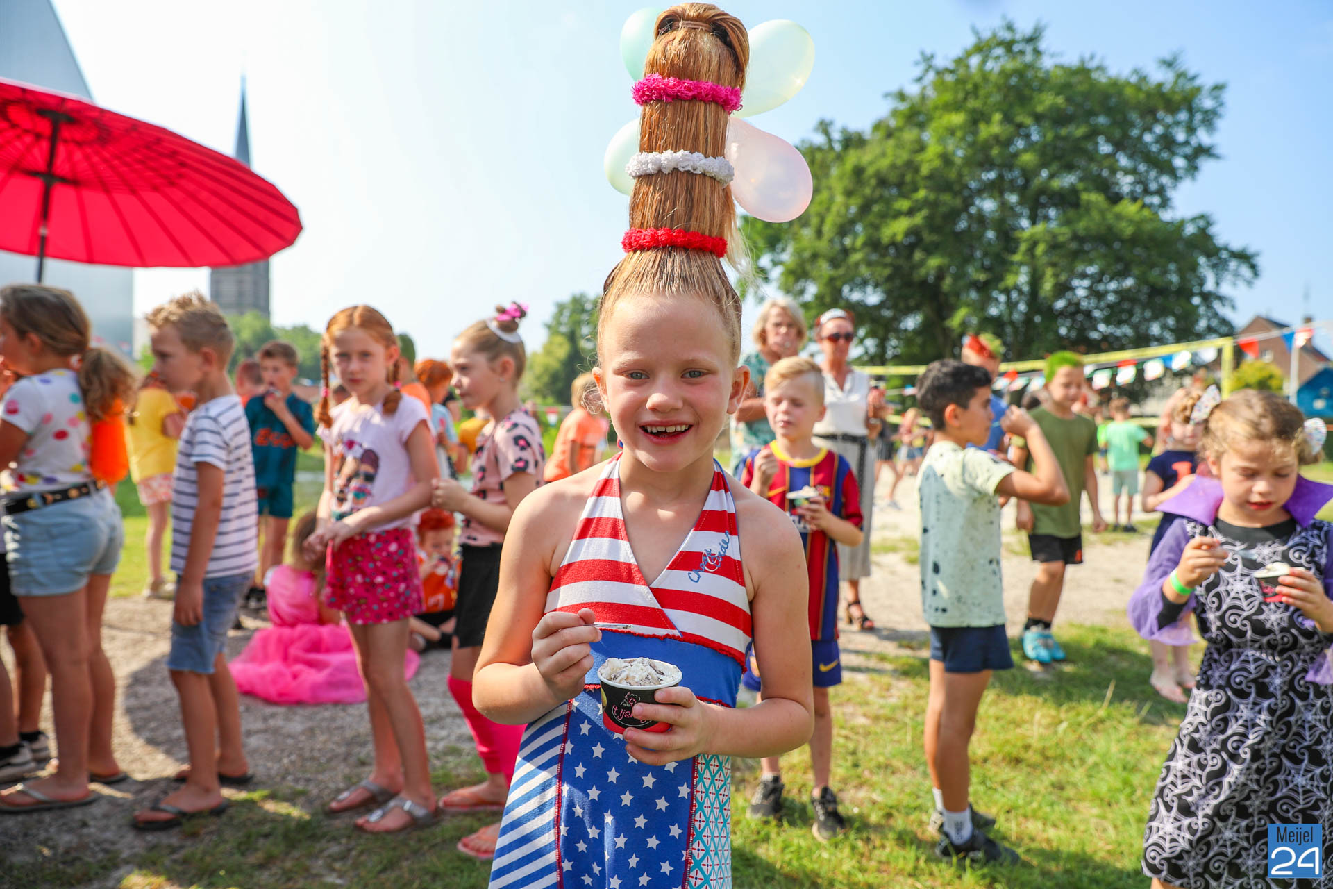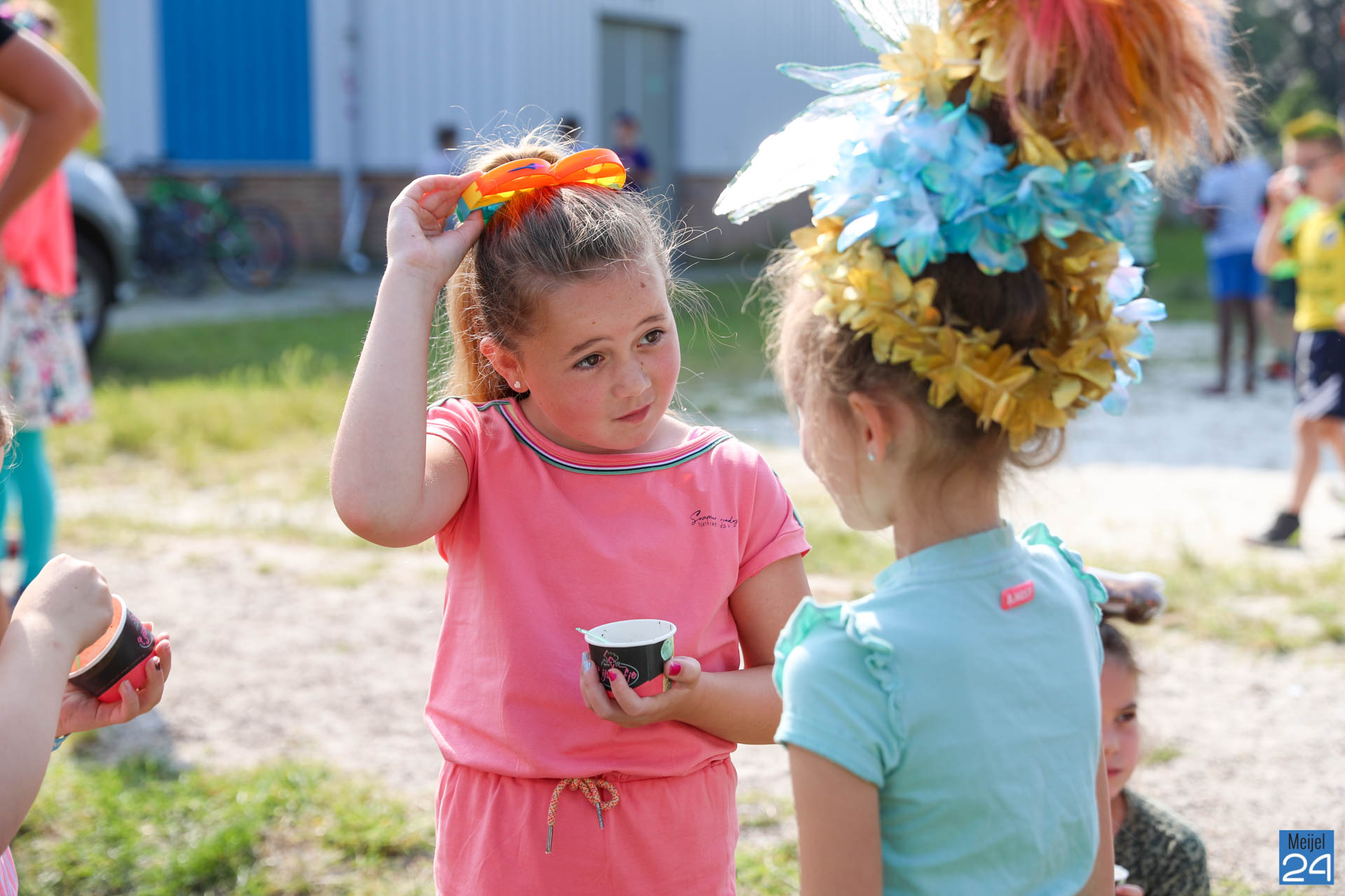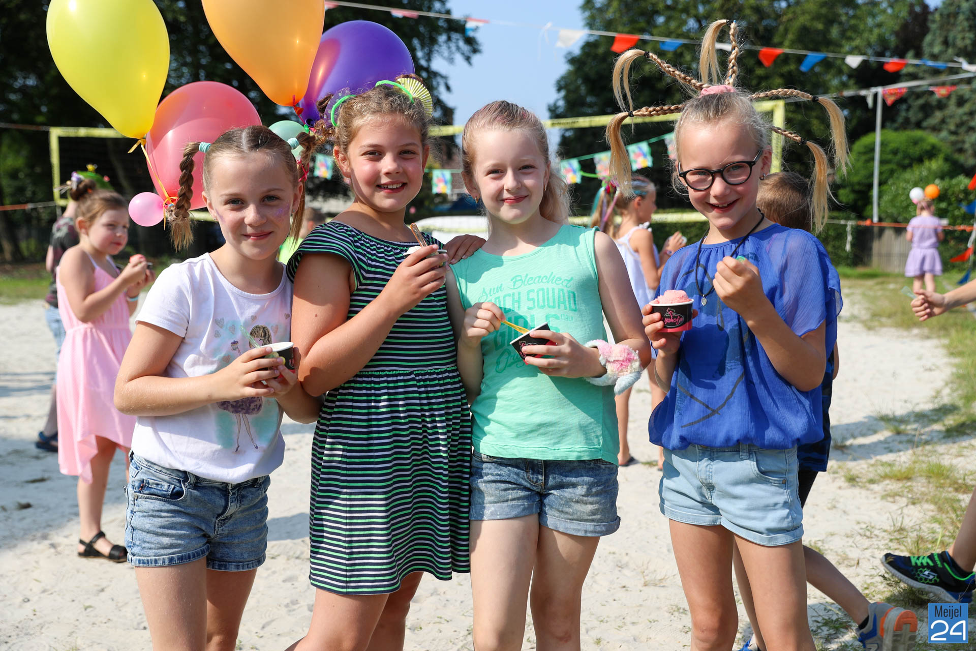 Een meisje met een colaflesje in het haar, jongens met felgekleurde plukken, het is allemaal te zien op de allerlaatste schooldag van de leerlingen van Den Doelhof in Meijel.