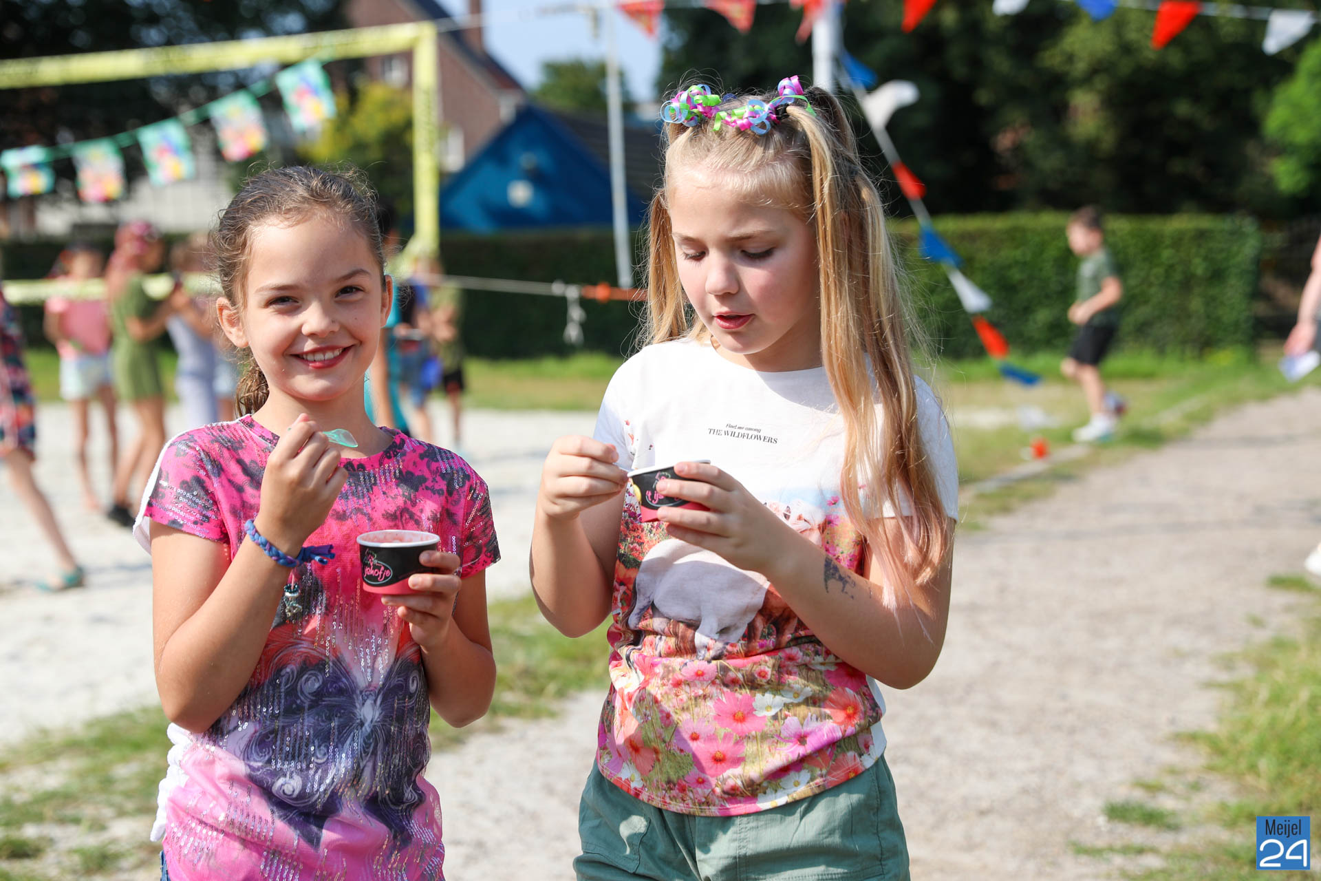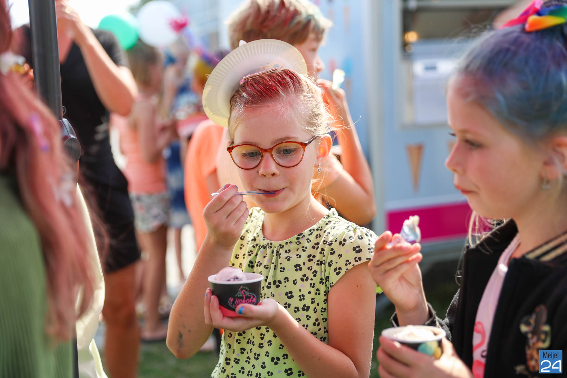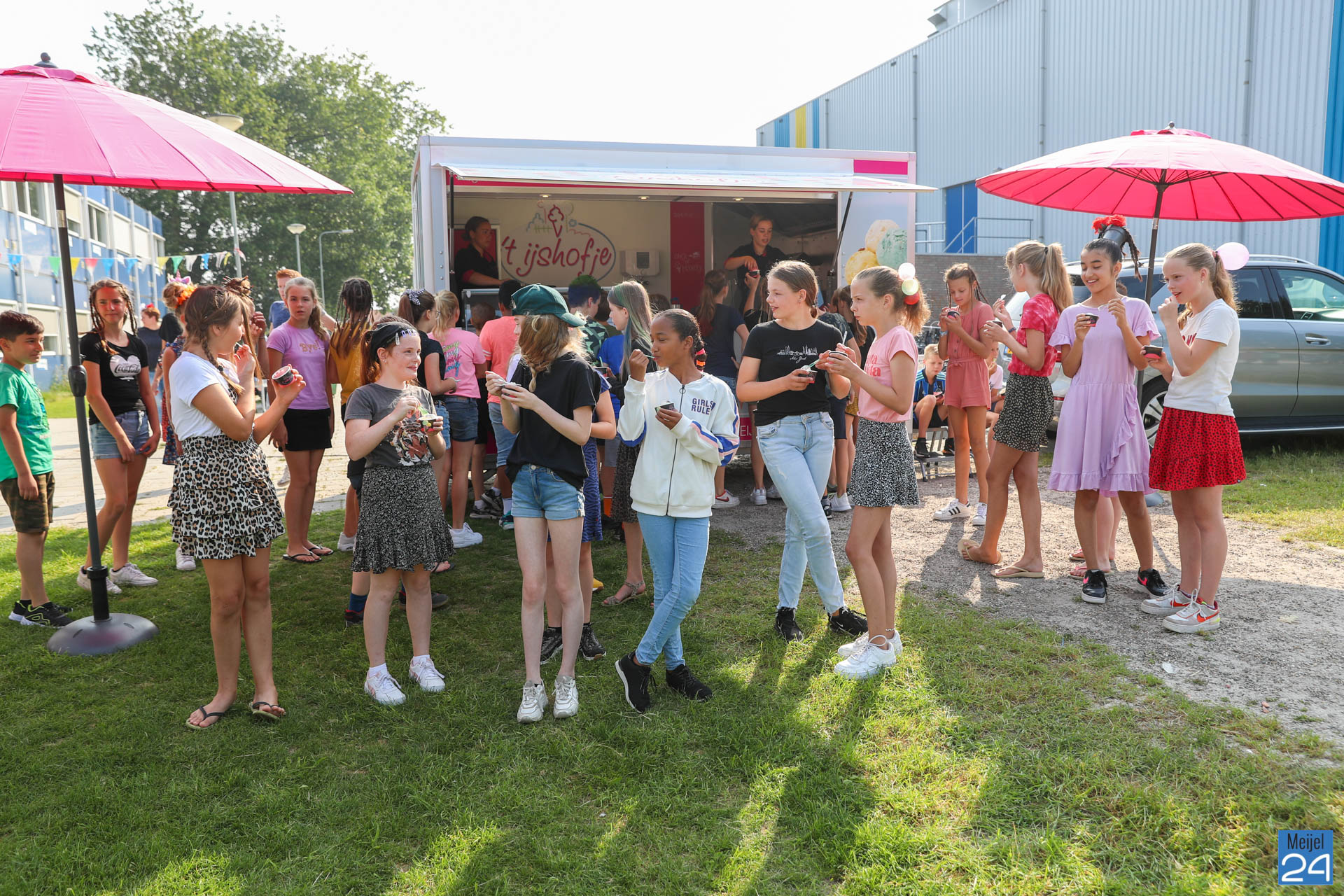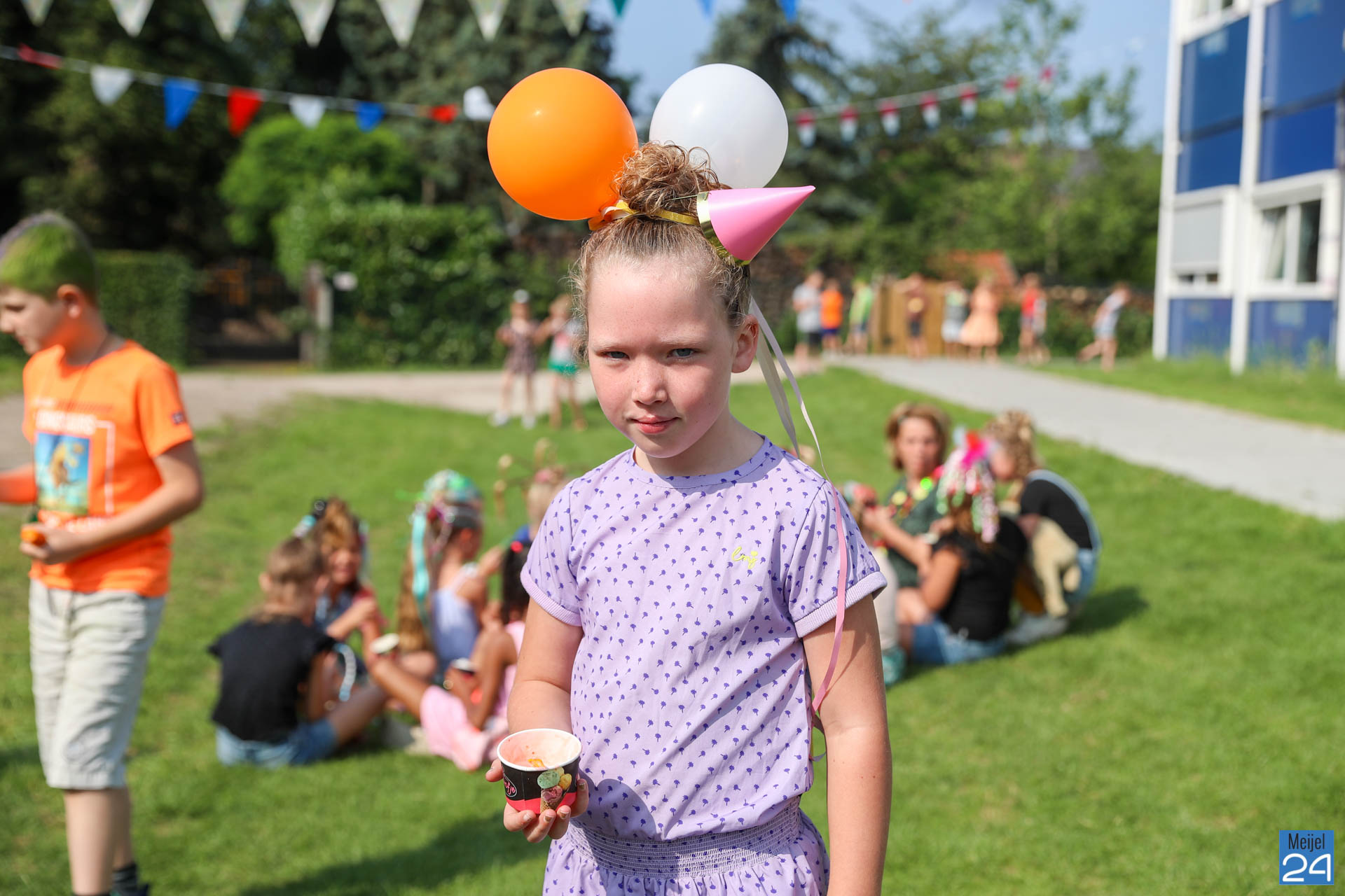 Een meisje met een colaflesje in het haar, jongens met felgekleurde plukken, het is allemaal te zien op de allerlaatste schooldag van de leerlingen van Den Doelhof in Meijel.