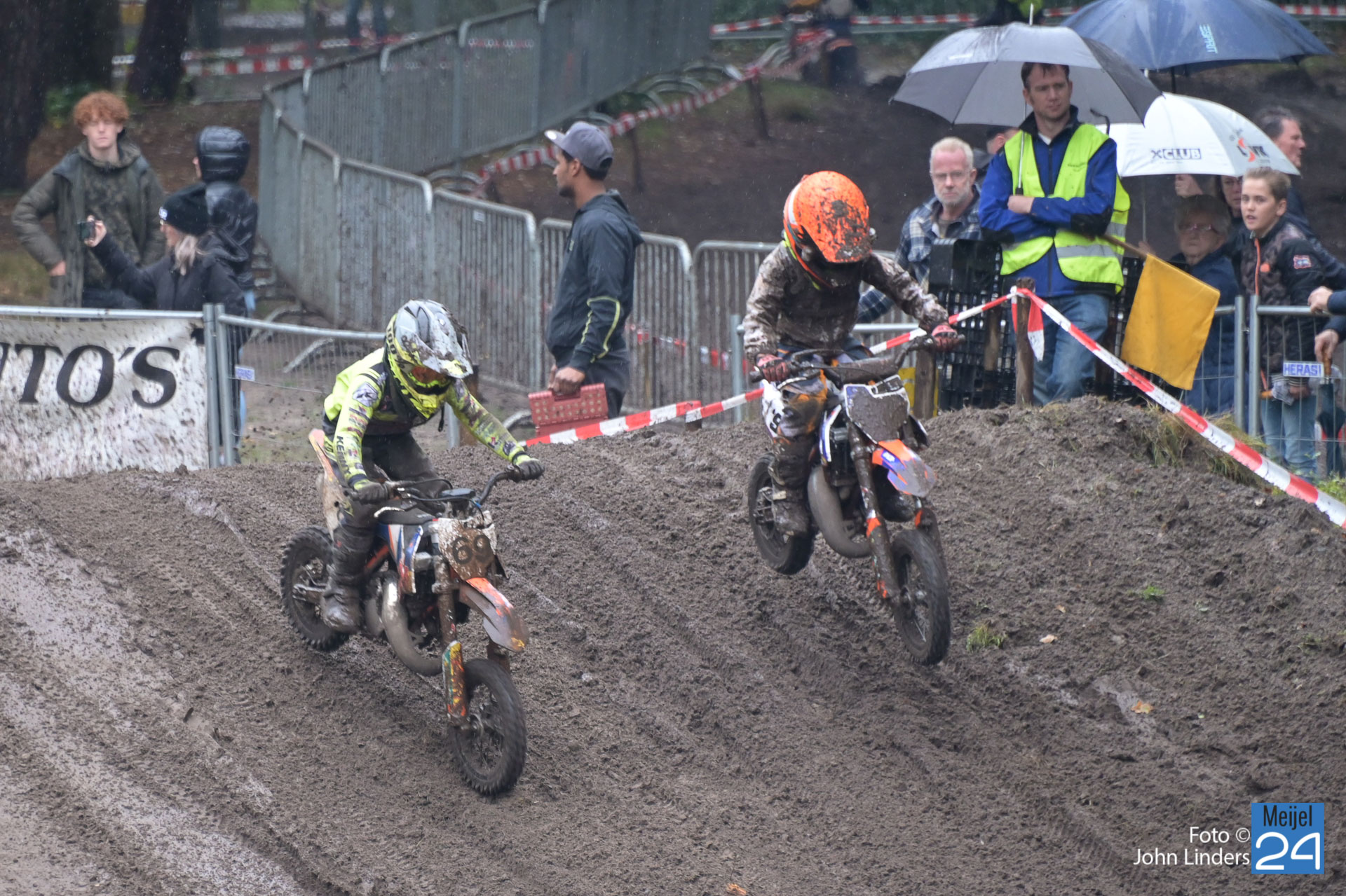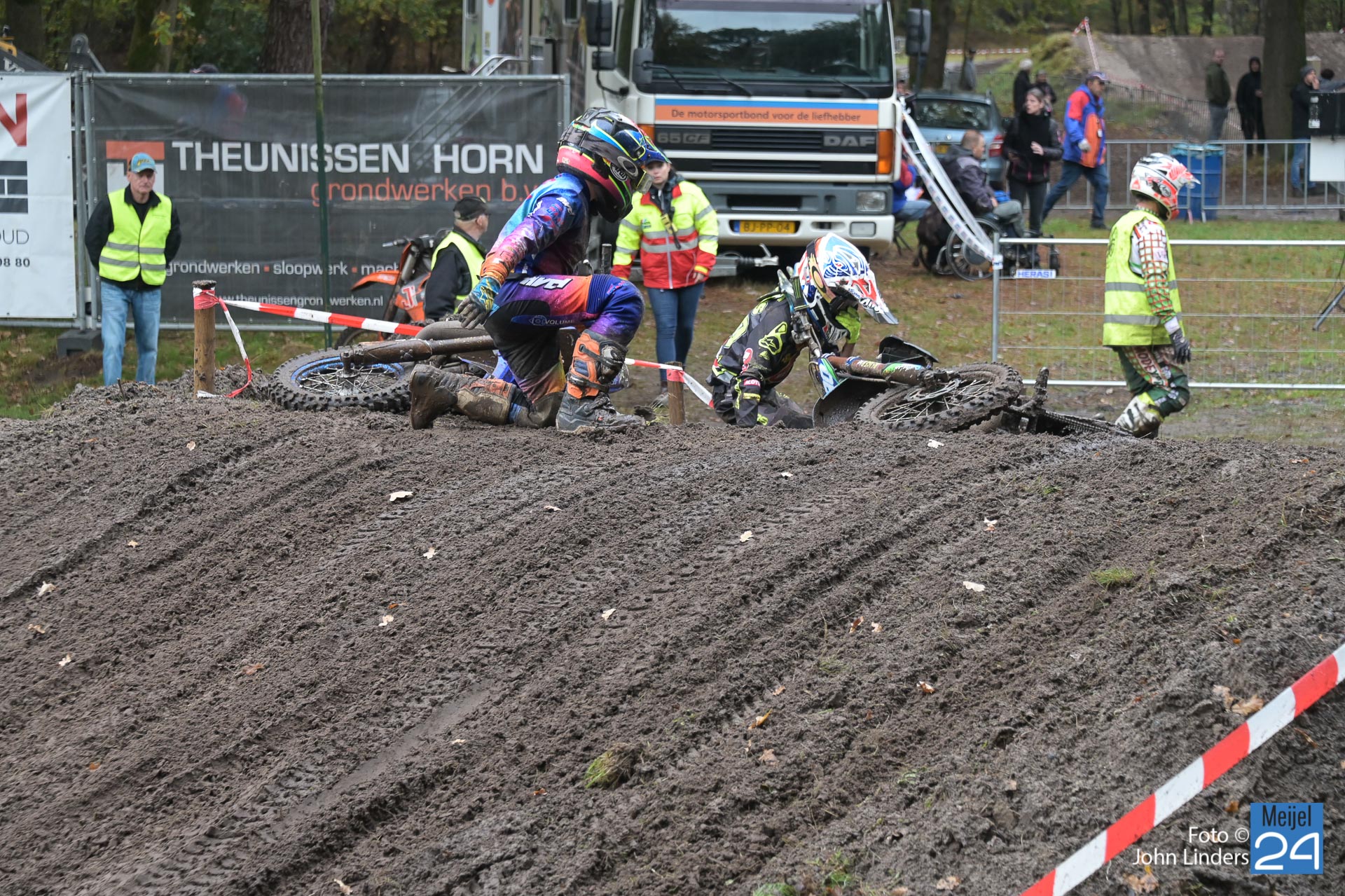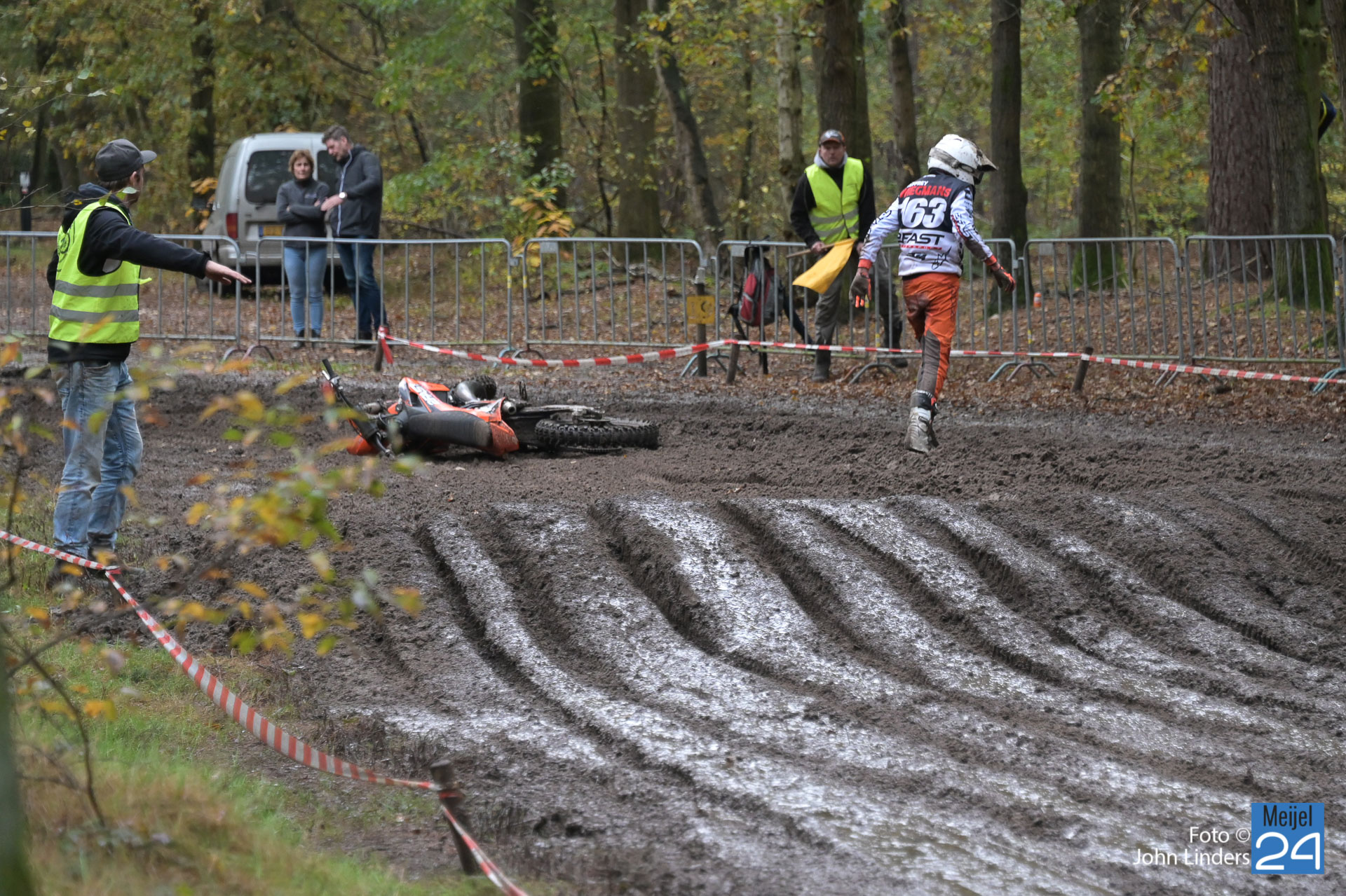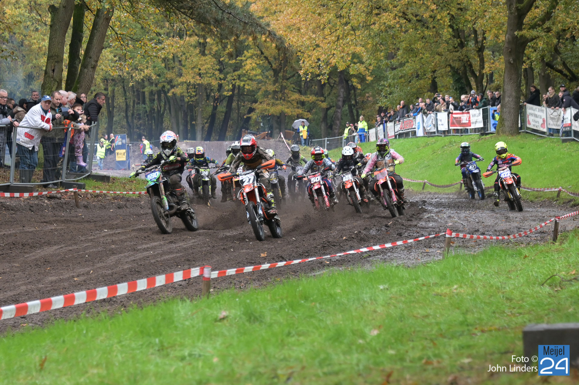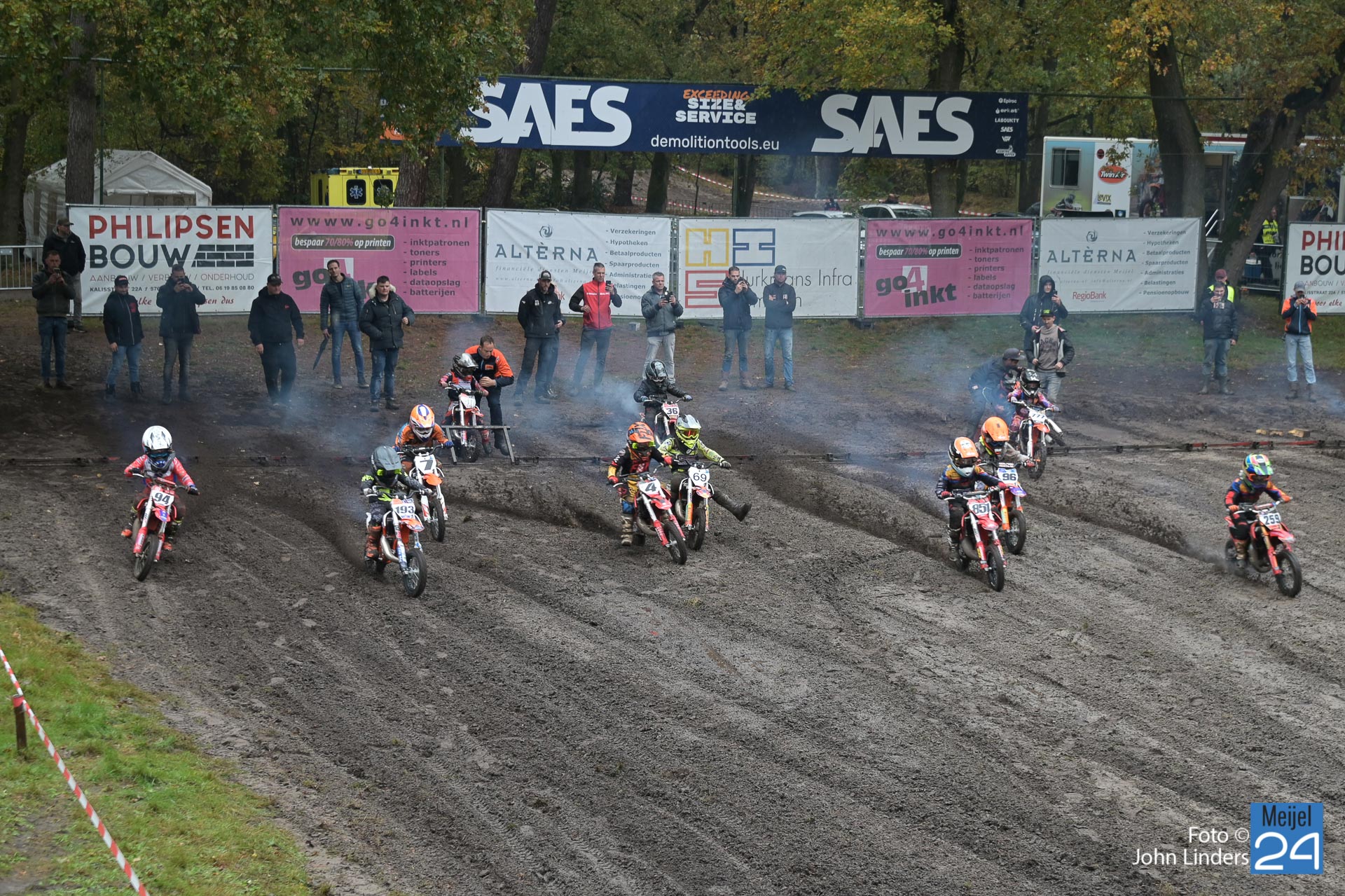 Vandaag aan de start in de diverse manches velen jeugdklassen en de junioren. Door de regen van afgelopen nacht en deze morgen was de baan erg nat en glad, en dat maakte het voor de rijders erg moeilijk. Helaas waren er diverse valpartijen te zien vandaag.