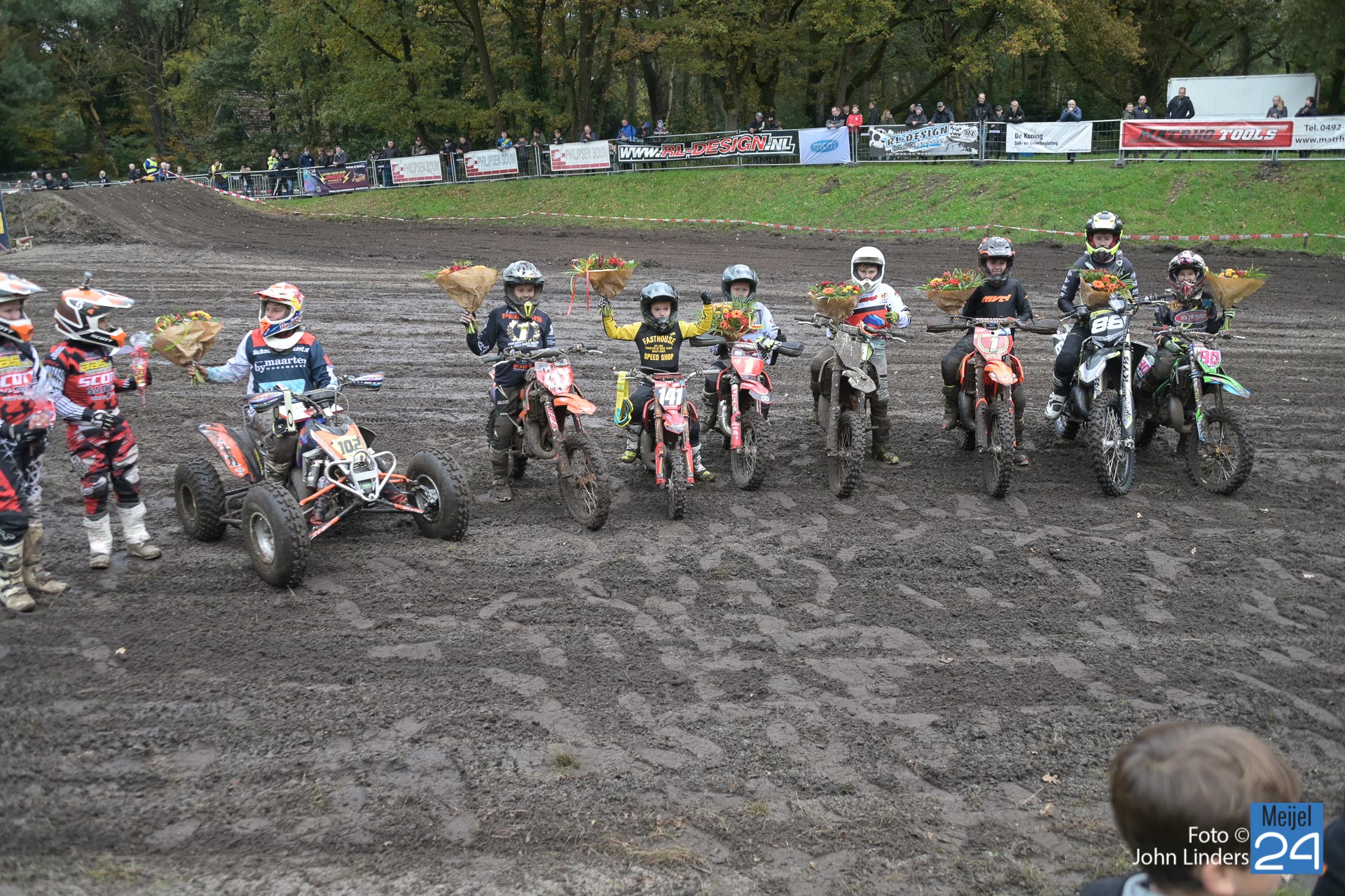 Voor de diverse jeugdklassen was het vandaag meteen het moment voor de huldigingen van de diverse kampioenen. Deze rijders werden met mooie worden toegesproken en mochten de felicitaties in ontvangst nemen.