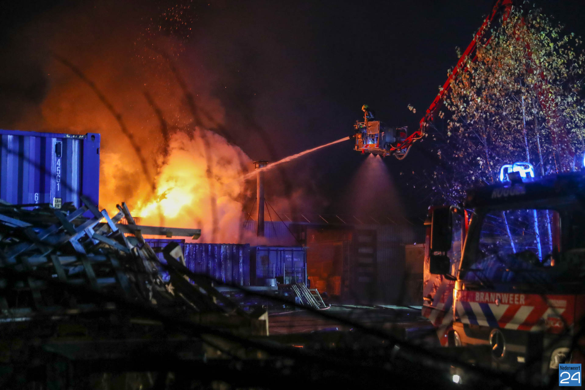 Rond half acht heeft de brandweer het sein brandmeester gegeven. De brandweer is nog geruime tijd bezig met nablussen.