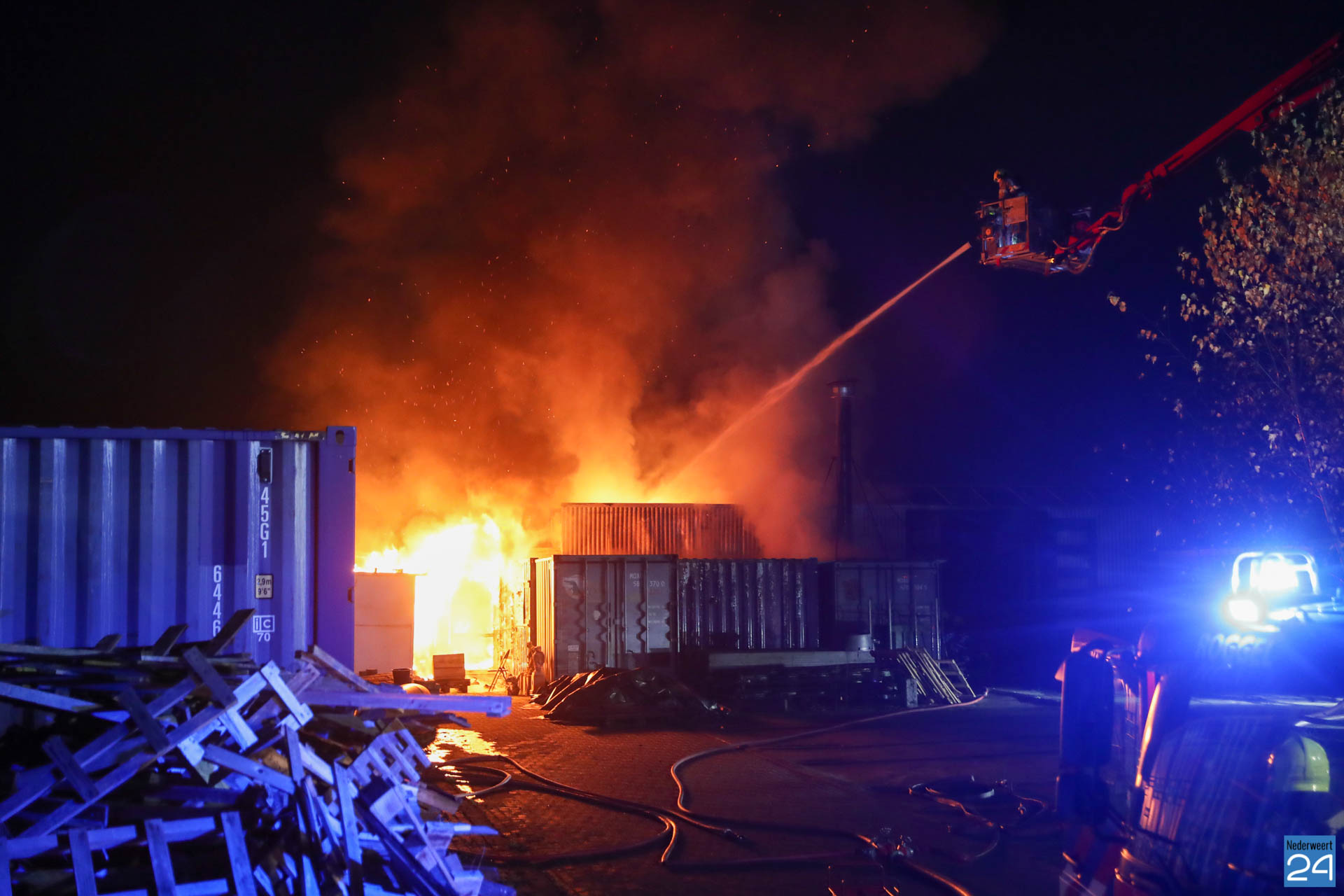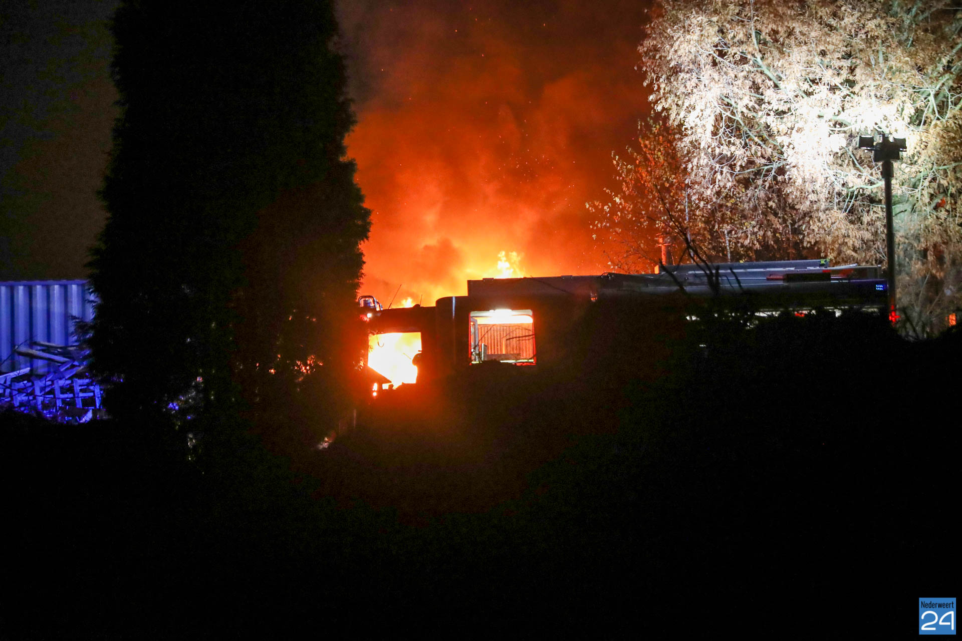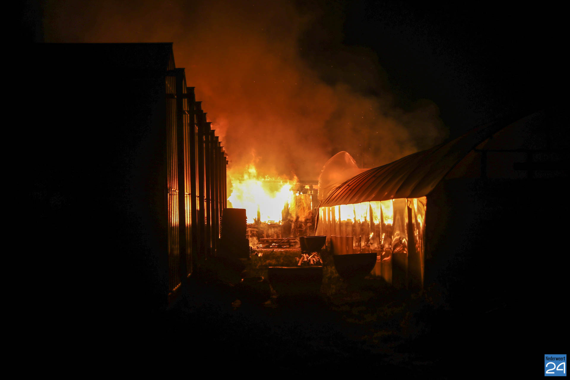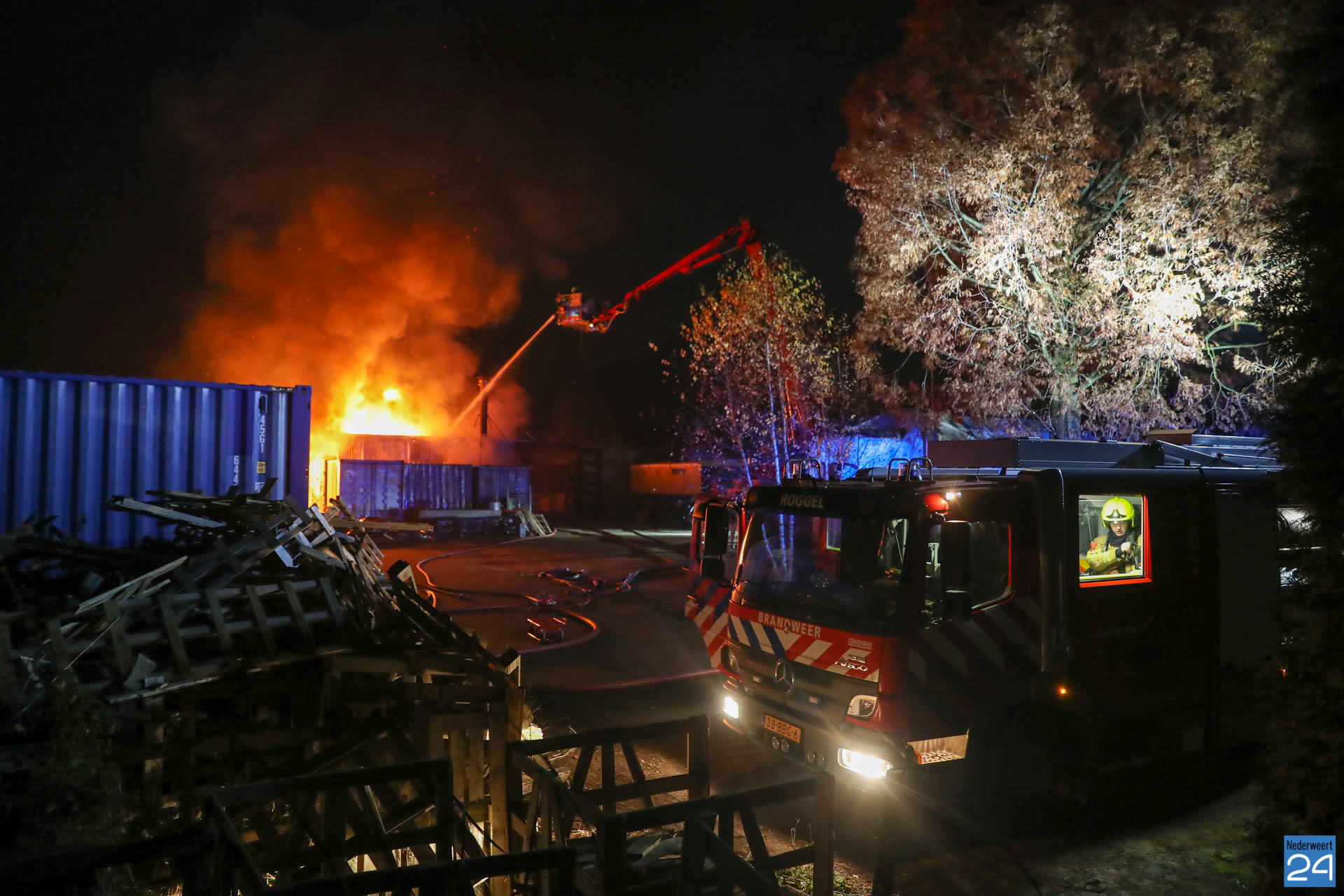 De brandweer werd rond half zeven gealarmeerd voor een loodsbrand achter een woning op de Tramstraat in Roggel. Op het bedrijfsterrein was zeer waarschijnlijk brand ontstaan in relatie met de aanwezig houtkachel, aldus de brandweer. Op het voormalige tuindersbedrijf stonden meerdere containers en een tuinkas. Nu is er een bedrijf met een groothandel in unieke woonartikelen en bouwmaterialen gevestigd. De woning op het terrein is gespaard gebleven. Er waren geen mensen aanwezig in de loods. Wel zouden er eventueel nog katten binnen hebben gezeten maar volgens de brandweer zijn er geen dieren aangetroffen.