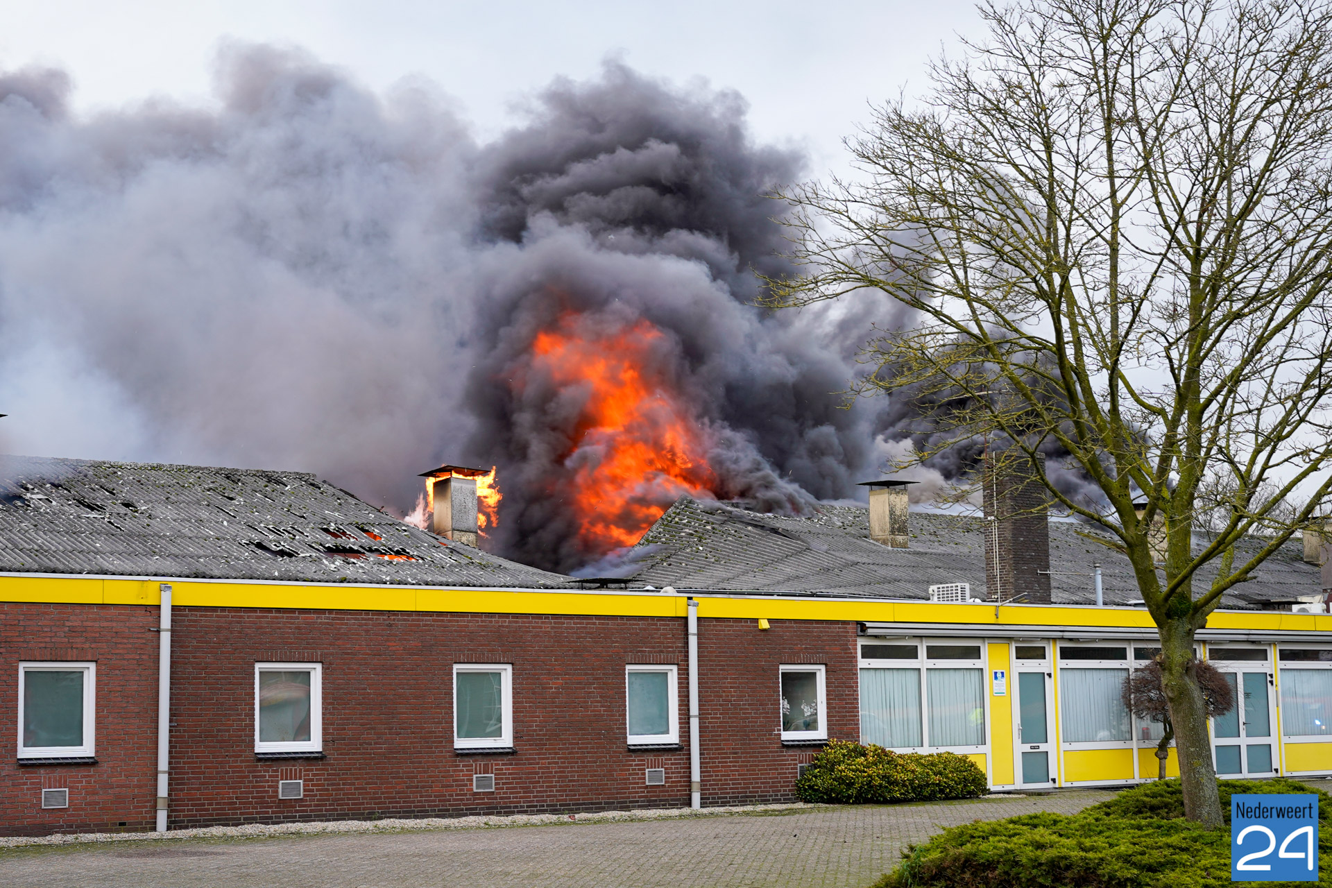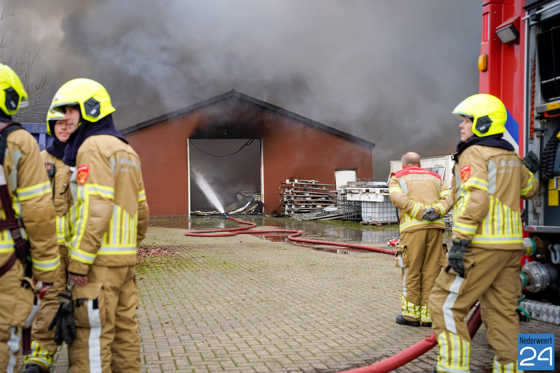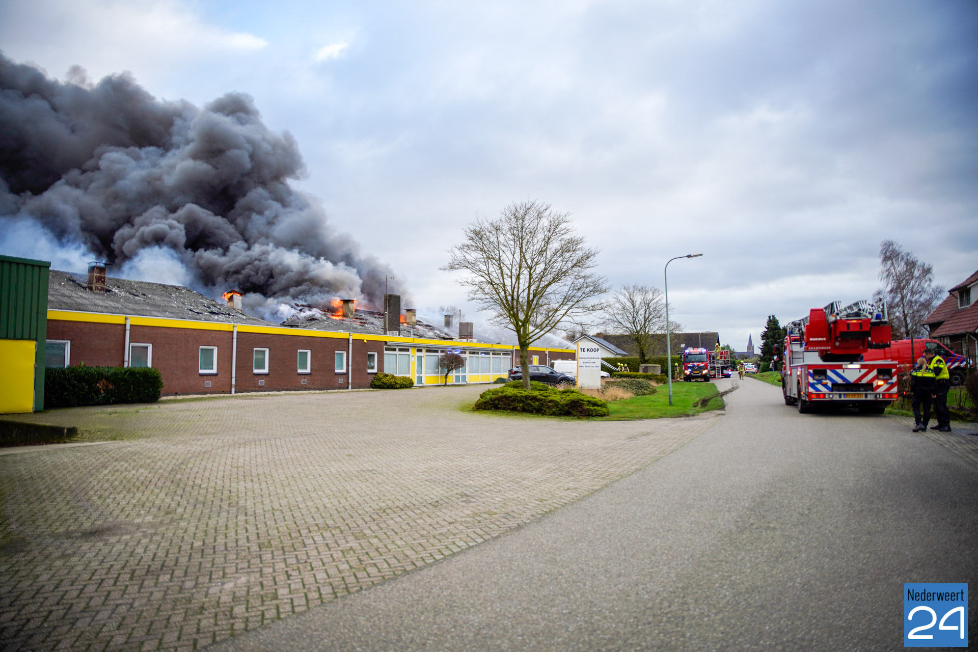 Bij de brand is asbest vrijgekomen. Het gebied tussen de Bloemerstraat in Nederweert en Ospel wordt geadviseerd om ramen en deuren te sluiten en de ventilatie uit te zetten.