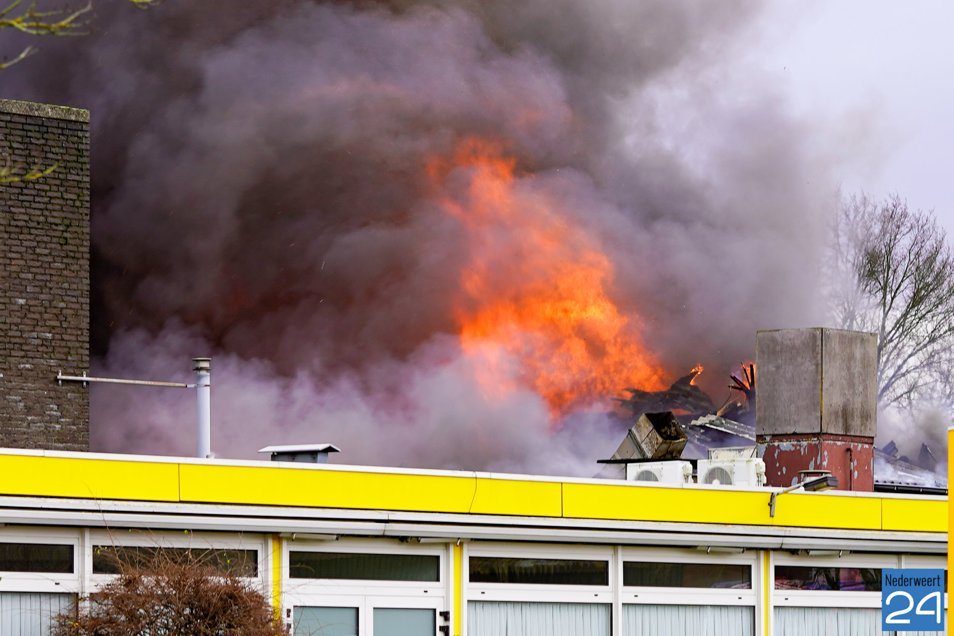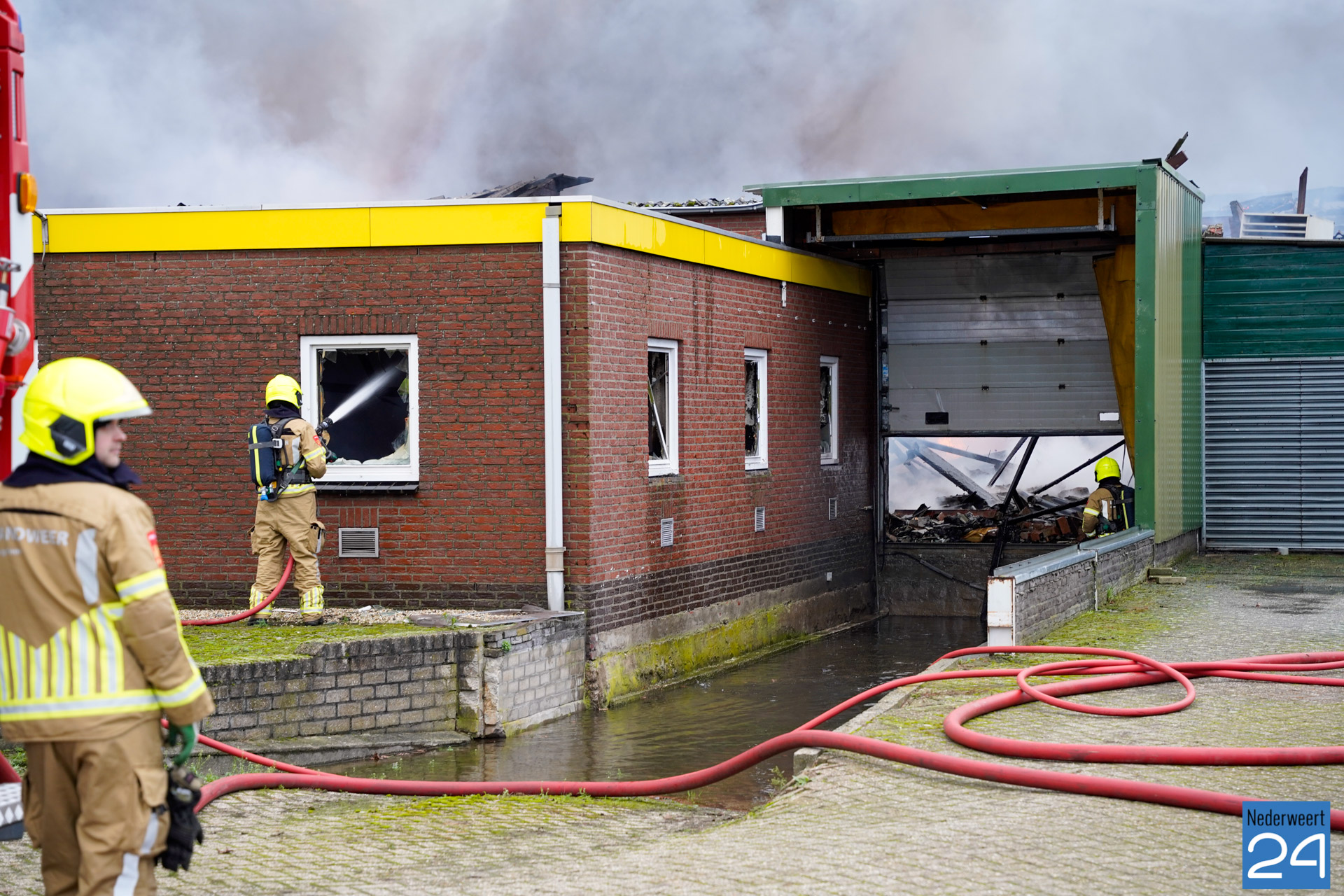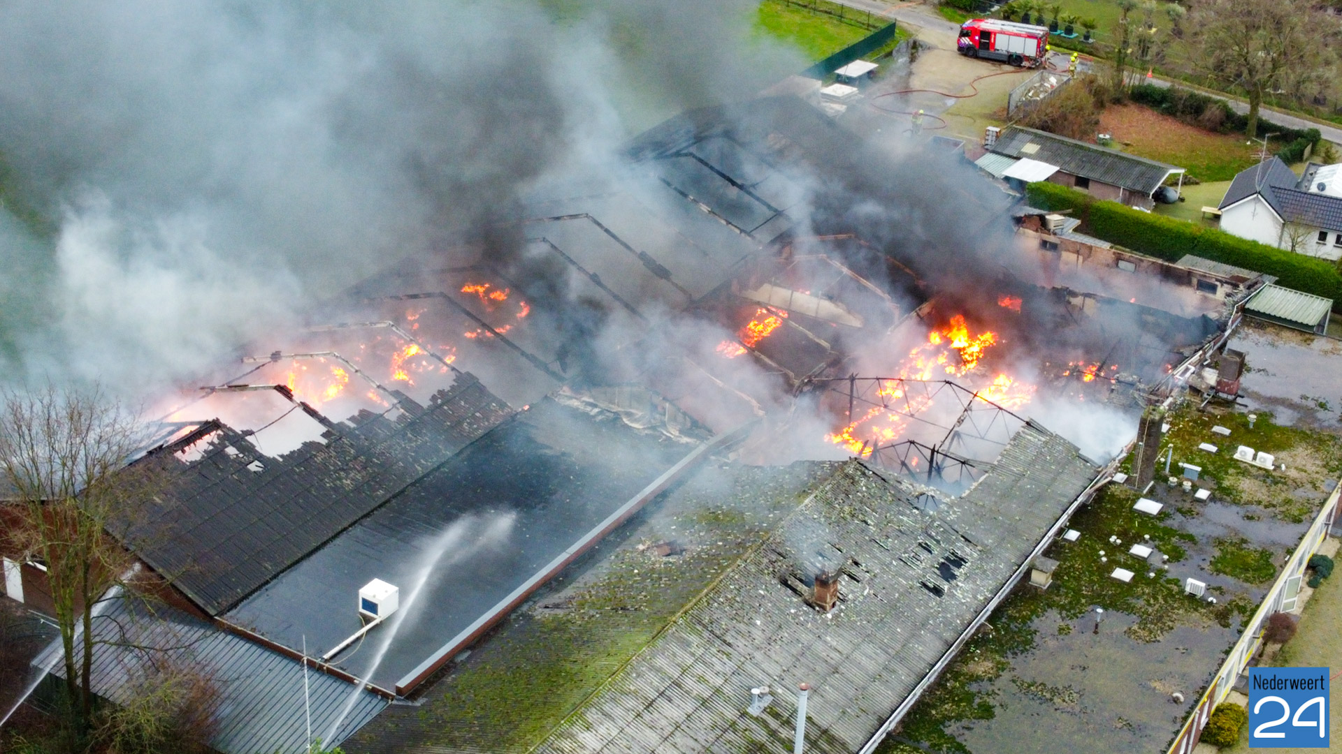 Bij de brand is asbest vrijgekomen. Het gebied tussen de Bloemerstraat in Nederweert en Ospel wordt geadviseerd om ramen en deuren te sluiten en de ventilatie uit te zetten.