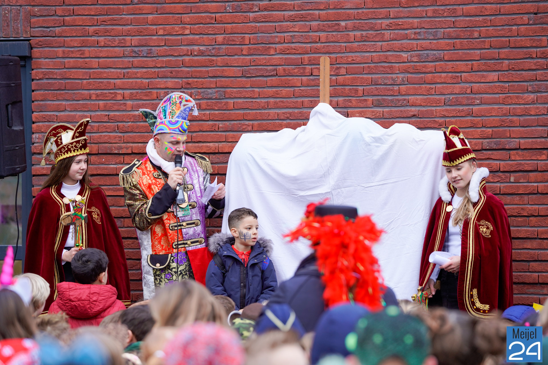 Vanochtend was het dan eindelijk zover en vond de onthulling plaats. De hele school en carnavalsvereniging de Kieveloeët waren aanwezig op het schoolplein en na een spannende afvalrace konden de nieuwe prinsessen Senne Hoebergen en Michelle Scheres zich aan iedereen voorstellen. De heersers kregen al stralend hun mantel om en hun steek op. Met hun spreuk: Al is Kóroona óns ént klie:re