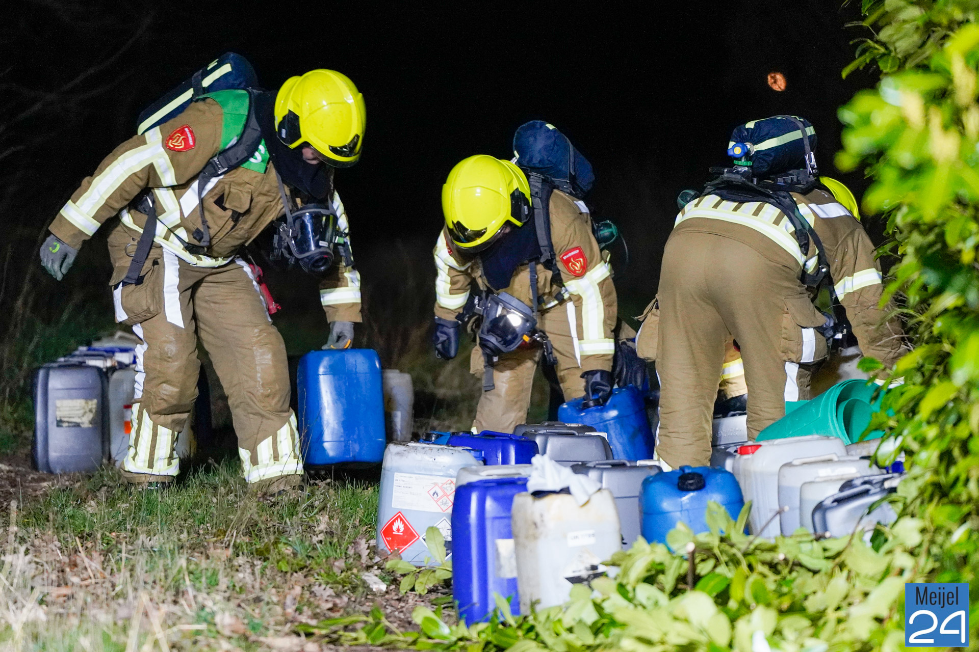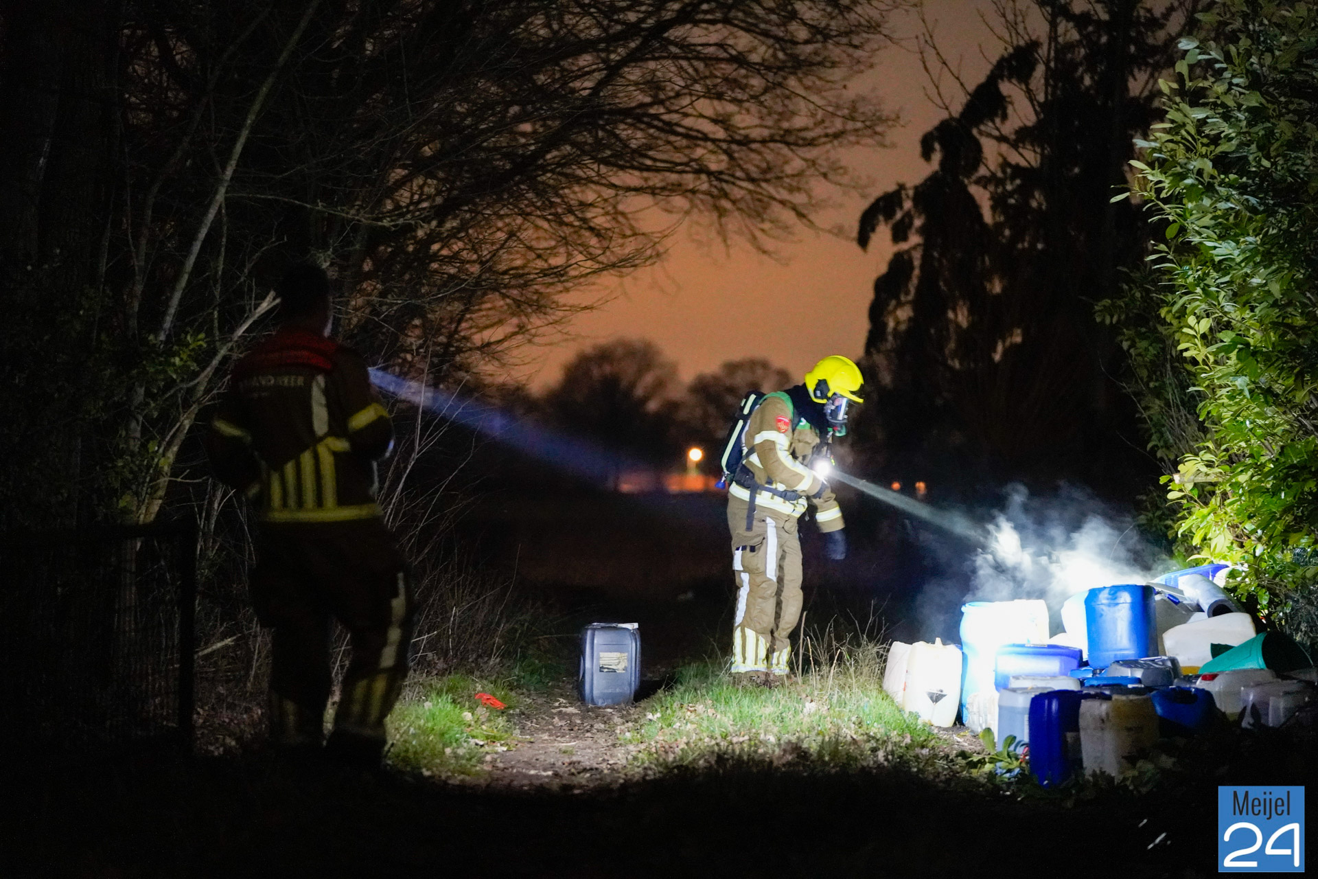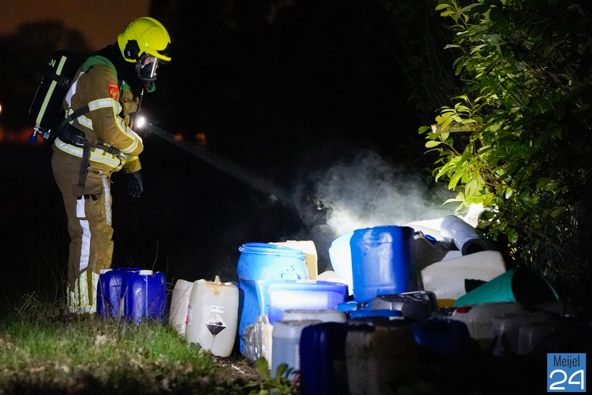 De politie en brandweer zijn inmiddels ter plaatse. De vaten dampen en er is sprake van een flinke lekkage. Er zijn naar verwachting zo’n 80 vaten aangetroffen. Een gespecialiseerd bedrijf zal de vaten ruimen. De politie stelt een onderzoek in. Mogelijk komen de vaten uit het drugscircuit.