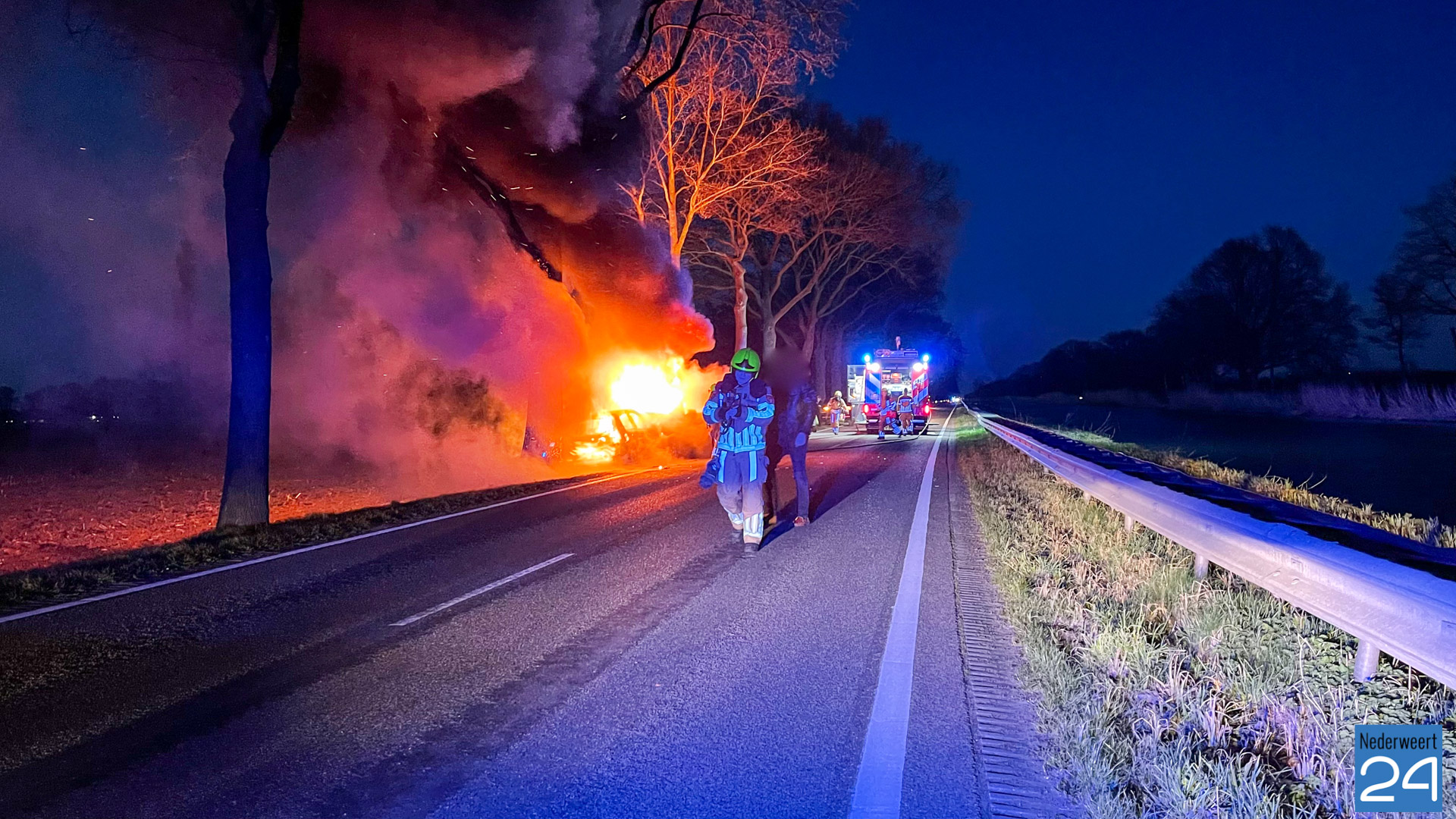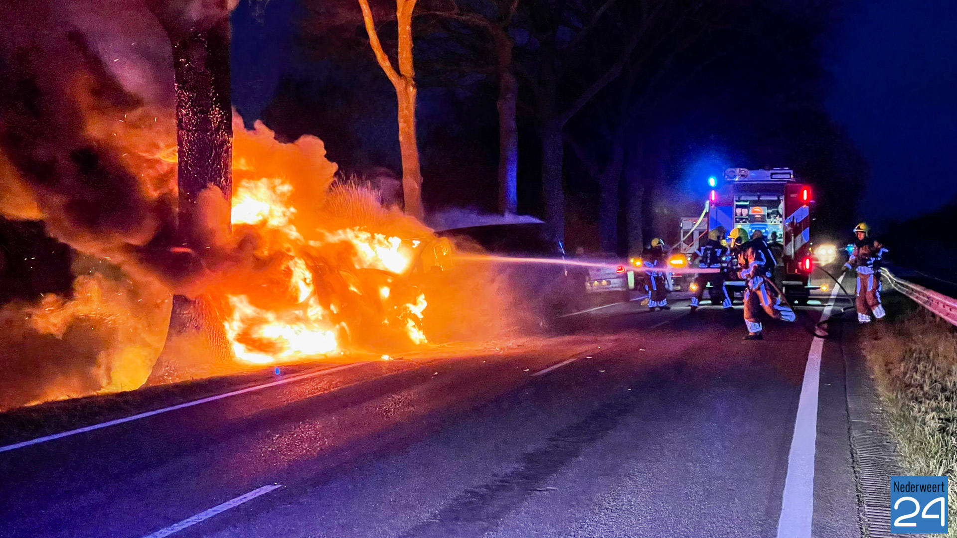 Ernstig ongeval Venloseweg Ospel, brand en vijf gewonden