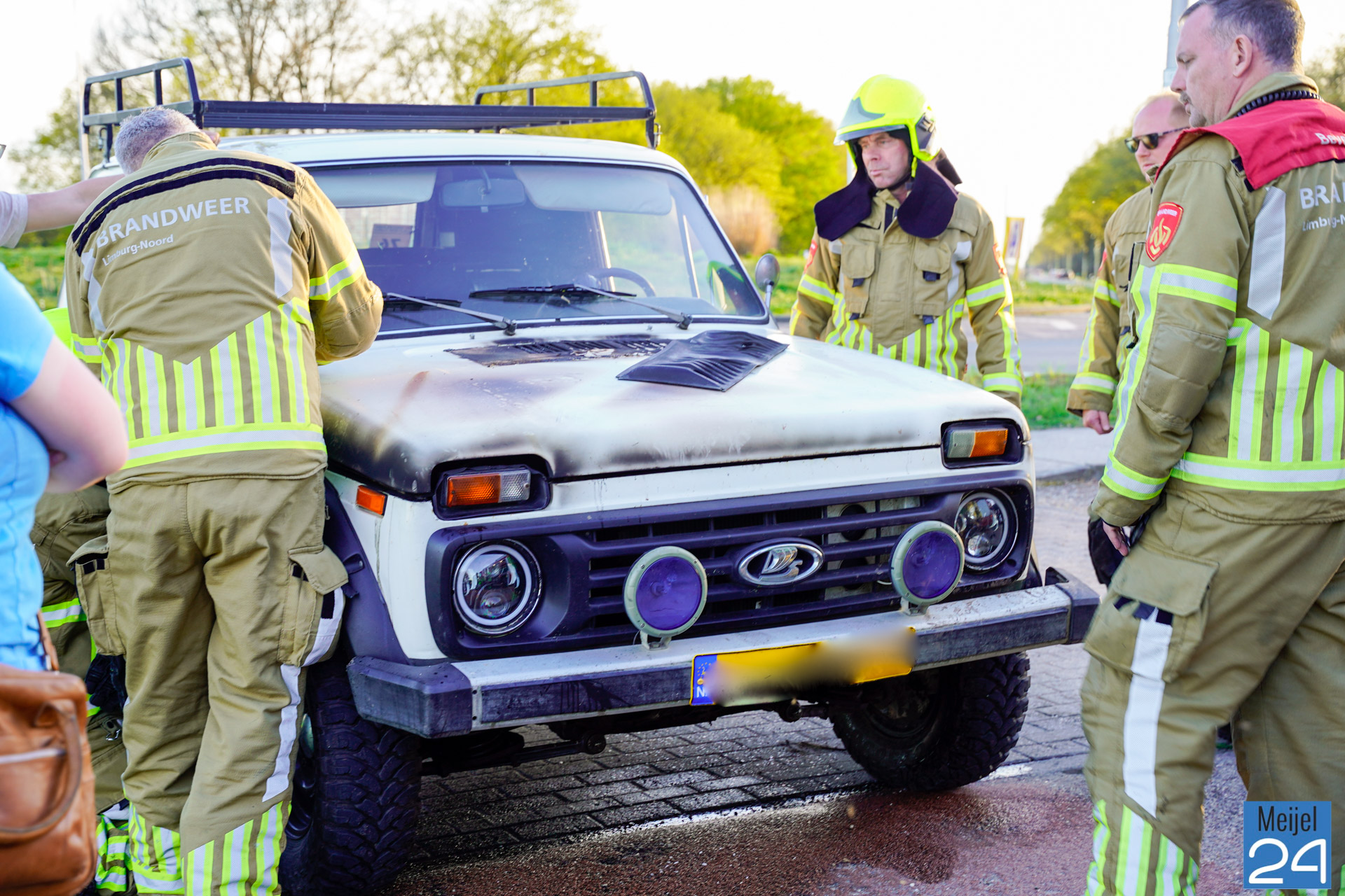 Een terreinwagen heeft maandagavond vlam gevat op de Roggelsedijk in Meijel.