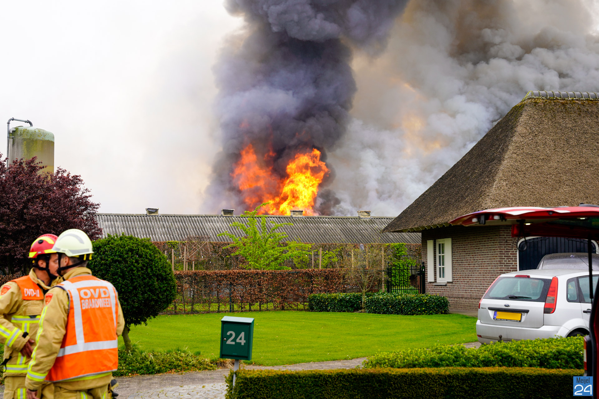 De brandweer probeert te voorkomen dat de brand overslaat naar andere gebouwen. In de buurt van de stallen, die als verloren moeten worden beschouwd, staan nog meer stallen en een woonhuis. Hoeveel kippen er in de stal zitten is nog niet duidelijk.